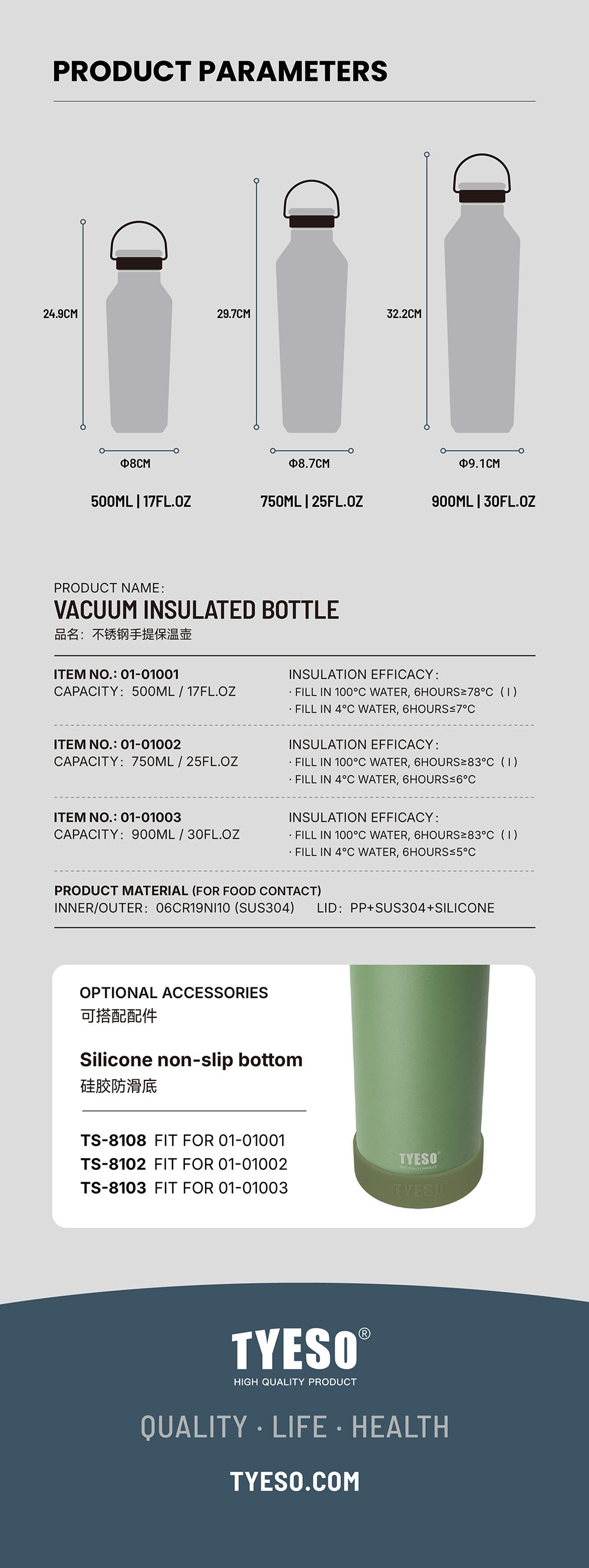 TYESO Taishuo의 새로운 휴대용 손잡이 보온병 컵 내부 및 외부 304 스테인레스 스틸 대용량 스포츠 등산 여행 주전자