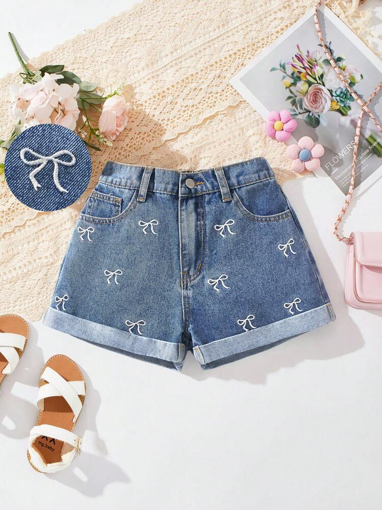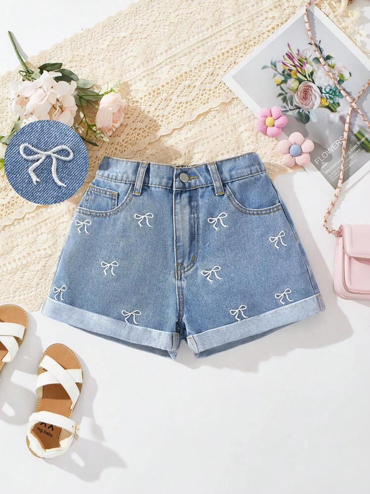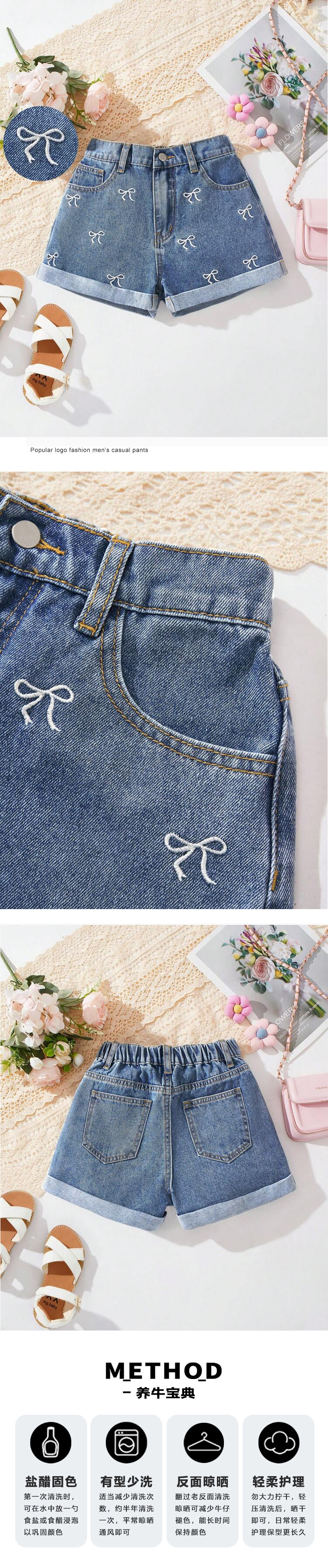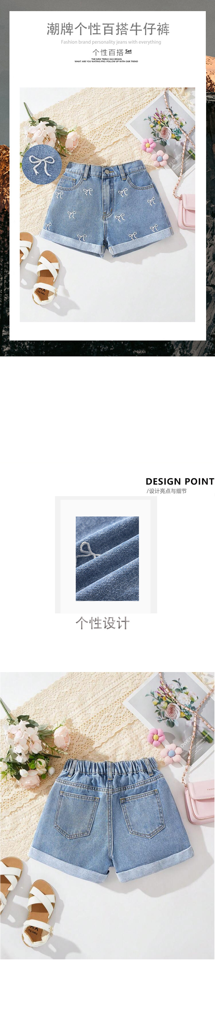 아마존 독립 홈페이지 및 알리익스프레스 전용, 여아 여름복 프린트 디자인 데님 반바지, 하이웨이스트 얇은 스타일