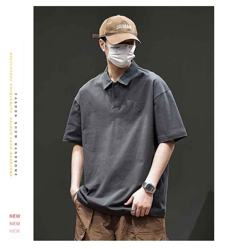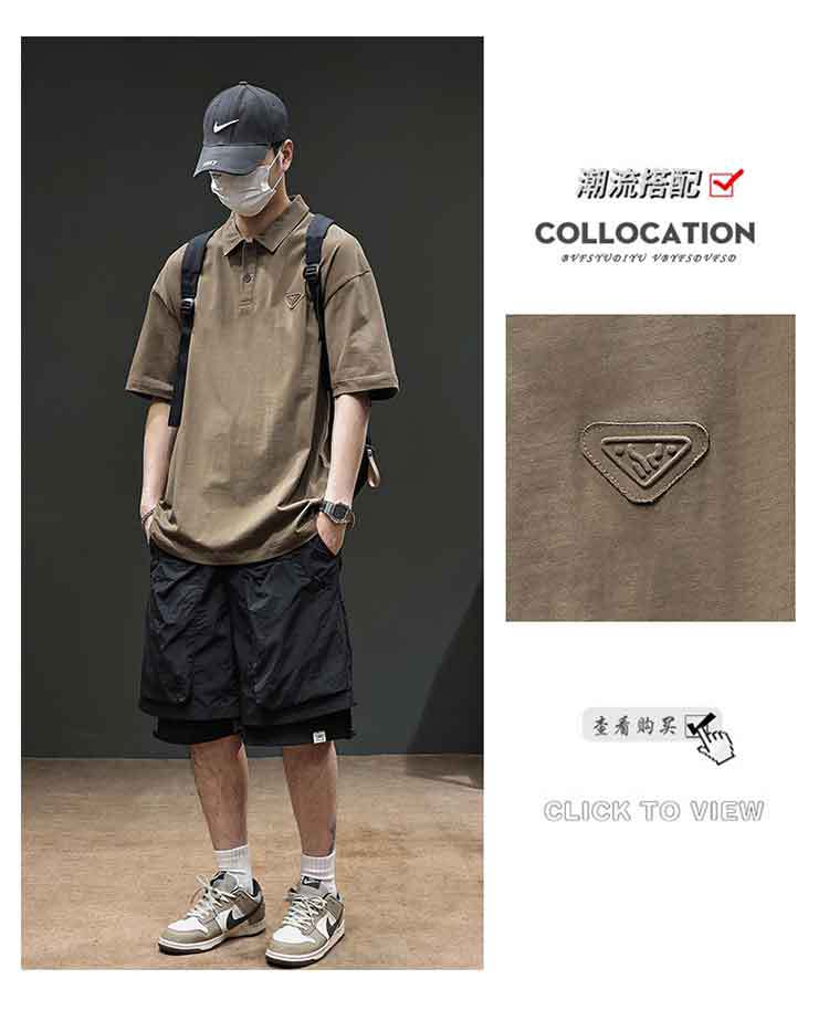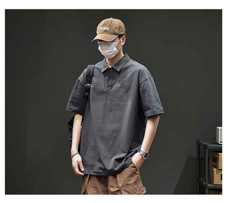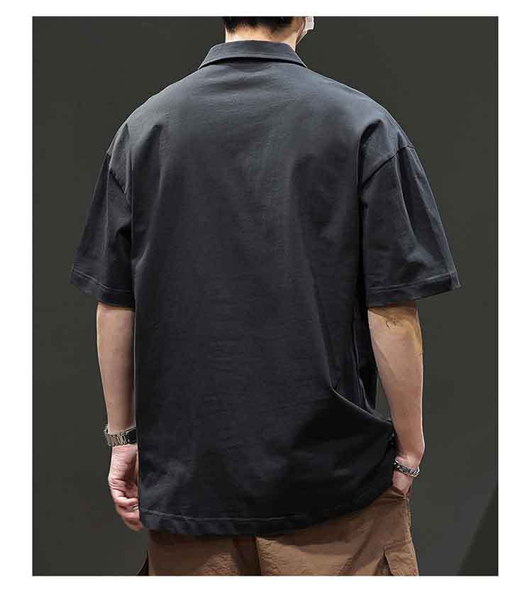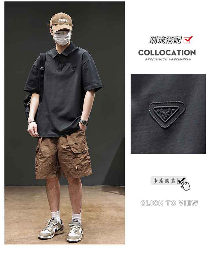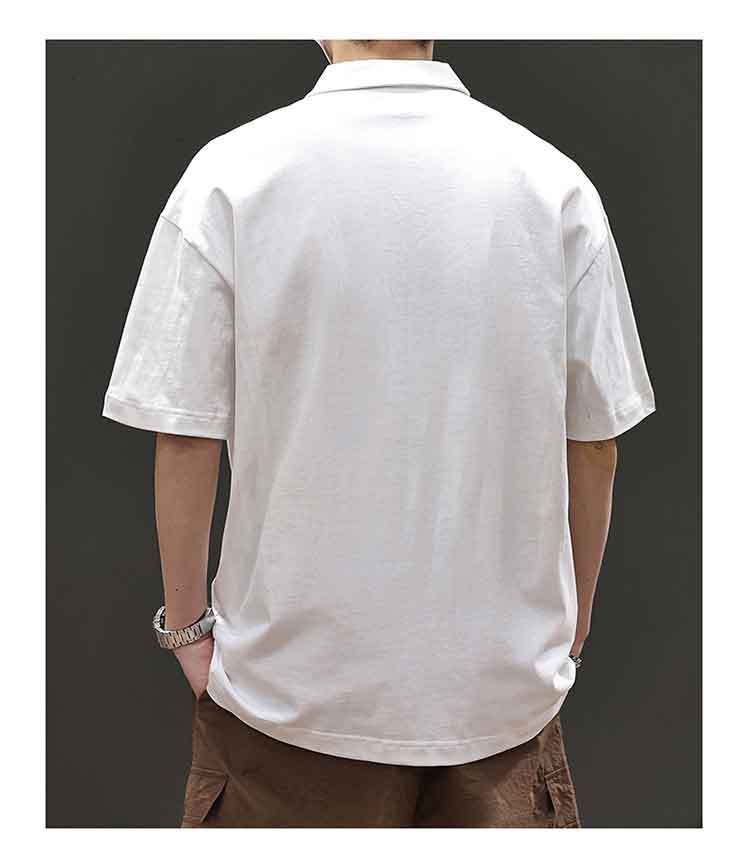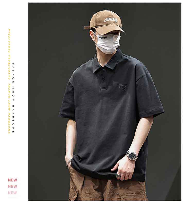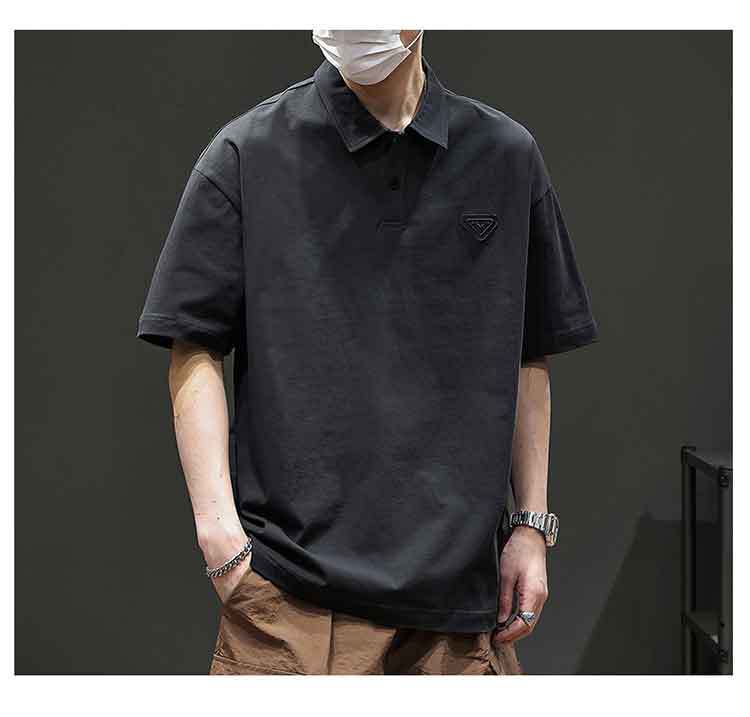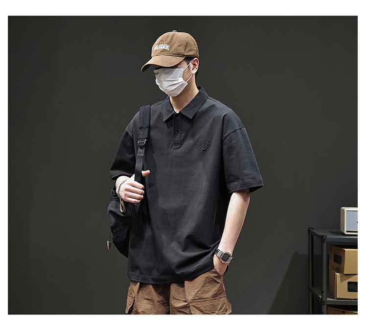 아메리칸 스타일 레트로 반팔 티셔츠 남자 2025 년 여름 새로운 도착 헤비 캐주얼 올 매치 트렌디 블랙 폴로 셔츠스토어 가기