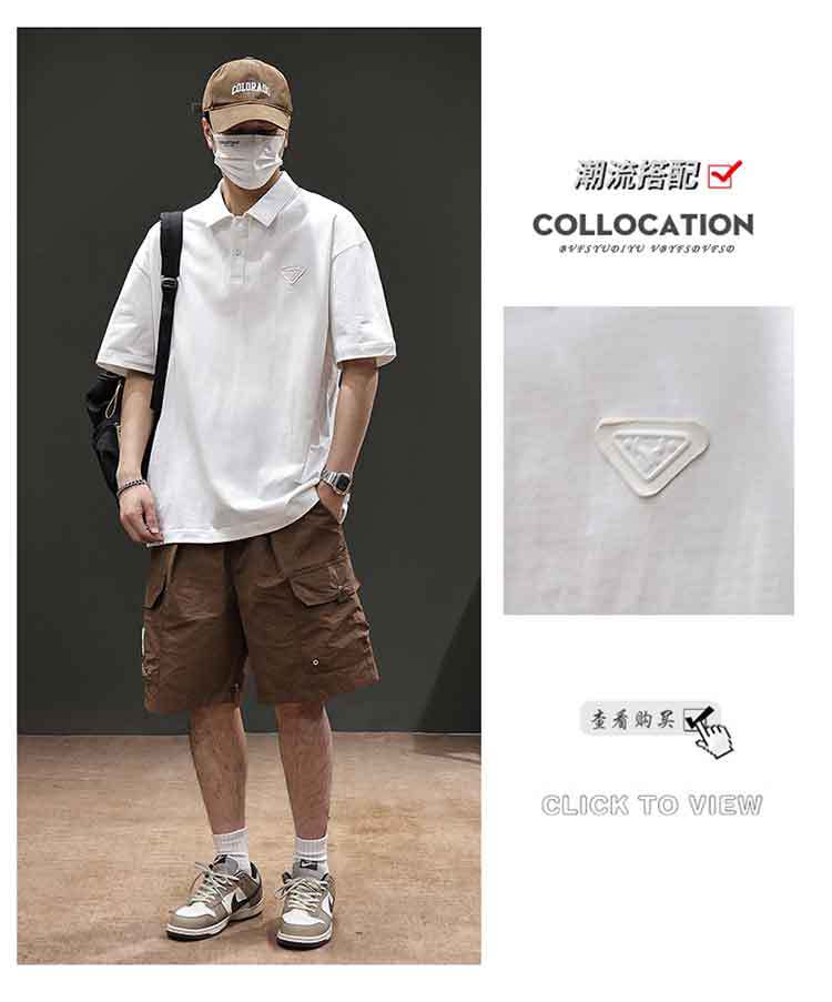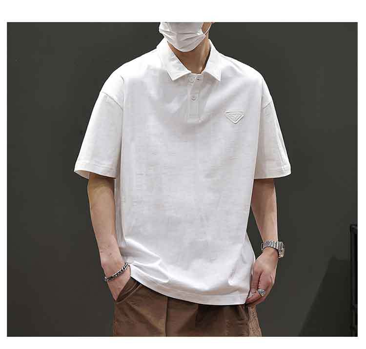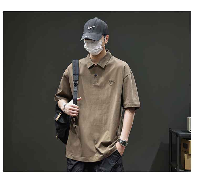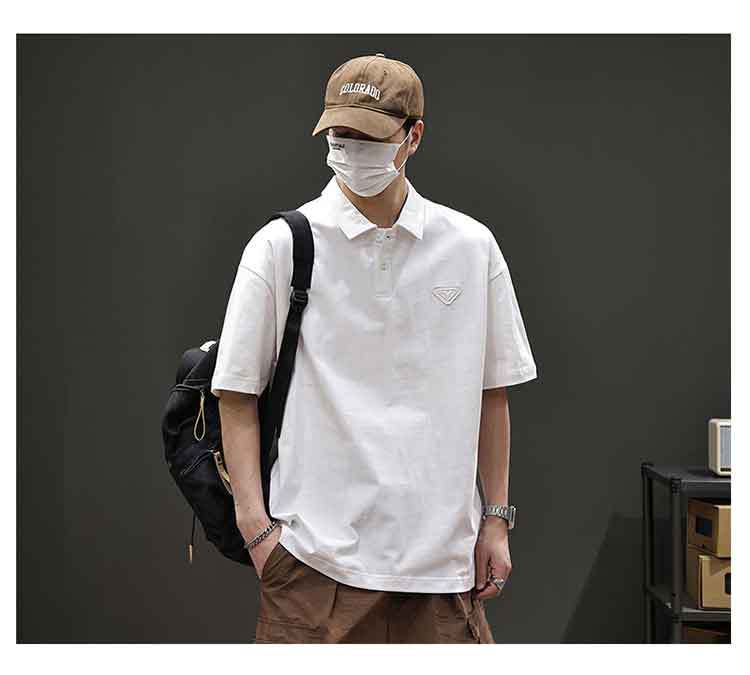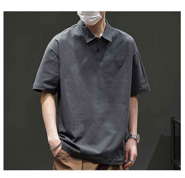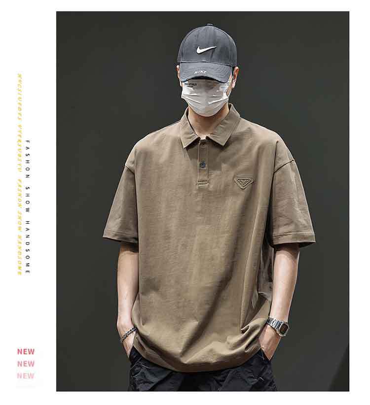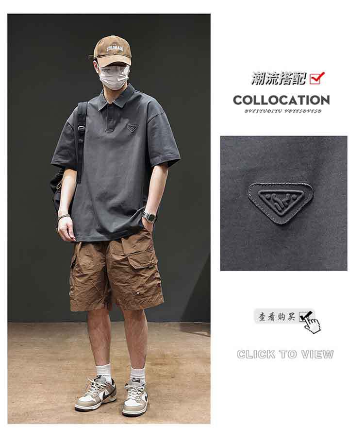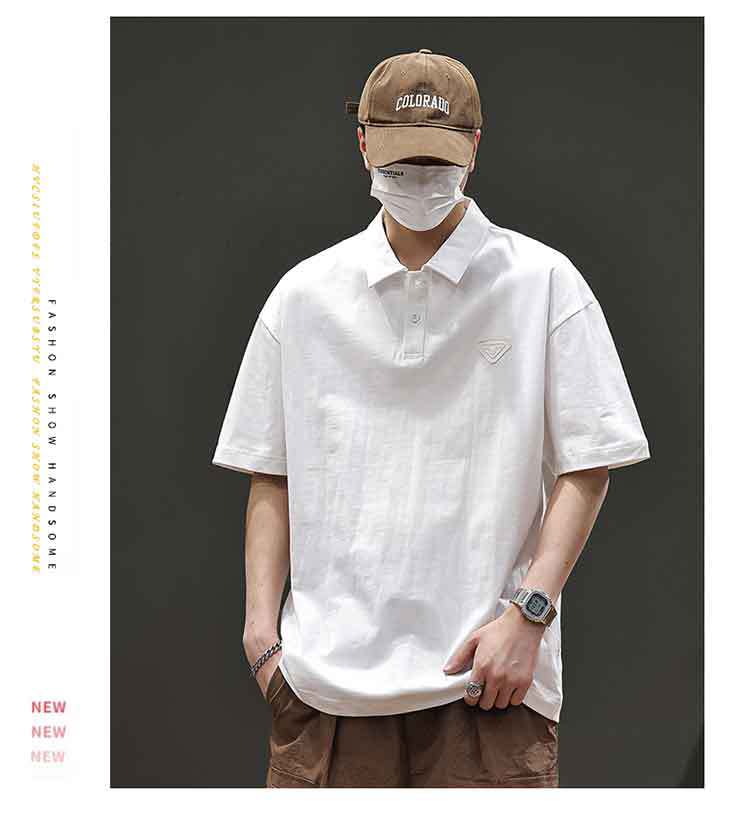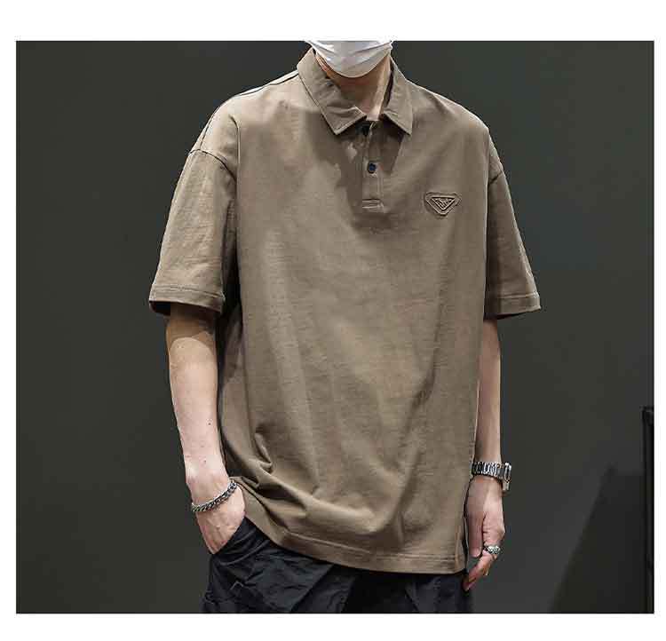아메리칸 스타일 레트로 반팔 티셔츠 남자 2025 년 여름 새로운 도착 헤비 캐주얼 올 매치 트렌디 블랙 폴로 셔츠스토어 가기