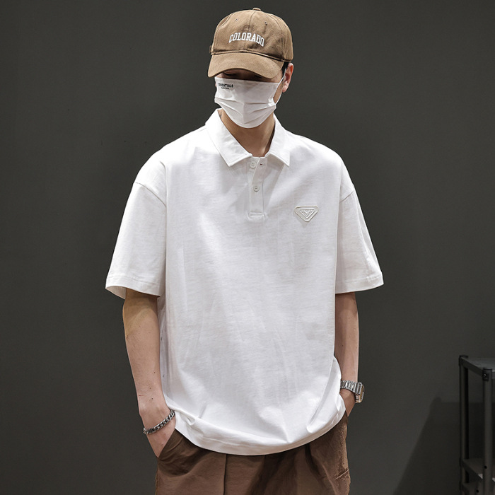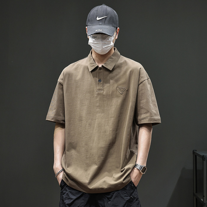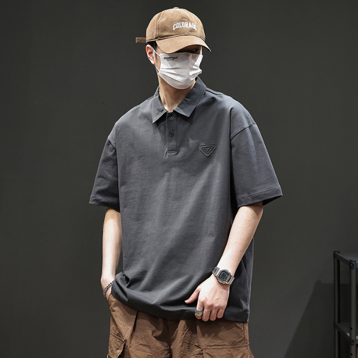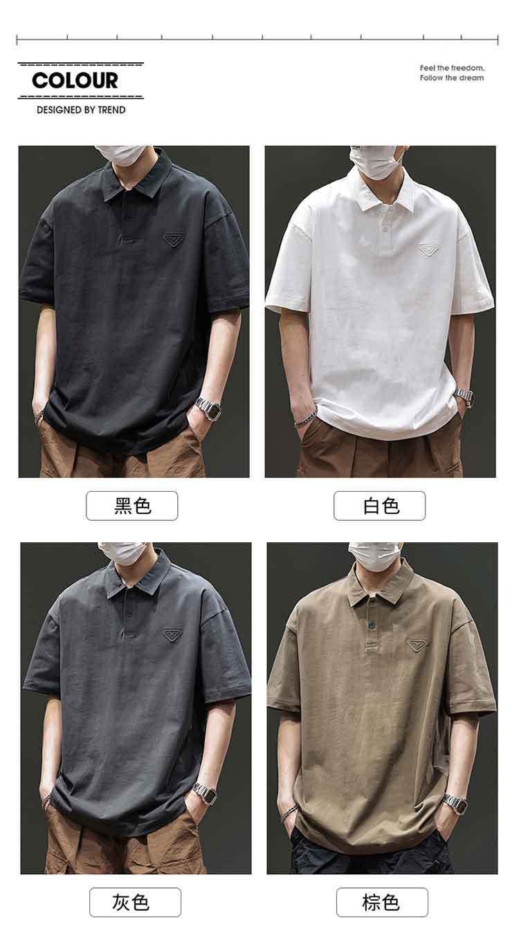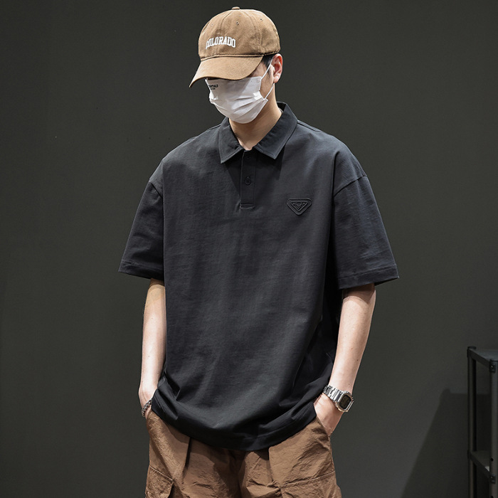 아메리칸 스타일 레트로 반팔 티셔츠 남자 2025 년 여름 새로운 도착 헤비 캐주얼 올 매치 트렌디 블랙 폴로 셔츠