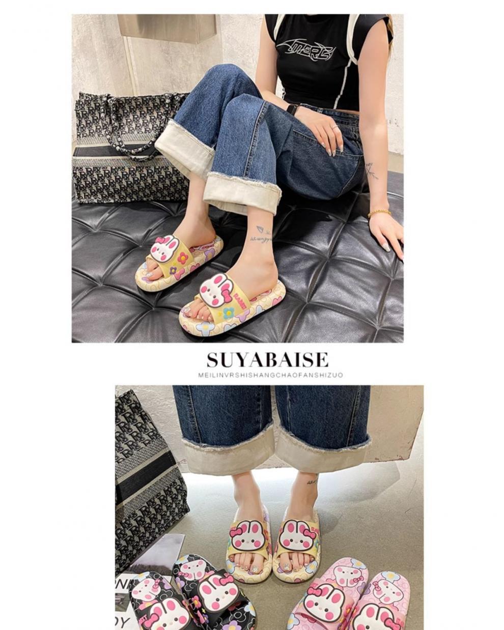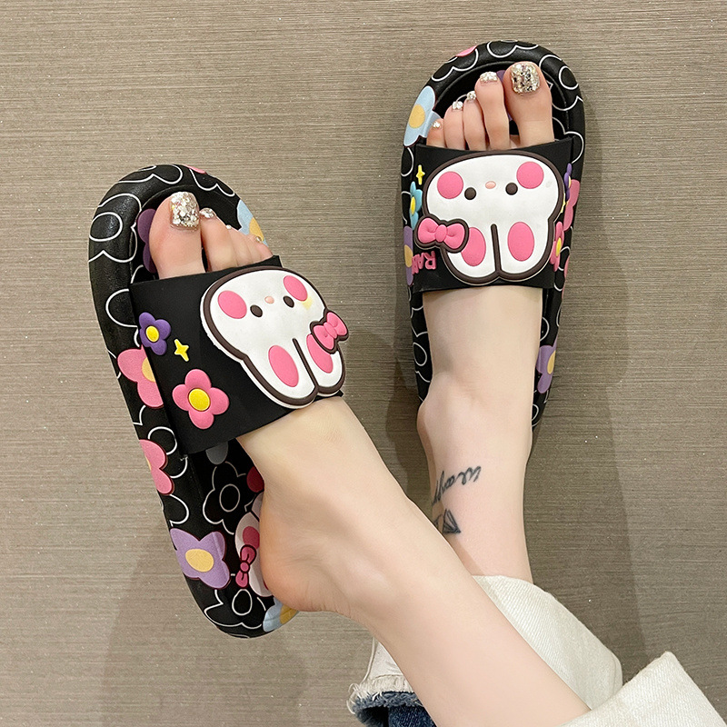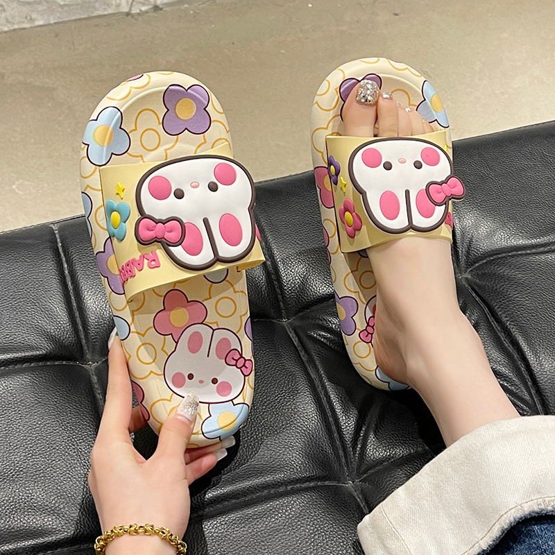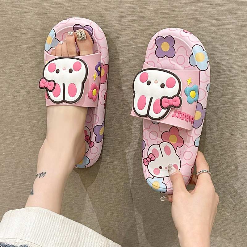여름 아우터로 착용할 수 있는 귀여운 토끼 꽃 슬리퍼, 미끄럼 방지 부드러운 바닥, 가정용 실내 욕실 슬리퍼
