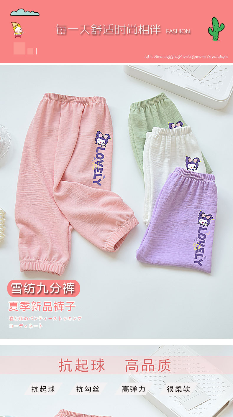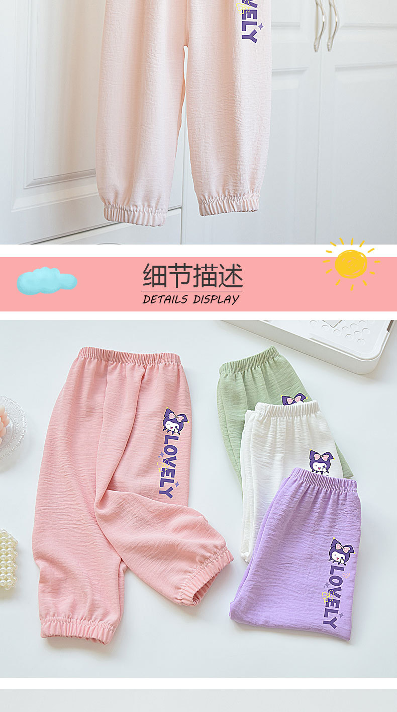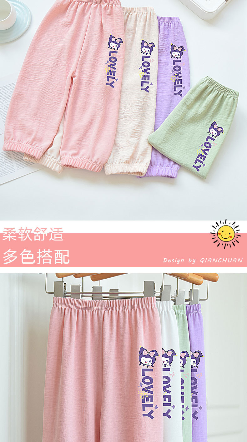 소녀 캐주얼 바지 2025 여름 얇은 새 어린이 면화 넓은 다리 바지 안티 모기 바지 큰 어린이 바지스토어 가기