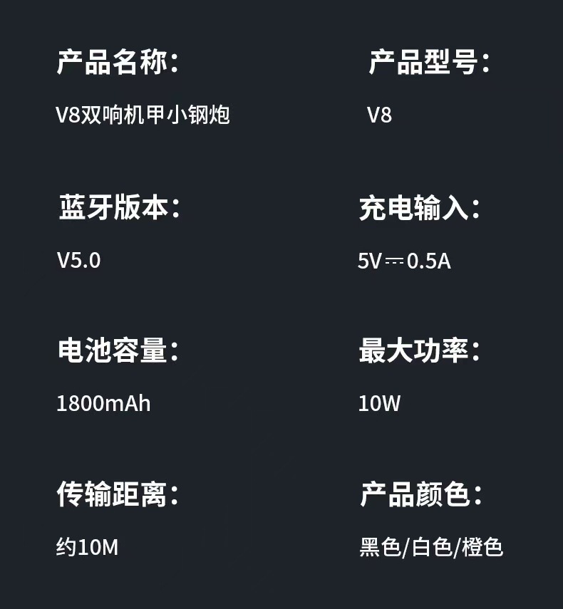 V8 블루투스 스피커 듀얼 스피커 투명 메카 소형 강철 총 다채로운 고출력 서브 우퍼 크리 에이 티브 데스크탑 소형 스피커스토어 가기