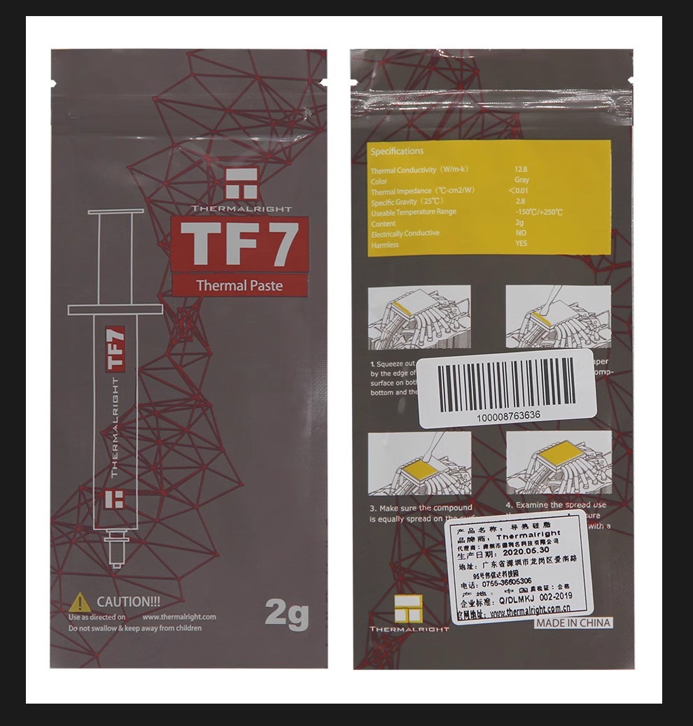 도매 Limin TF7 2g 열 그리스 CPU 냉각 페이스트 열 전도도 12.8
