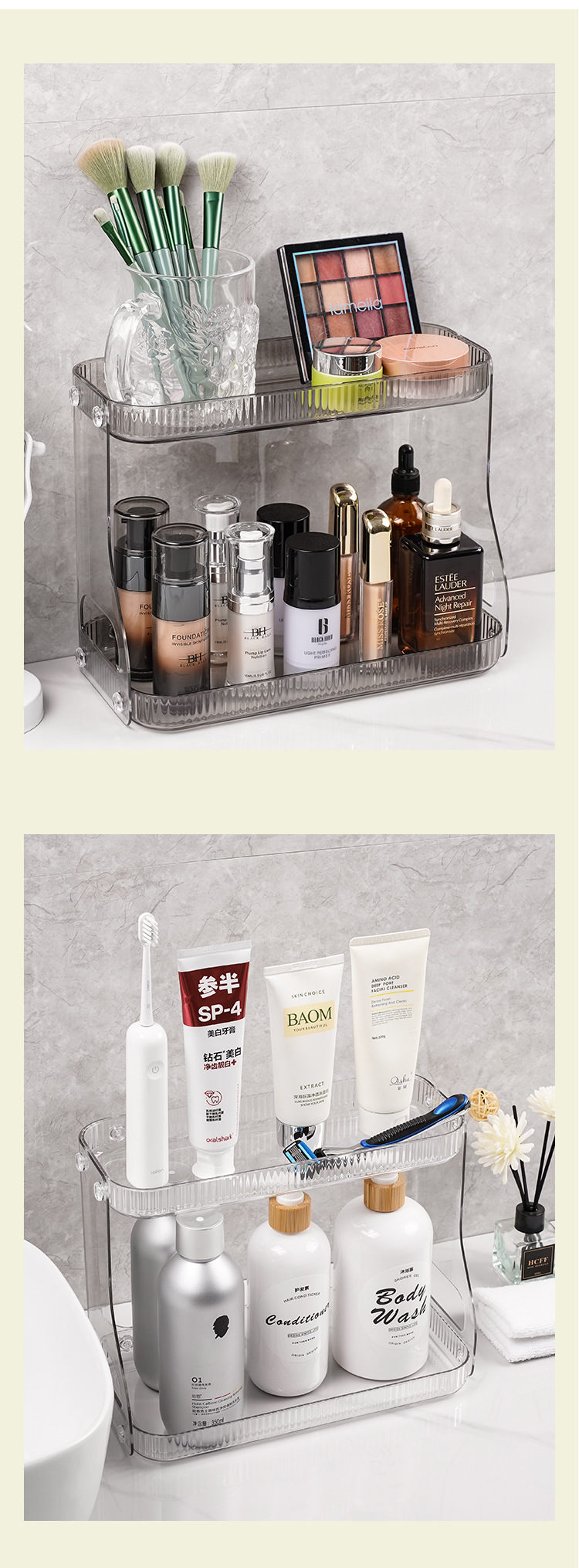 • 2색 2단 수납선반 - 투명회색
