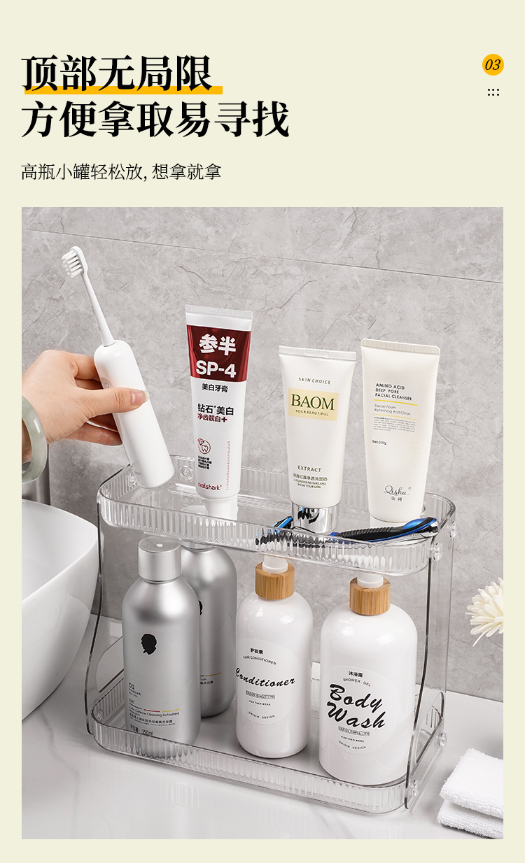 가벼운 고급 욕실 보관함, 세면대 화장품 보관함, 욕실용 스킨 케어 제품 보관함스토어 가기