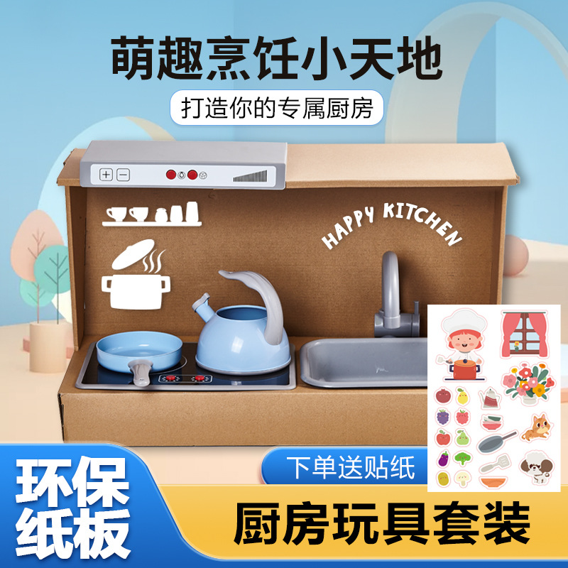 어린이 종이 주방 조립 종이 주방 장난감 시뮬레이션 놀이 집 장난감 인덕션 밥솥 레인지 후드 요리 수도꼭지스토어 가기