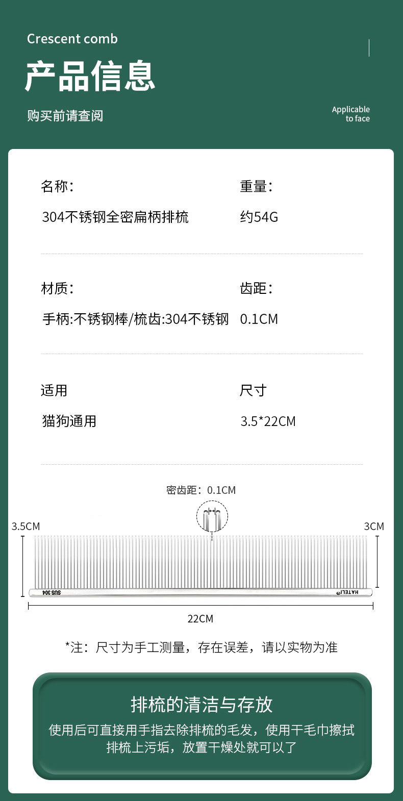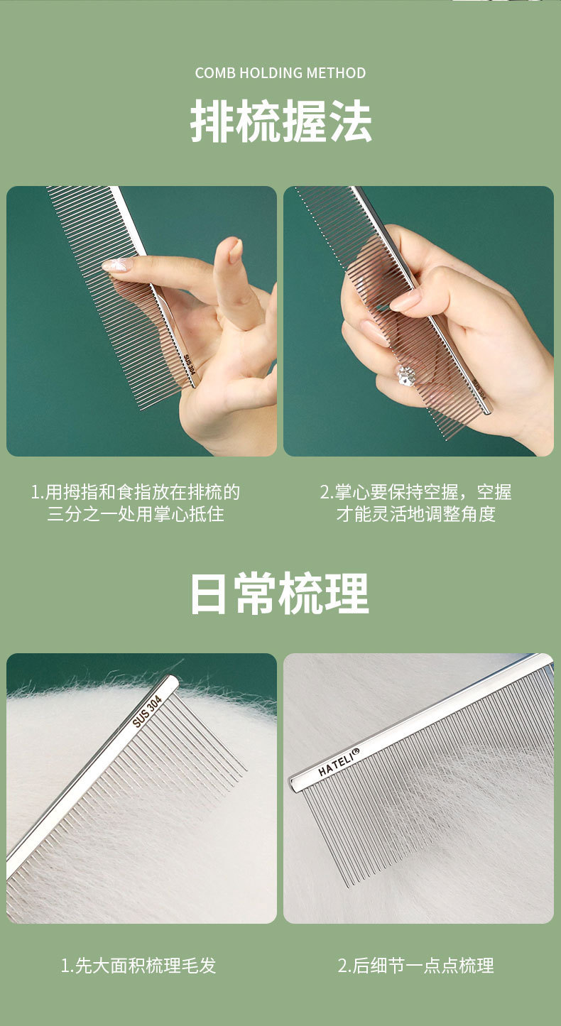 하틀리 304 스테인리스 바늘 고양이 개 애완 동물 빗 뷰티 픽 헤어 빗 풀 콤팩트 플랫 핸들 빗 22CM스토어 가기