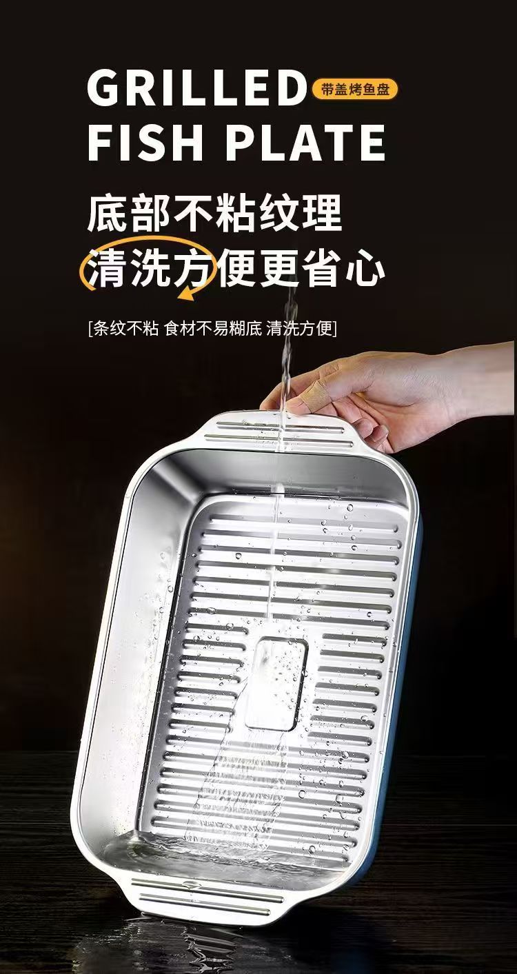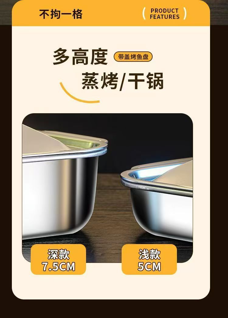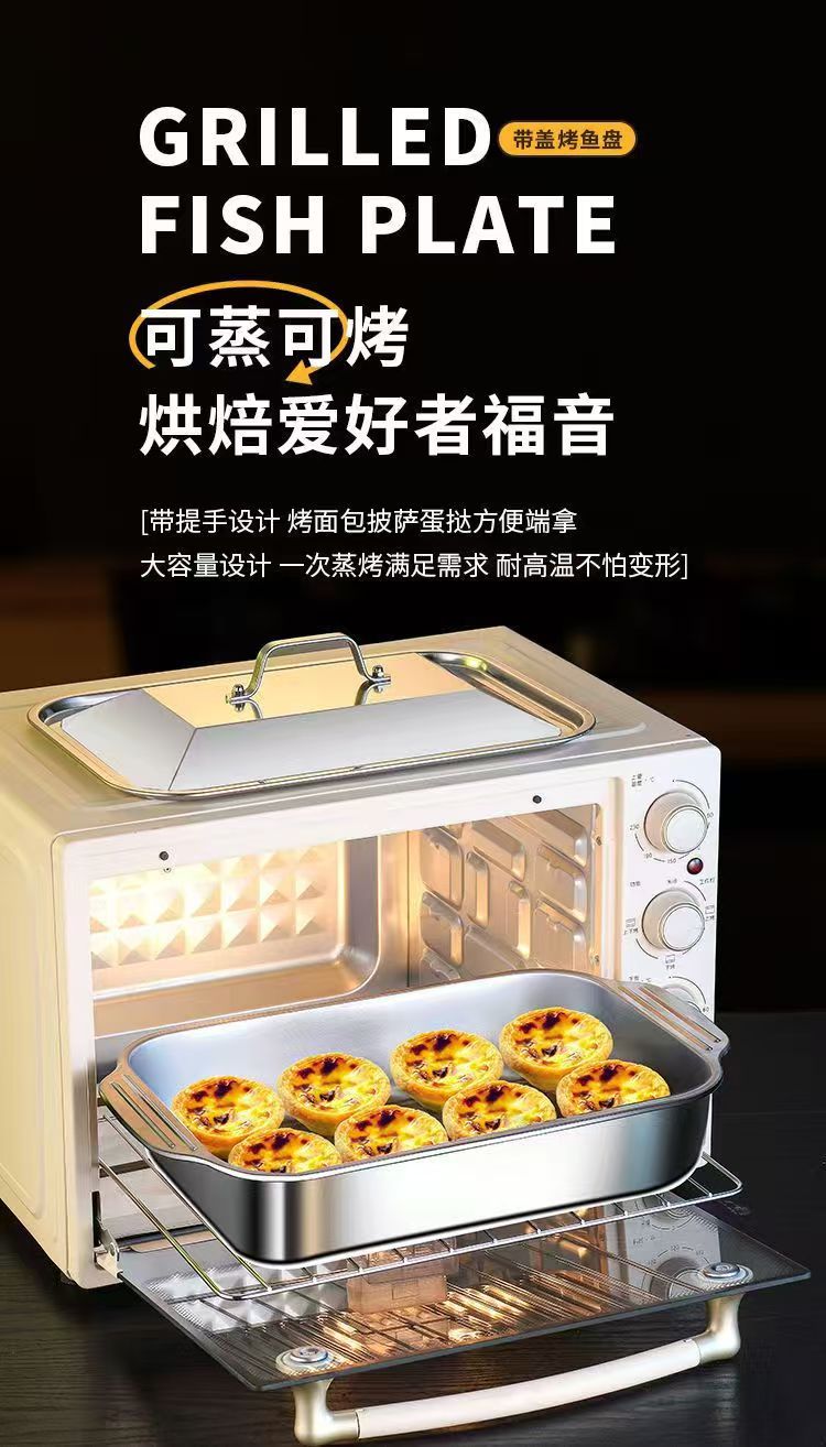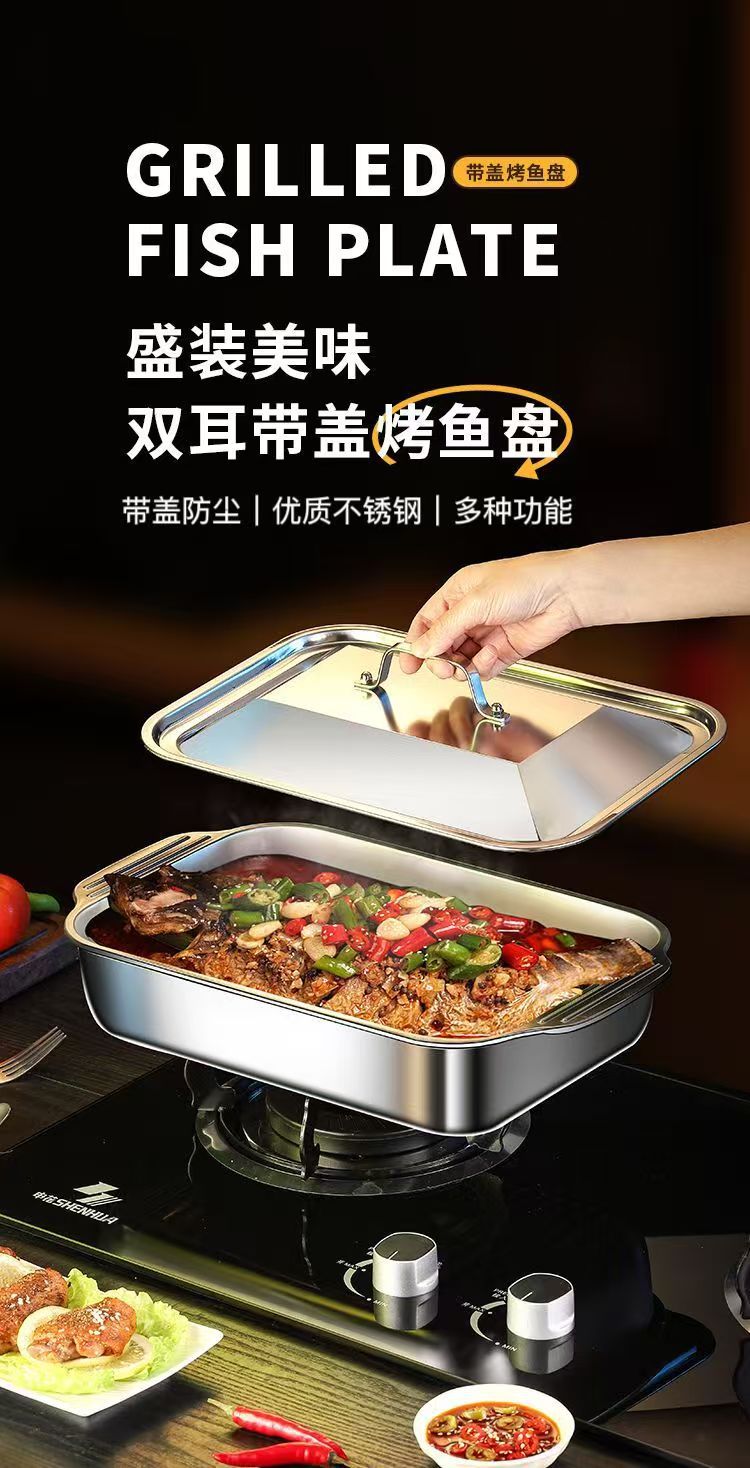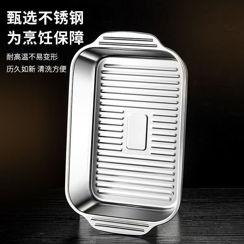 뚜껑이 달린 스테인레스 스틸 구운 어판 직사각형 가정용 한국식 스퀘어 플레이트 케이크 플레이트 깊어진 쌍안경 어판 왕새우 접시