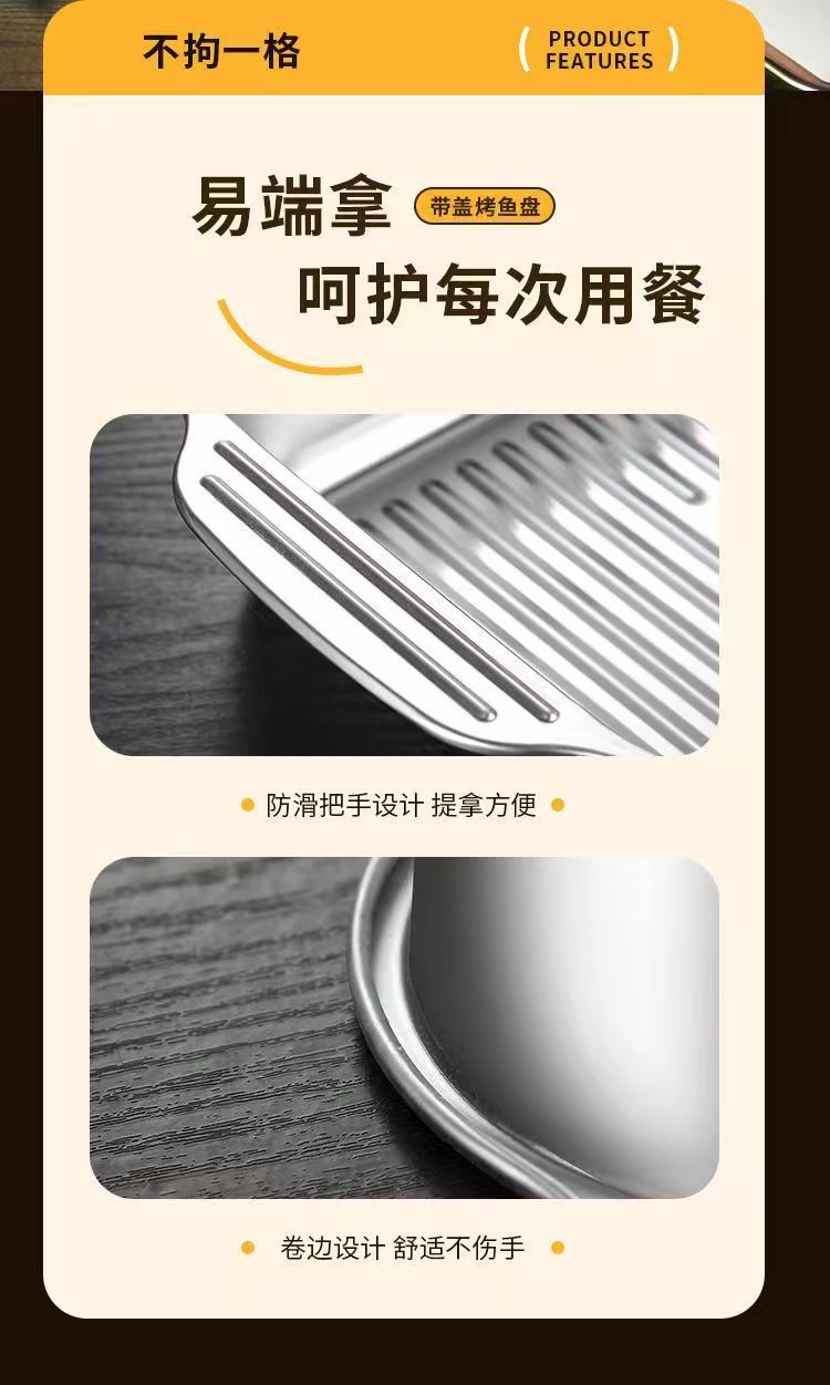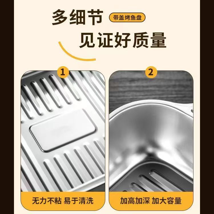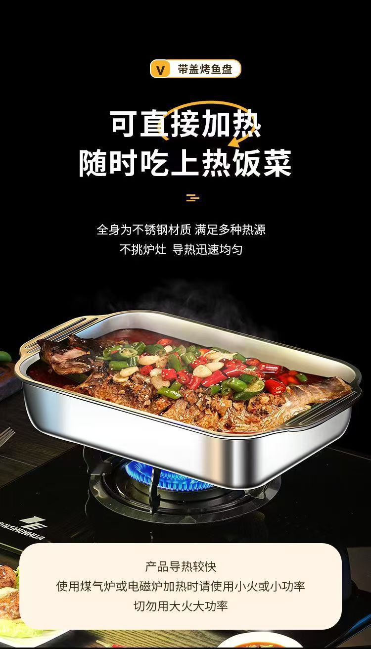 뚜껑이 달린 스테인레스 스틸 구운 어판 직사각형 가정용 한국식 스퀘어 플레이트 케이크 플레이트 깊어진 쌍안경 어판 왕새우 접시스토어 가기