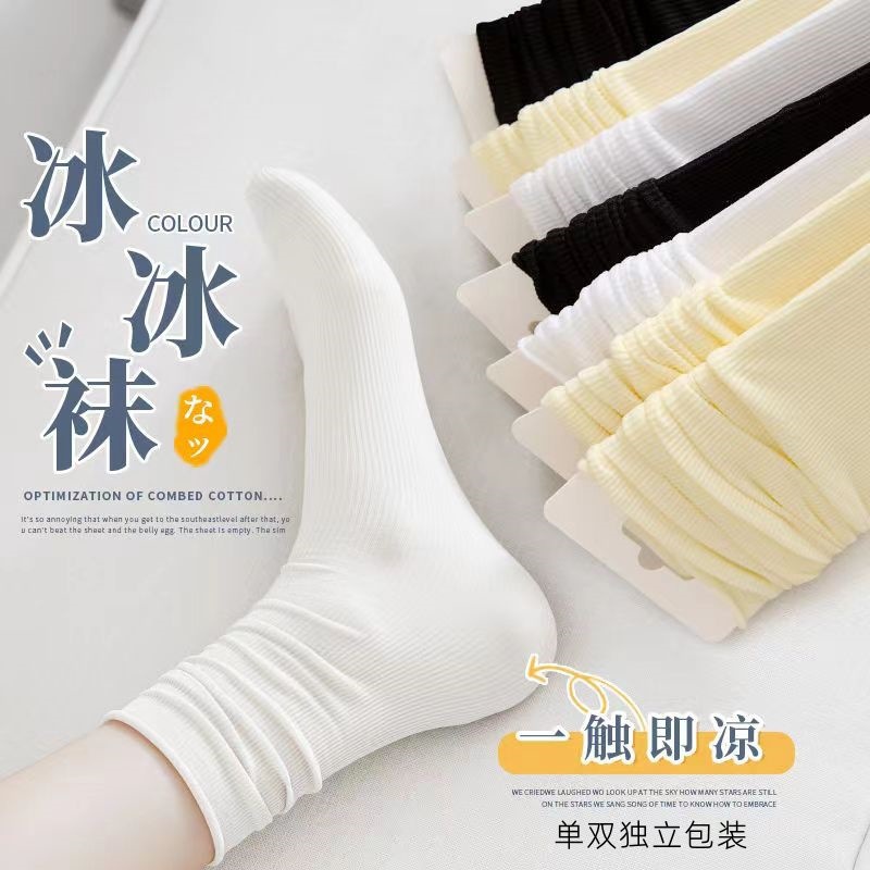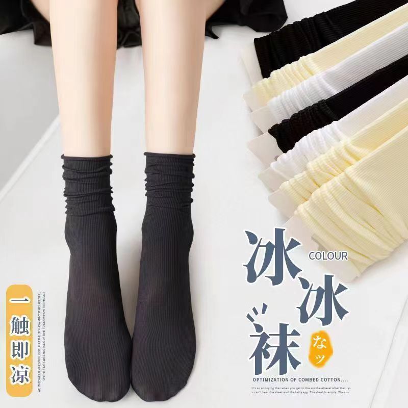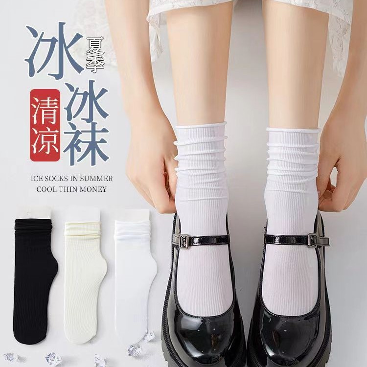 여성용 양말 여름 얇은 중간 튜브 통기성 한국 스타일 아이스 양말 화이트 jk 여성용 긴 양말 트렌디하고 다재다능함