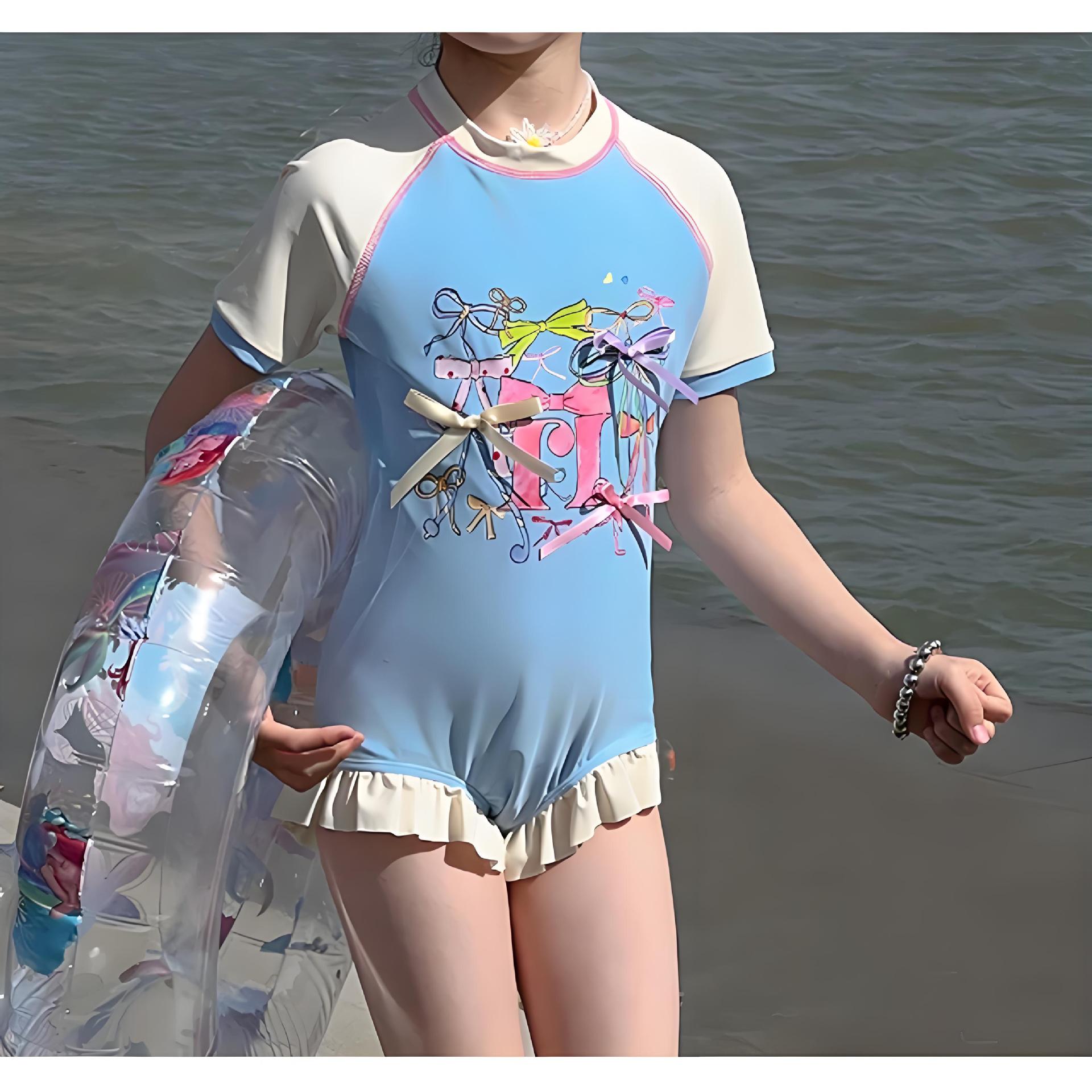 어린이 수영복 소녀와 중년 어린이 원피스 한국어 버전 귀여운 작은 신선한 폴리 에스터 어린 소녀 해변 온천 수영복스토어 가기