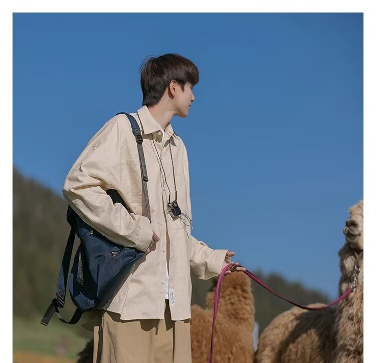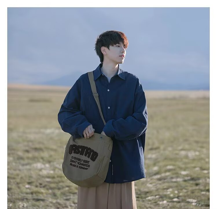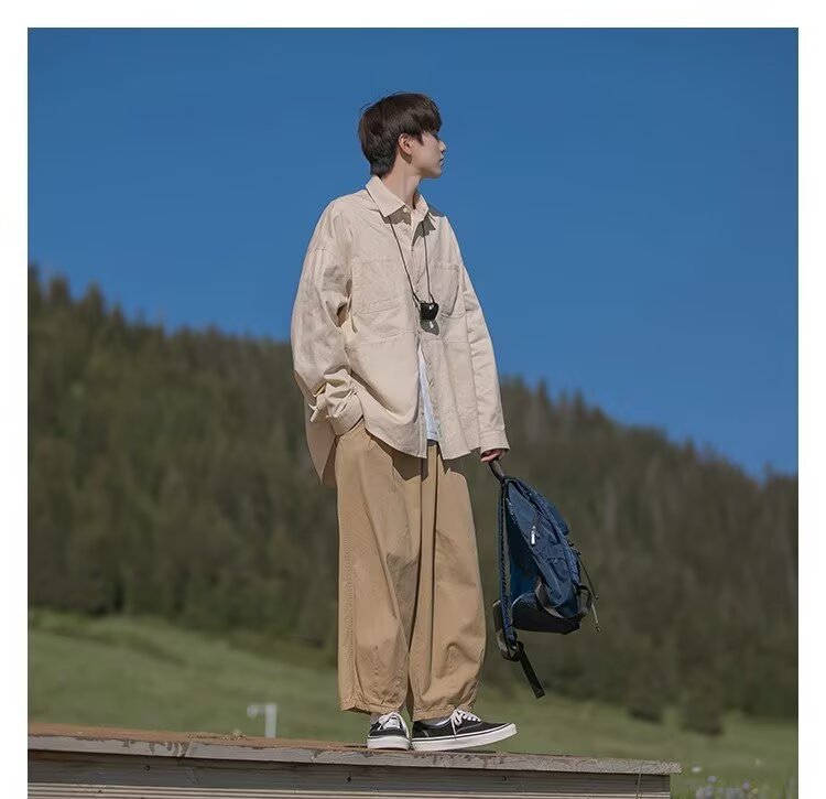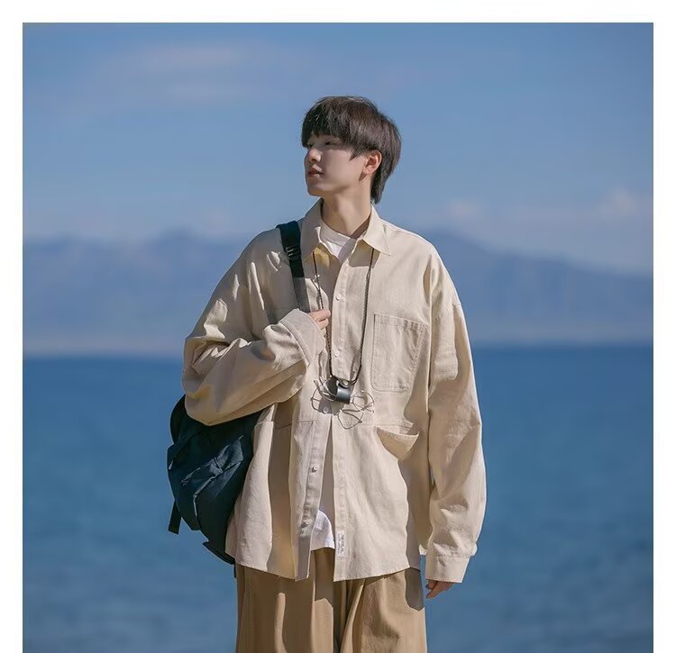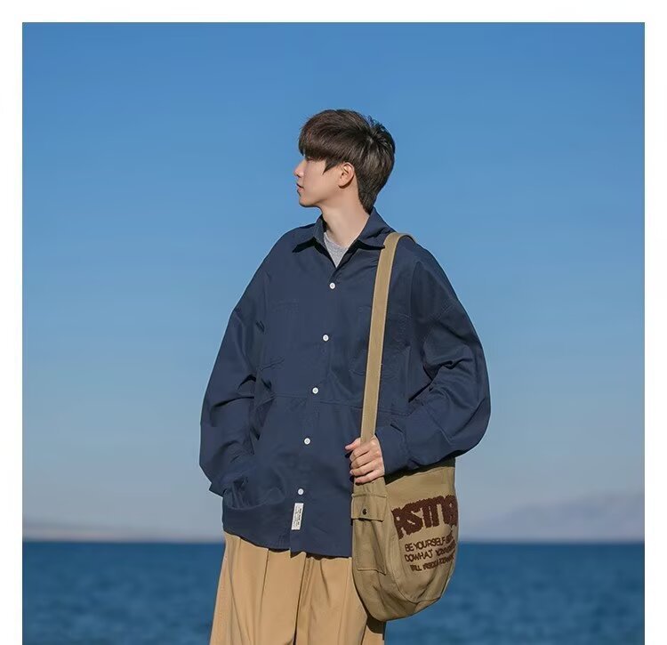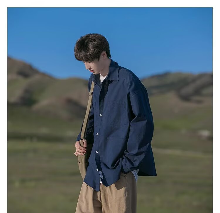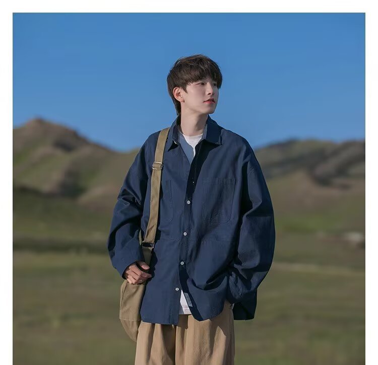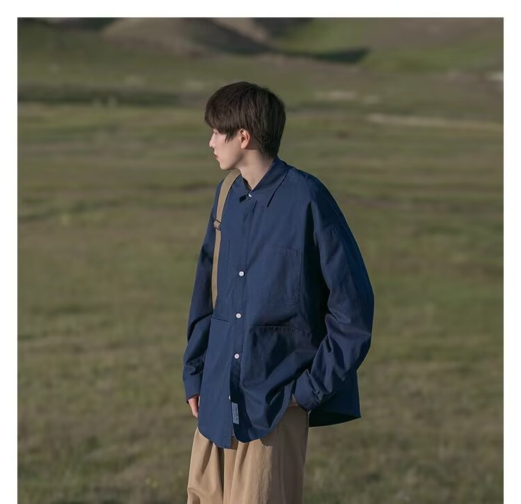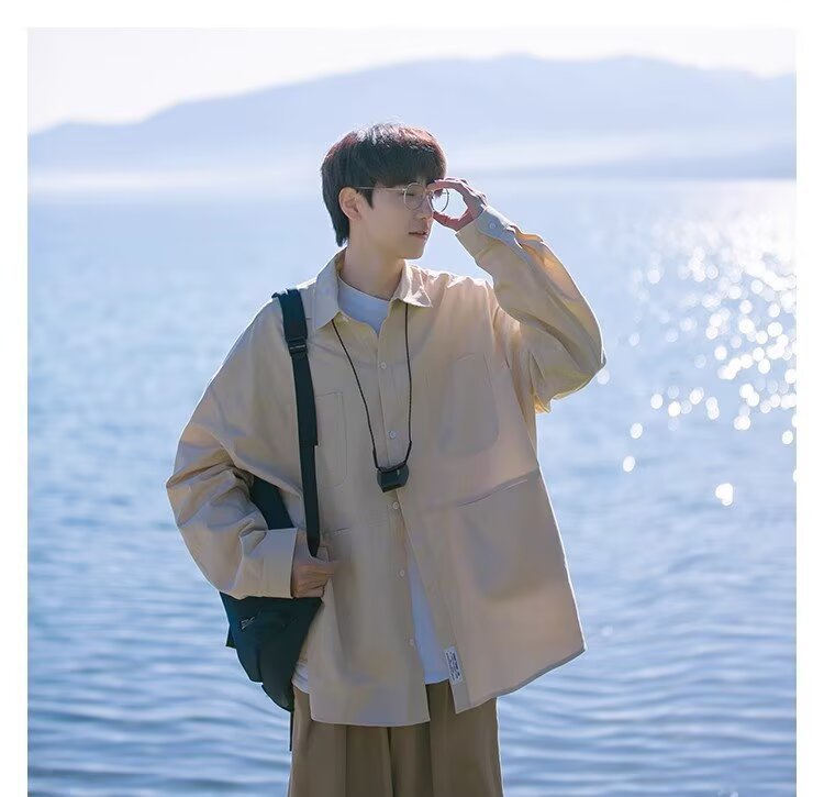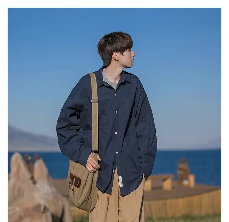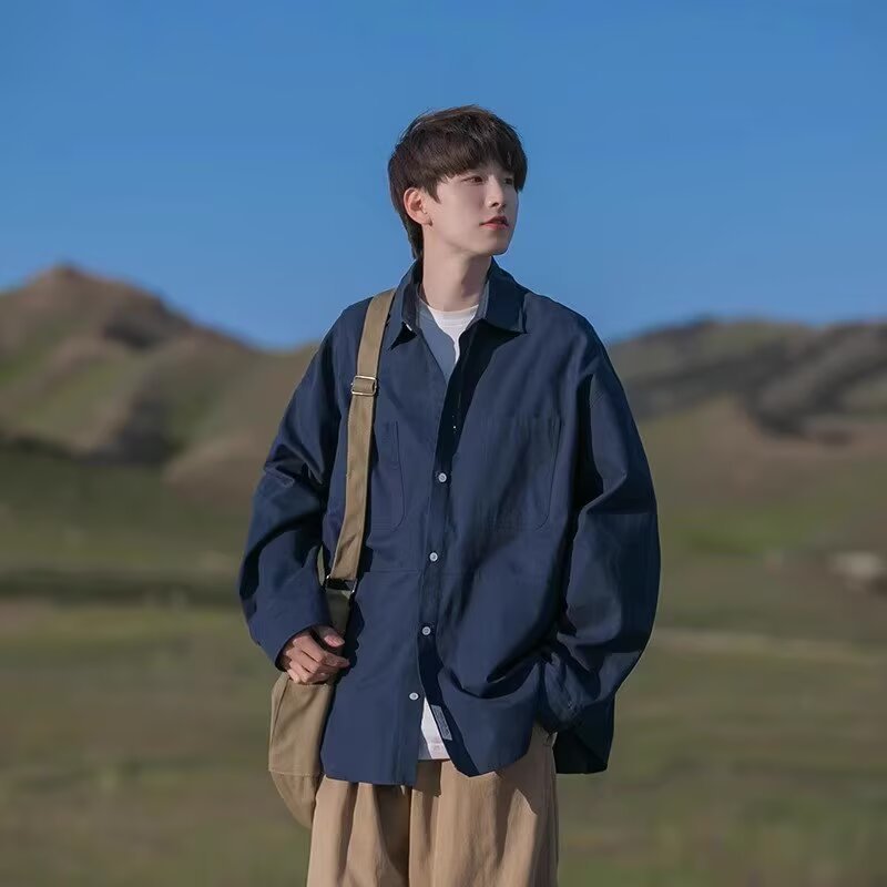일본 복고풍 긴팔 셔츠 남성 봄 여름 디자인 루즈 캐주얼 셔츠 하이 스트리트 패션 브랜드 잘 생긴 얇은 재킷
