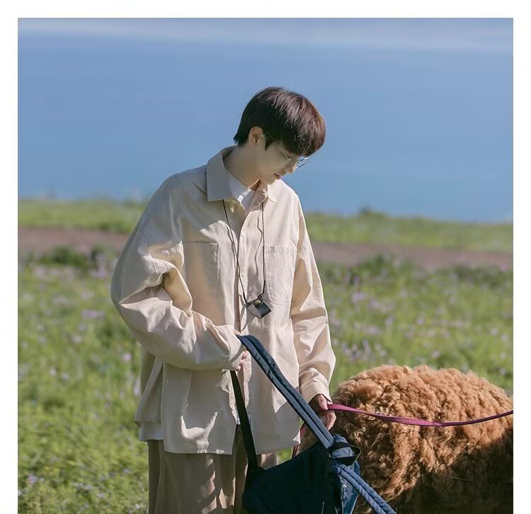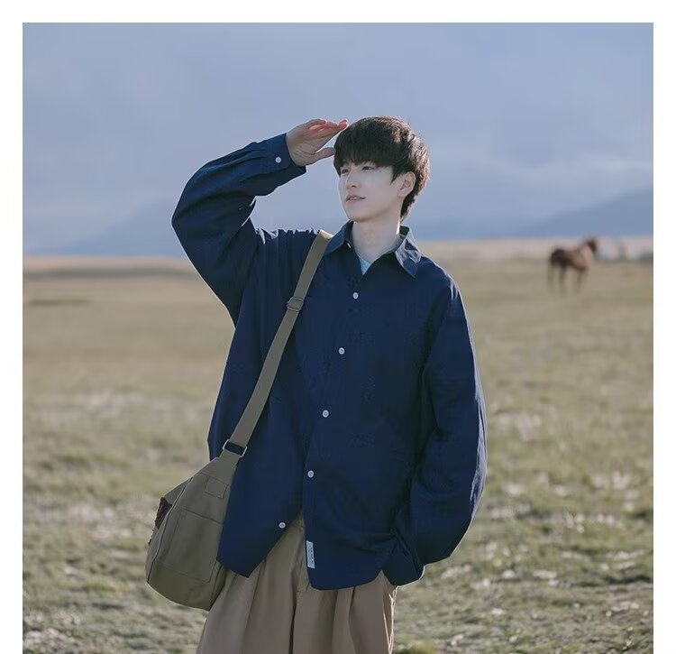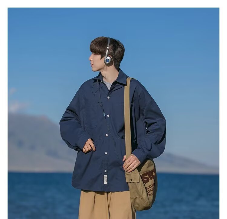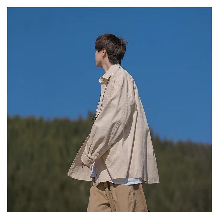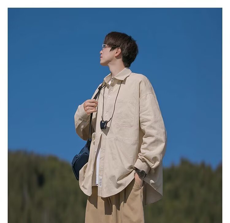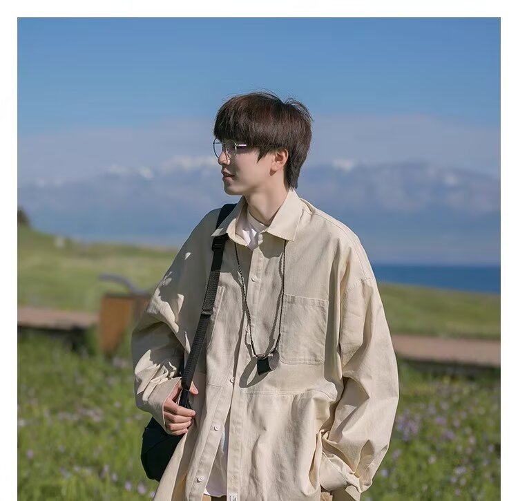 일본 복고풍 긴팔 셔츠 남성 봄 여름 디자인 루즈 캐주얼 셔츠 하이 스트리트 패션 브랜드 잘 생긴 얇은 재킷스토어 가기