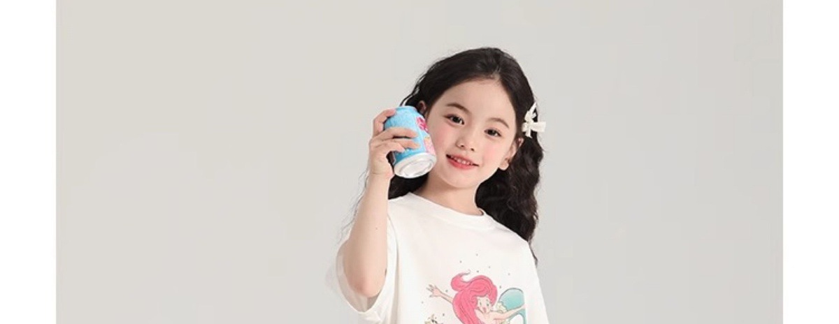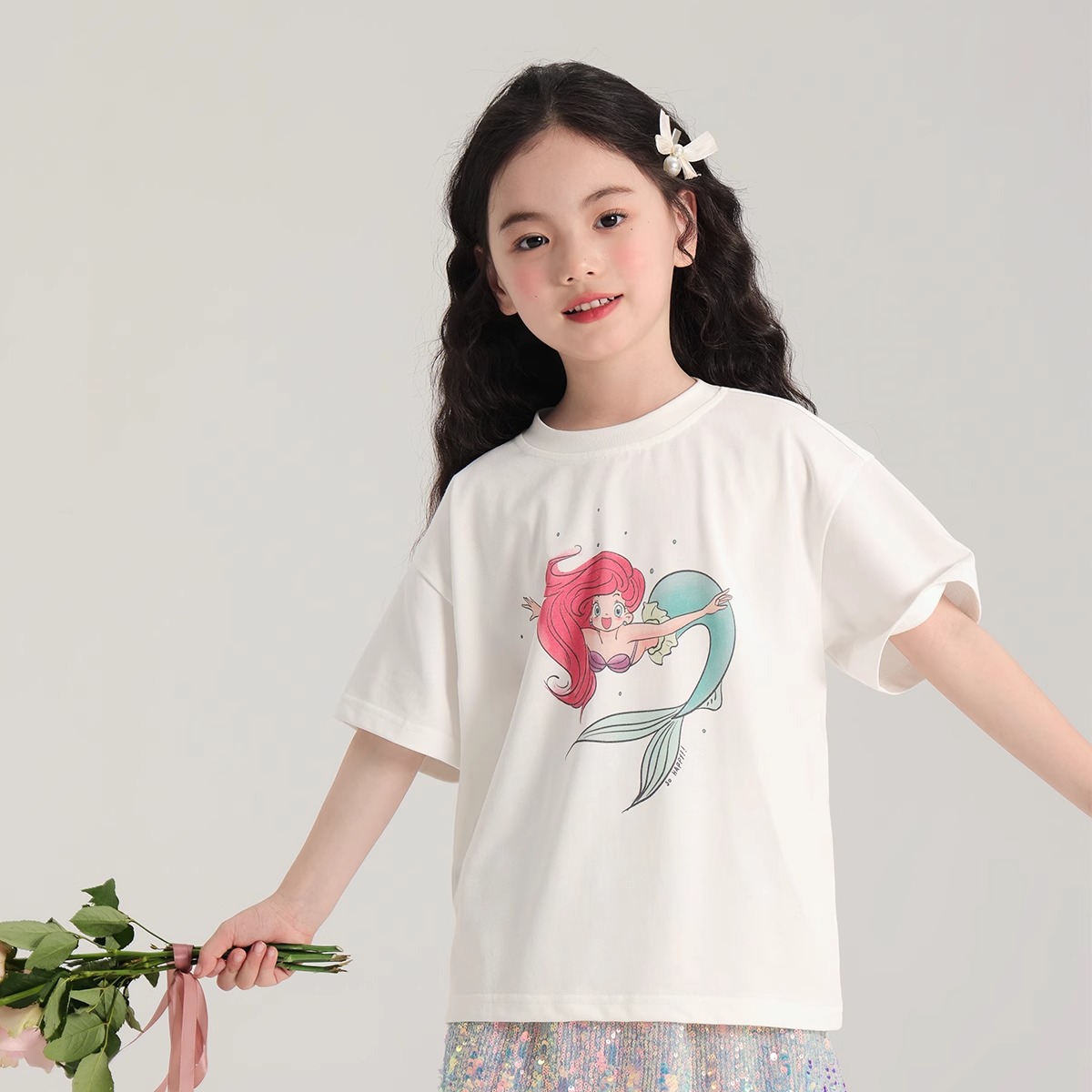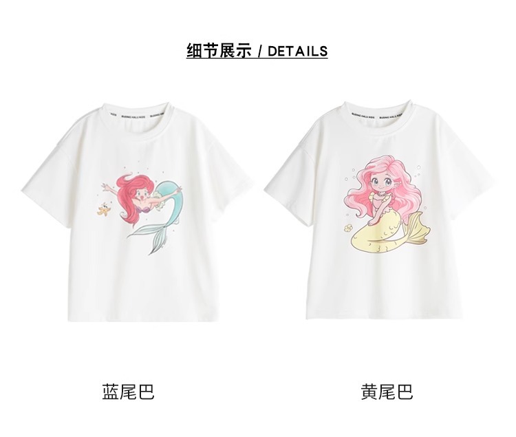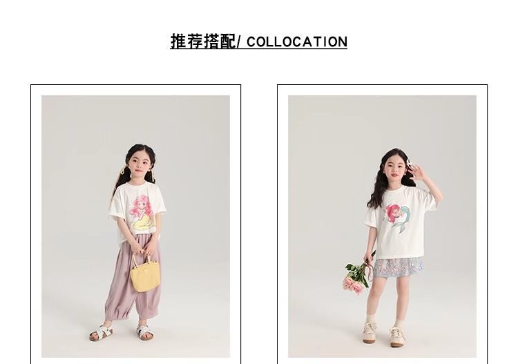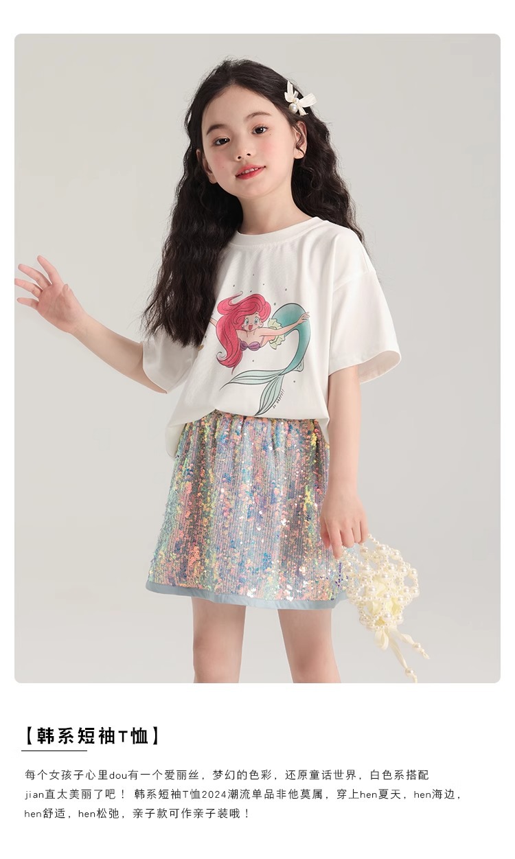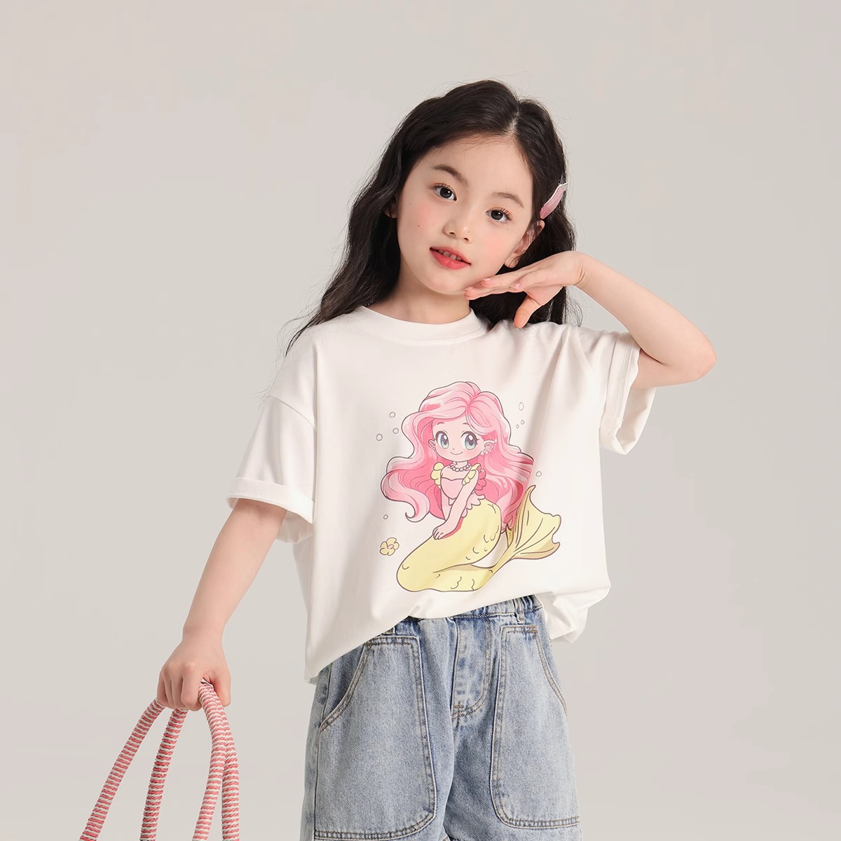 여자 여름 캐주얼 반팔 셔츠 2025 새로운 어린이 만화 라운드 넥 반팔 티셔츠 어린 소녀 얇은스토어 가기