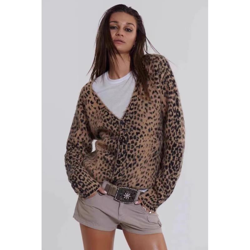Jaded London 유럽과 미국의 스파이스 걸 소프트 Y2K 모헤어 레오파드 무늬 스웨터 니트 V-Neck 카디건 코트 여성스토어 가기