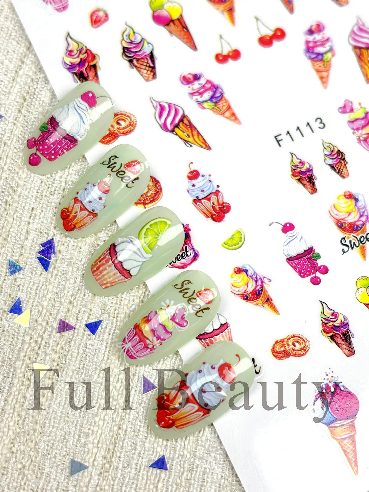 FULL BEAUTY 크로스보더 새로운 네일 아트 스티커 여름 작은 신선한 과일 스티커 아이스크림 네일 스티커