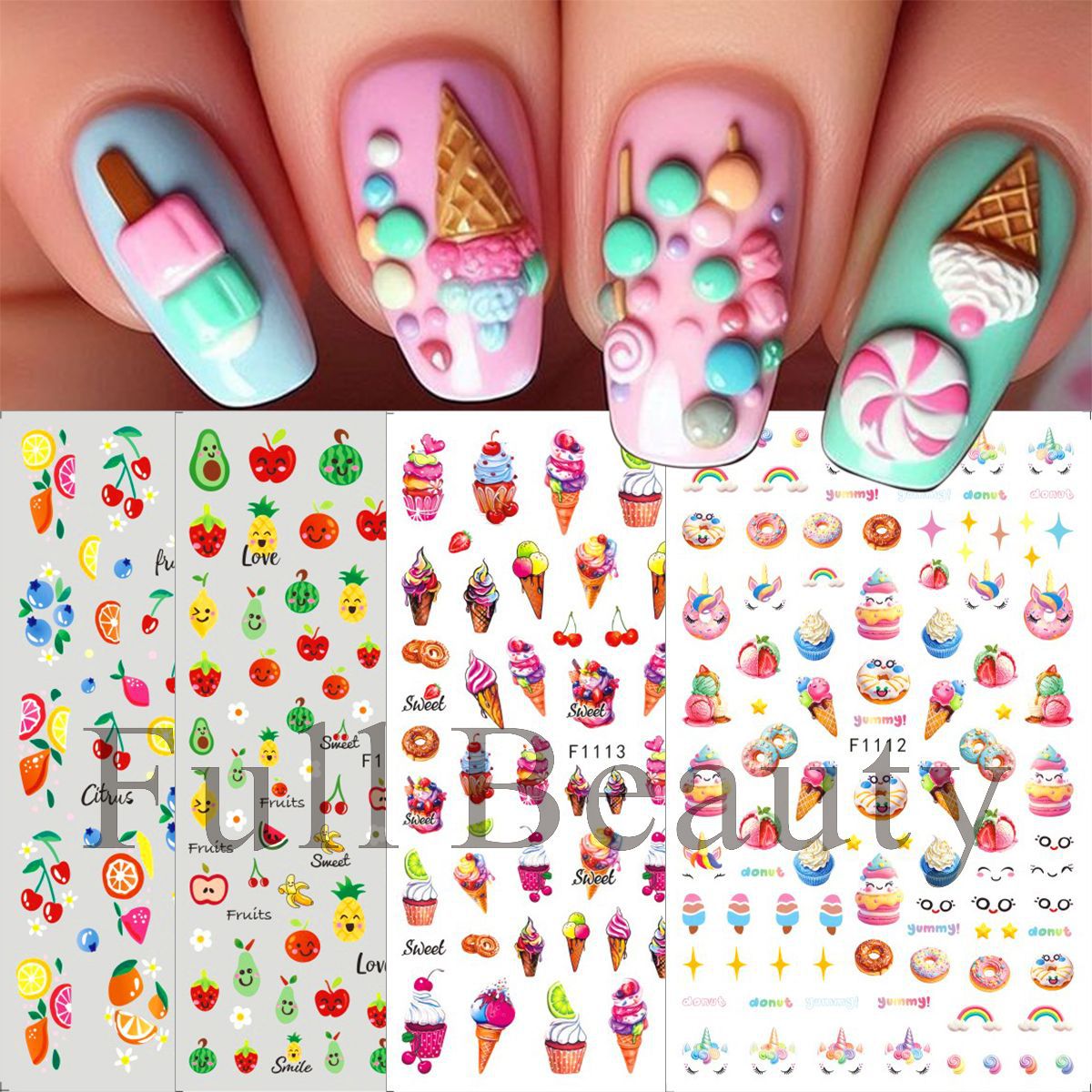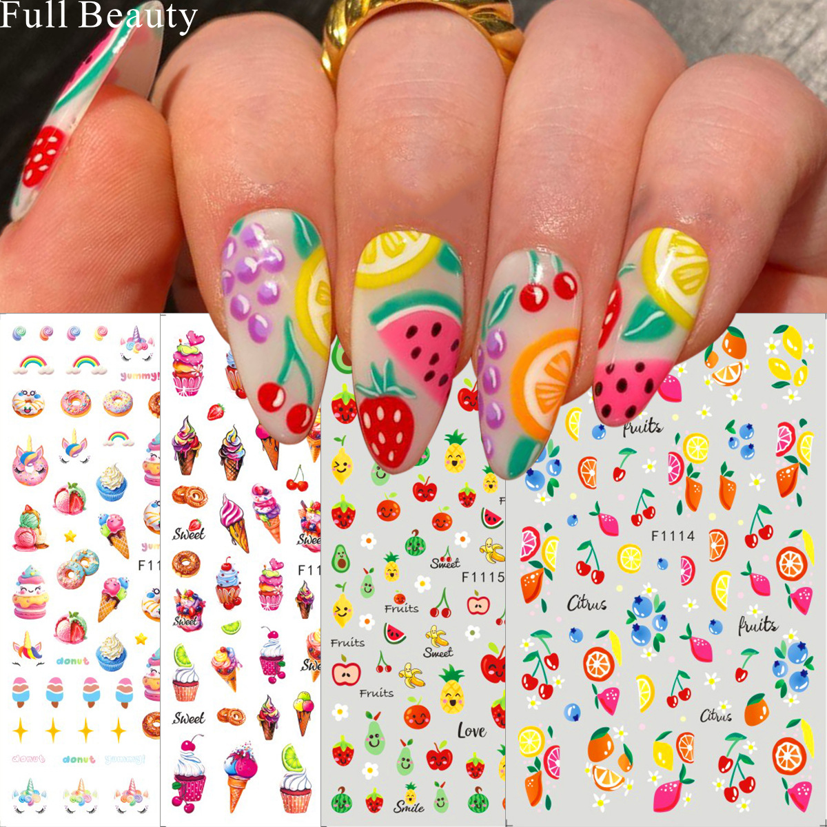 FULL BEAUTY 크로스보더 새로운 네일 아트 스티커 여름 작은 신선한 과일 스티커 아이스크림 네일 스티커스토어 가기