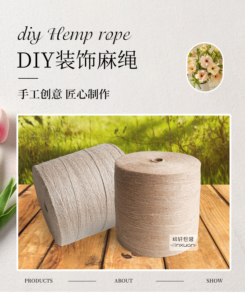 천연 황마 실, 황마 로프, 화물 묶음, 수제 DIY 액세서리, 병 감싸기 공예 장식 용품스토어 가기