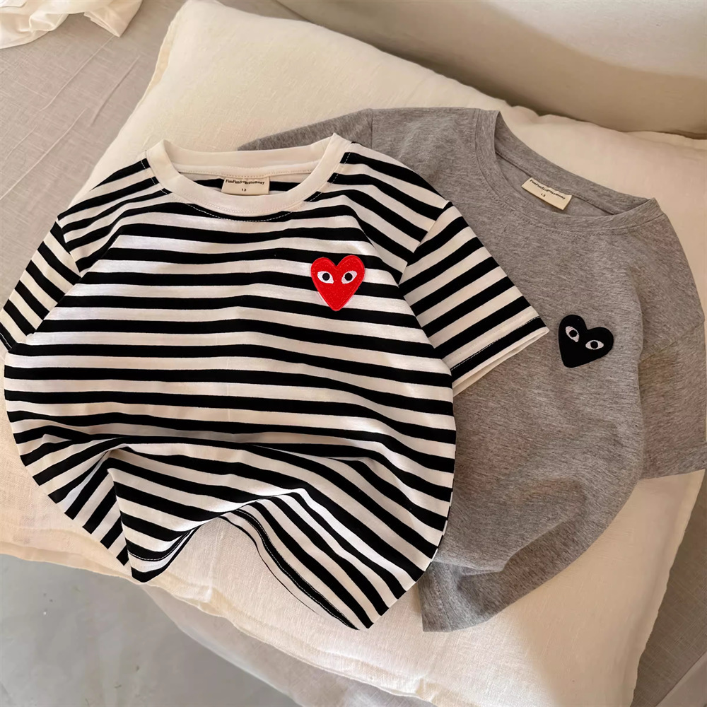 어린이 반팔 2025 여름 일본 스타일 트렌디 브랜드 사랑 유행 바투밍 아기 줄무늬 어린이 세련된 티셔츠