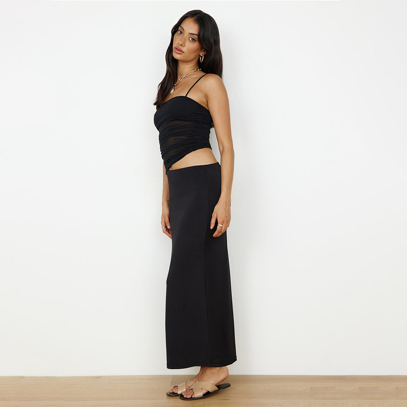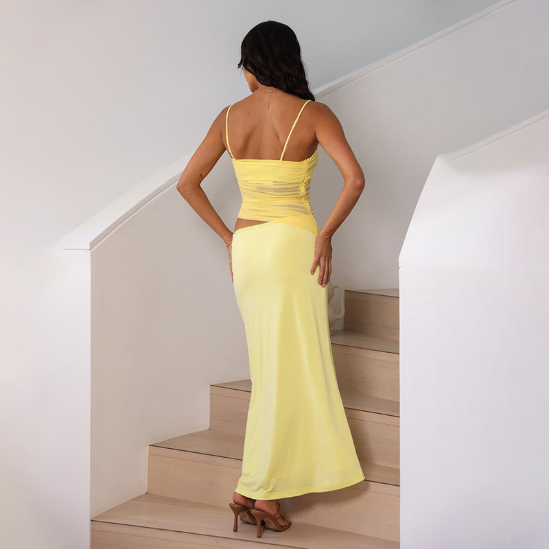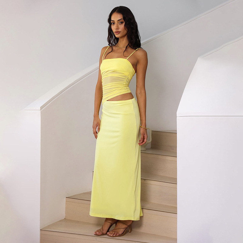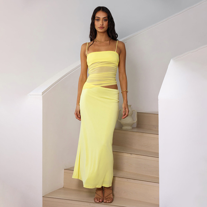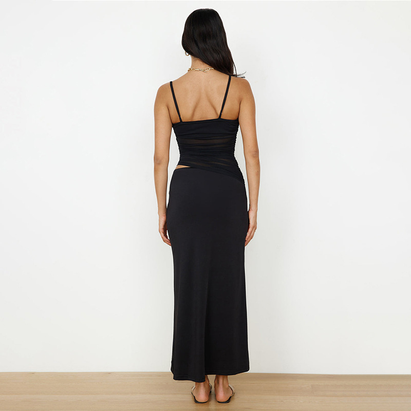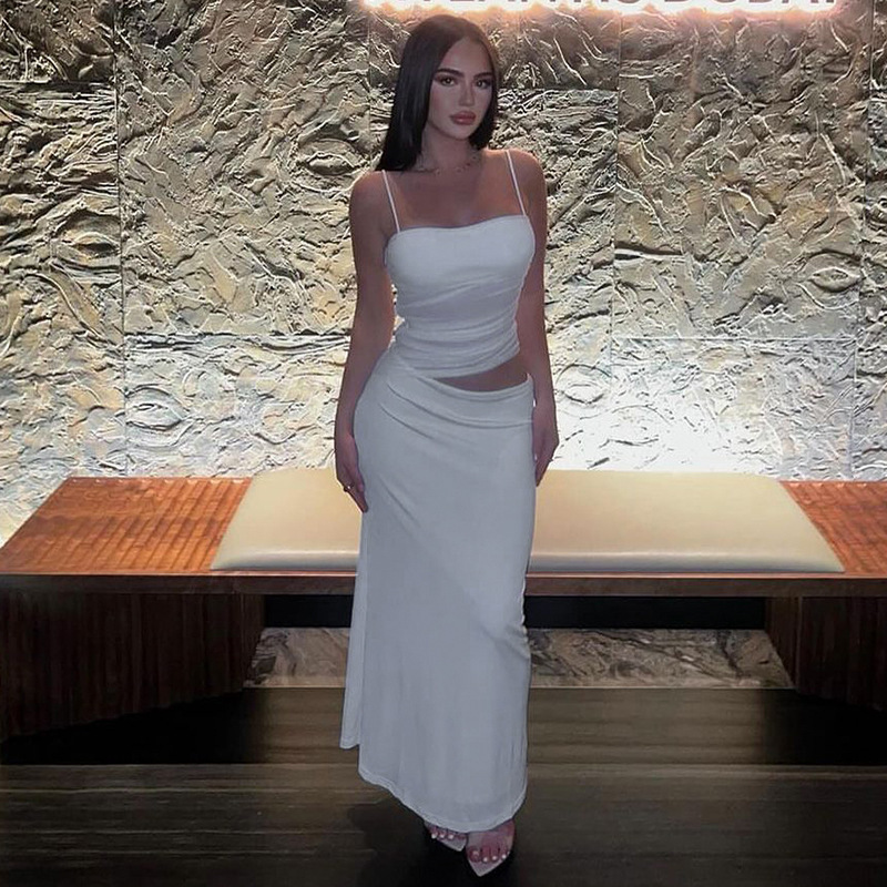 국경 간 유럽과 미국 여성의 2025 여름 새로운 캐주얼 민소매 주름 스트랩 탑 슬림 핏 긴 원피스 세트 여성스토어 가기