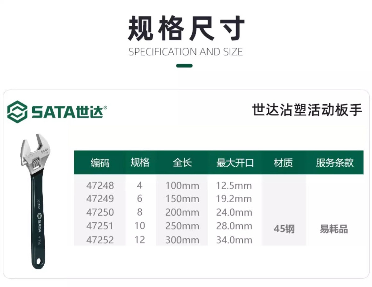 [생방송 단독] Shida 플라스틱 라이브 렌치 소형 오픈 렌치 소형 4/6/8/10/ 12inch