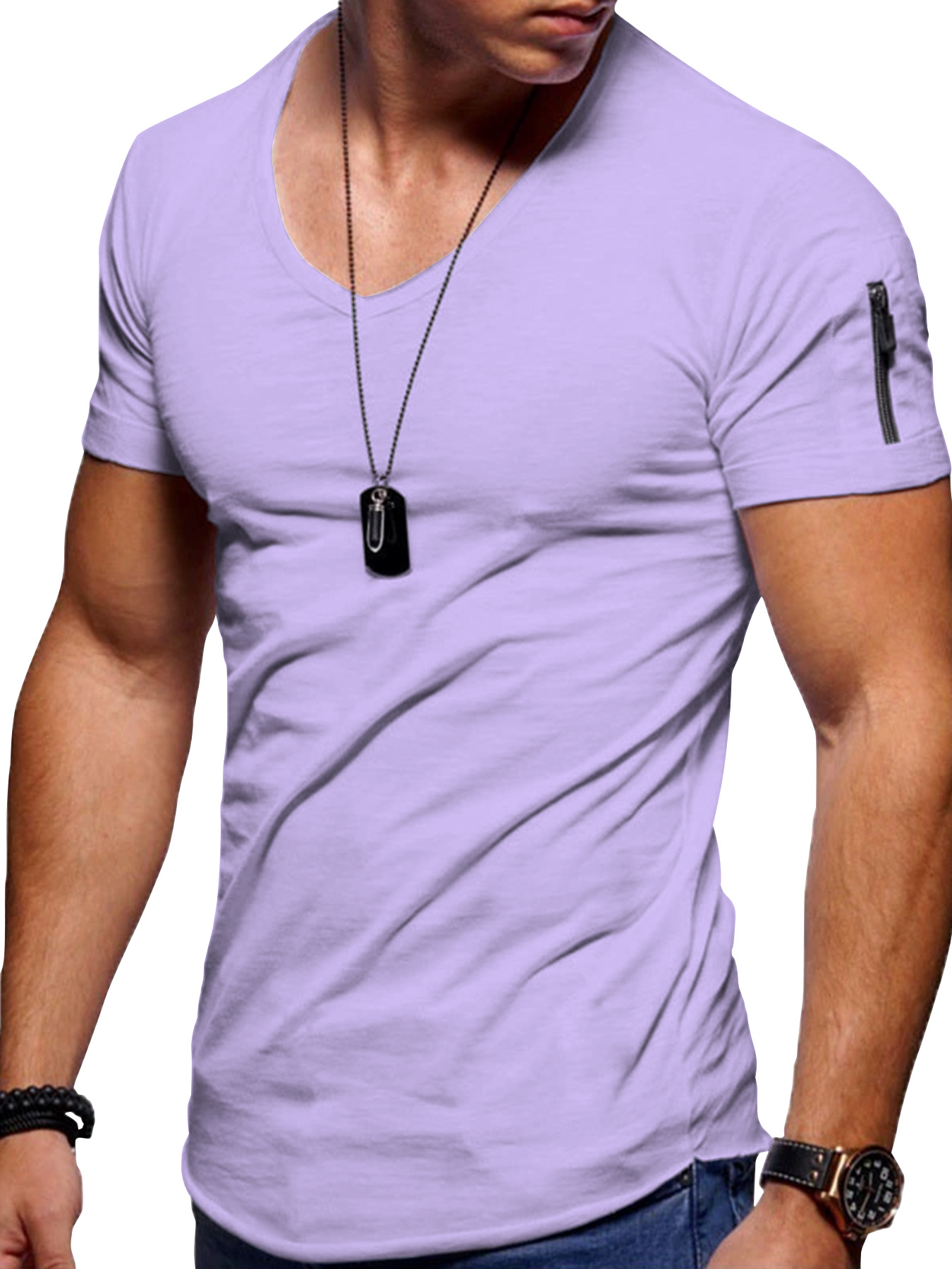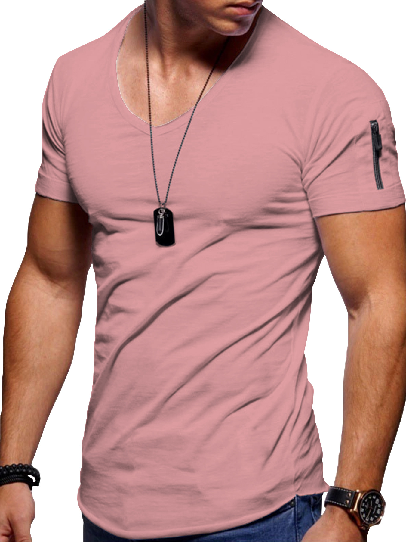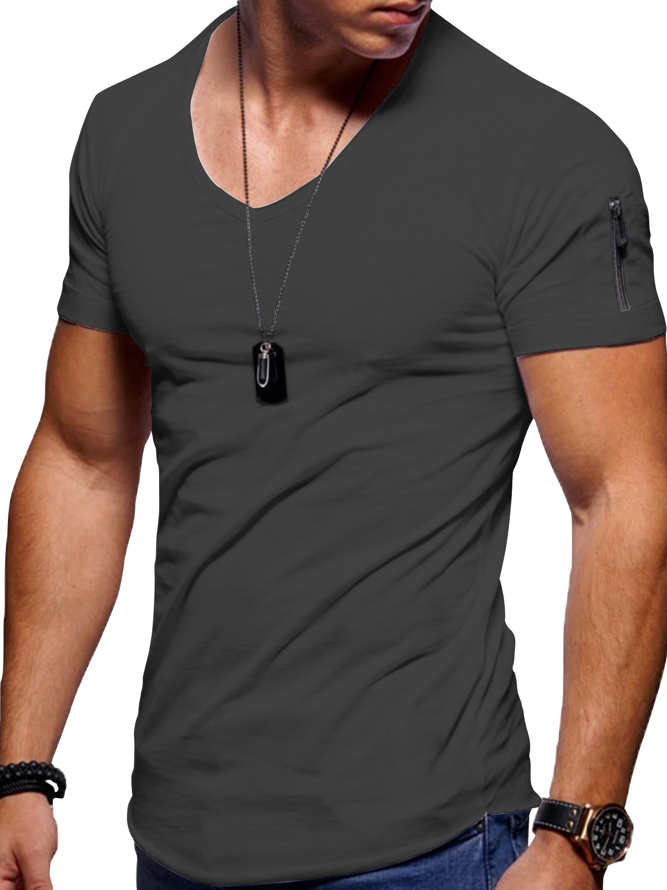 남성 티셔츠 국경 간 의류 유럽과 미국 대외 무역 남성 v 넥 솔리드 컬러 대형 캐주얼 반팔 티셔츠-재고 있음스토어 가기