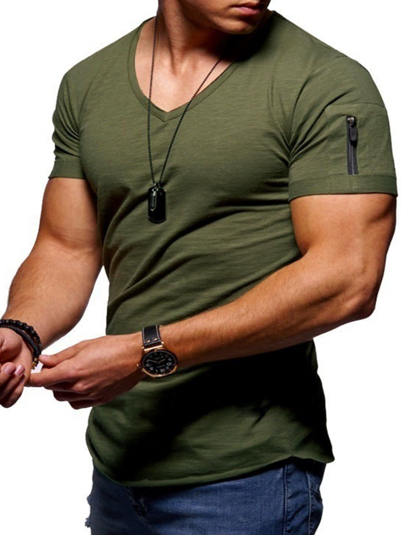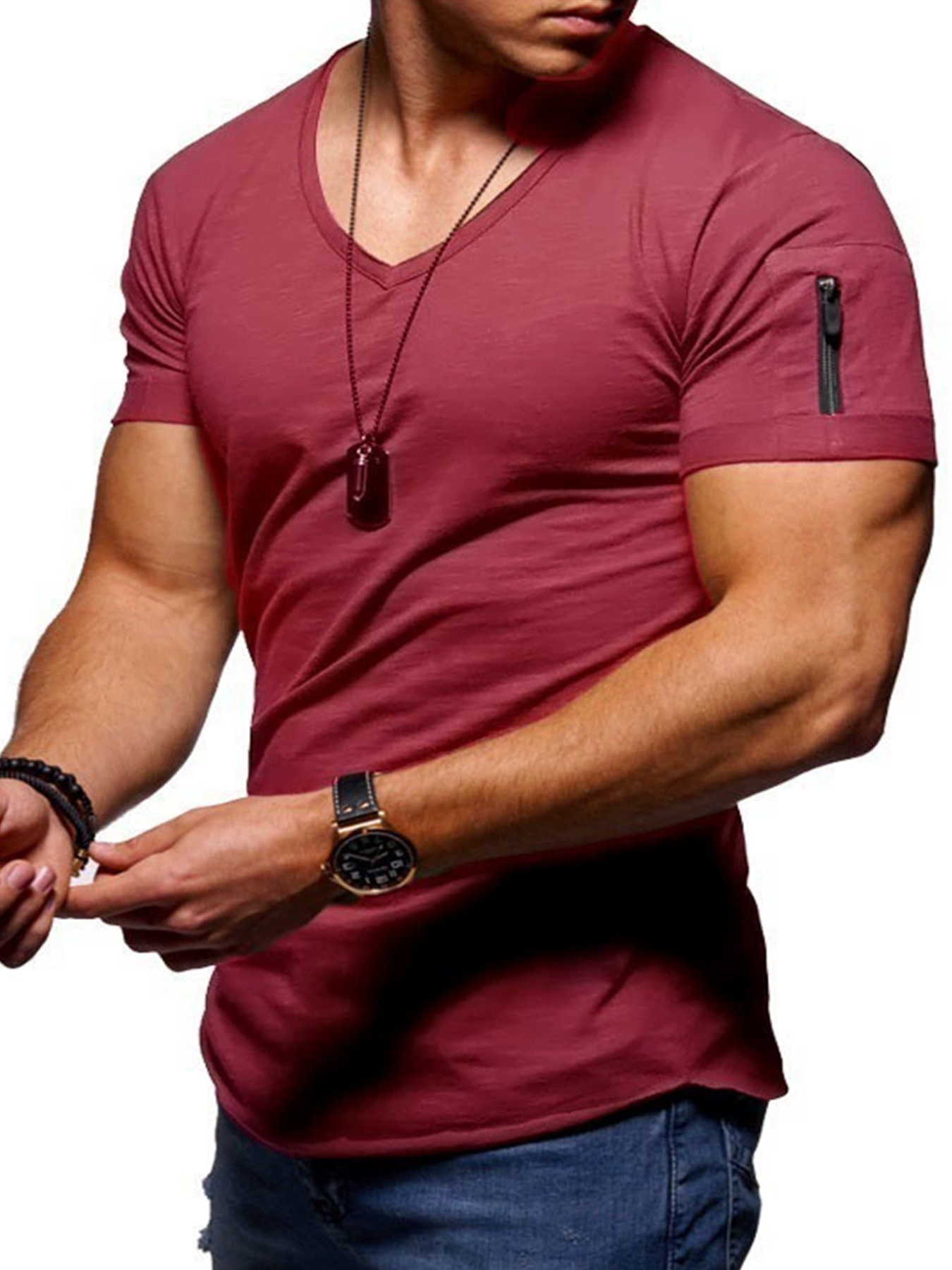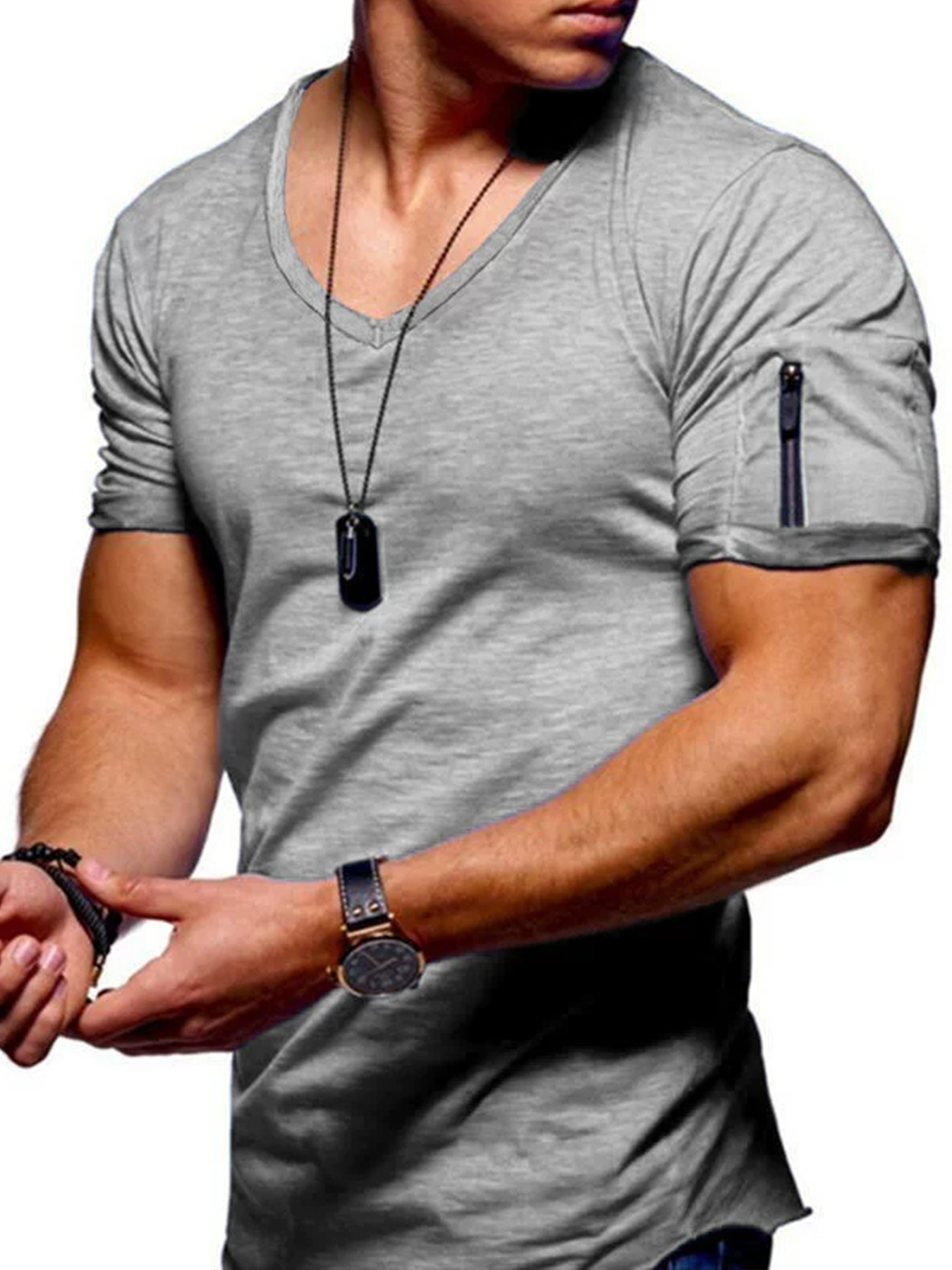 남성 티셔츠 국경 간 의류 유럽과 미국 대외 무역 남성 v 넥 솔리드 컬러 대형 캐주얼 반팔 티셔츠-재고 있음스토어 가기