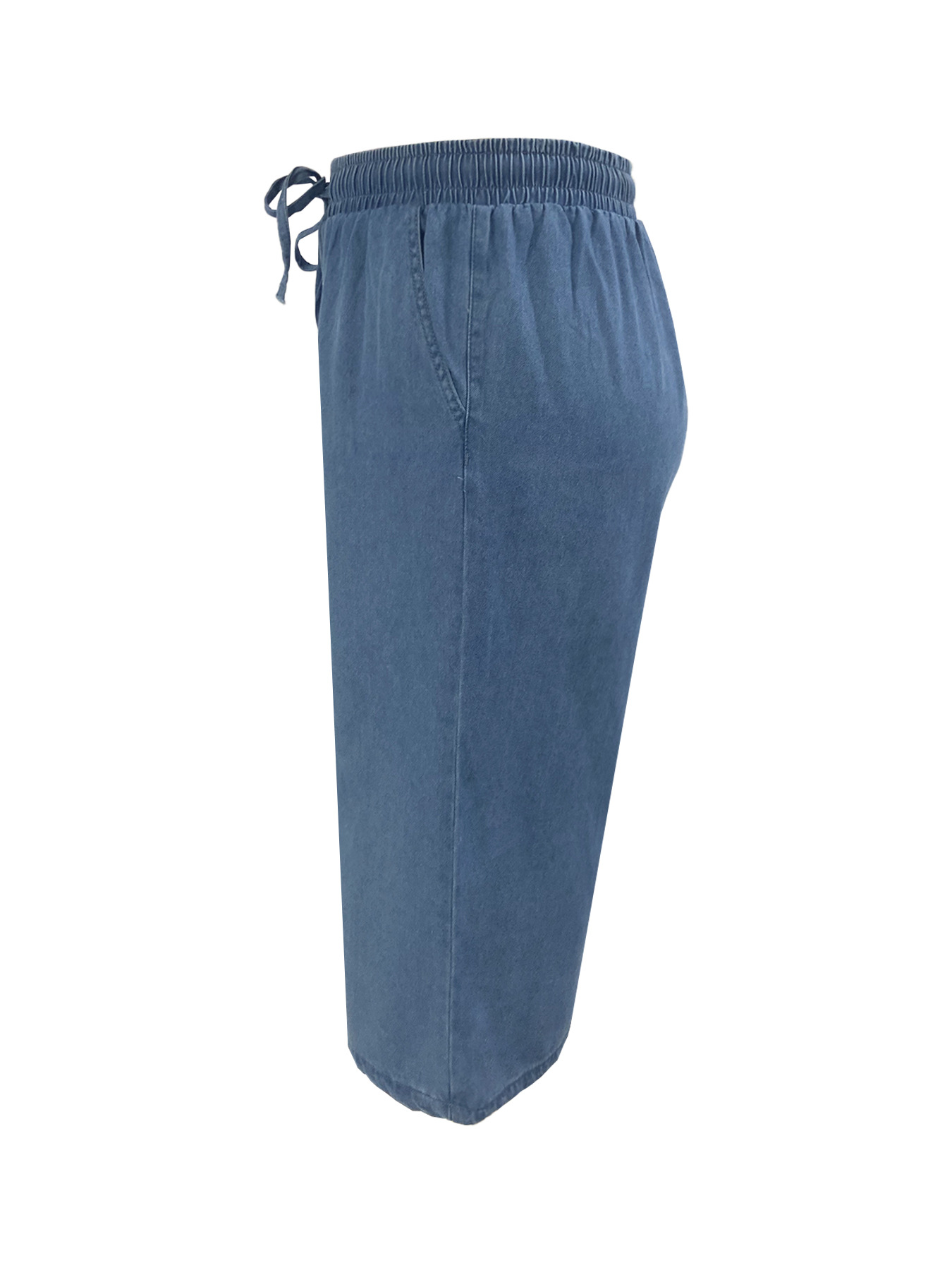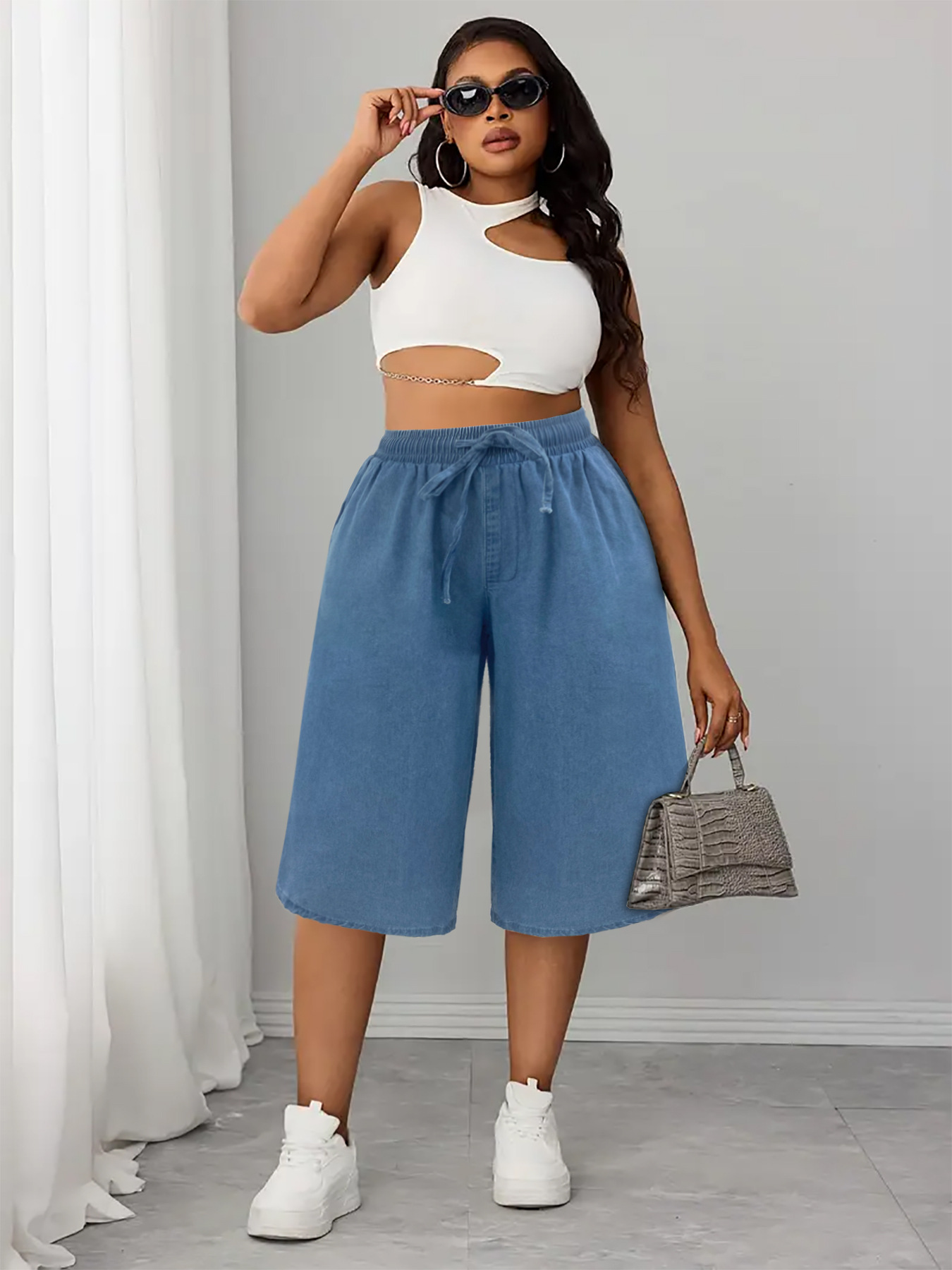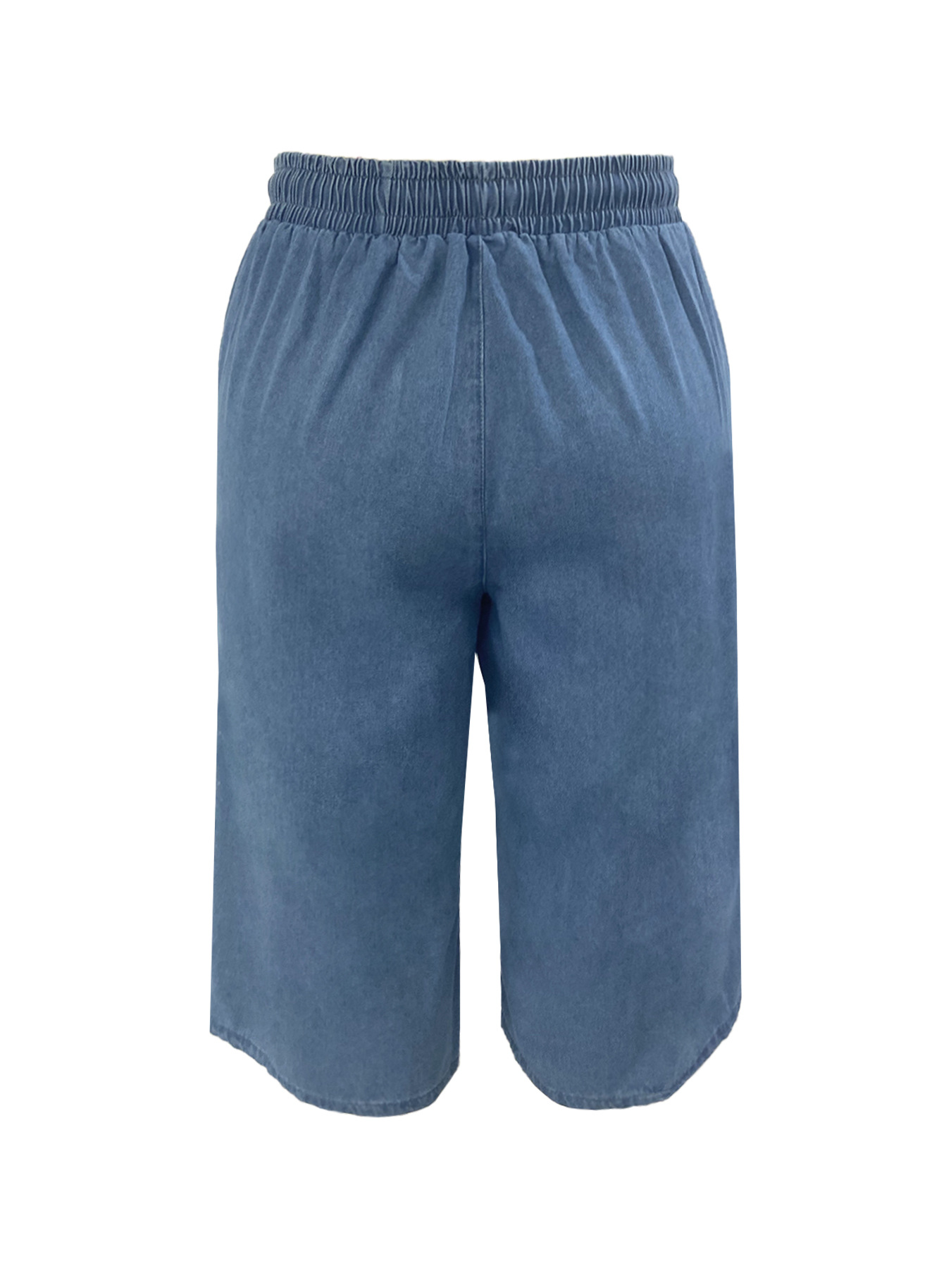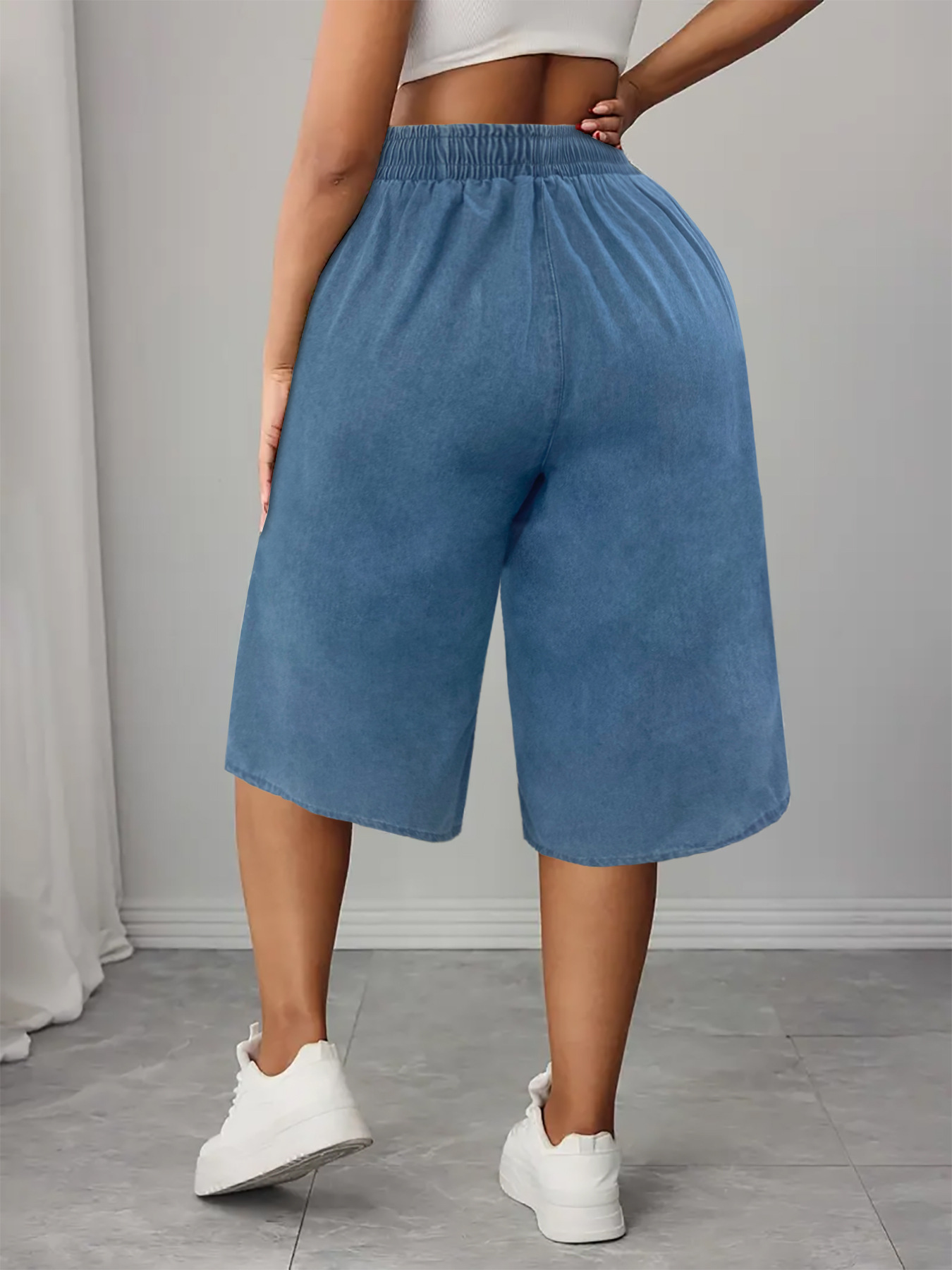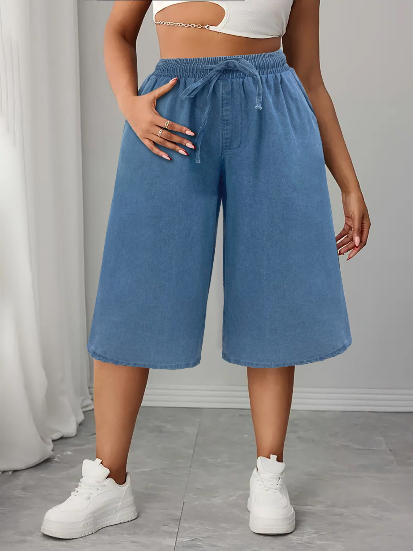 여름 여성을 위한 유럽과 미국의 매장에서 가장 잘 팔리는 텐셀 데님 반바지 새로운 스타일 캐주얼 5부 루즈 대형 외부 착용 와이드 레그