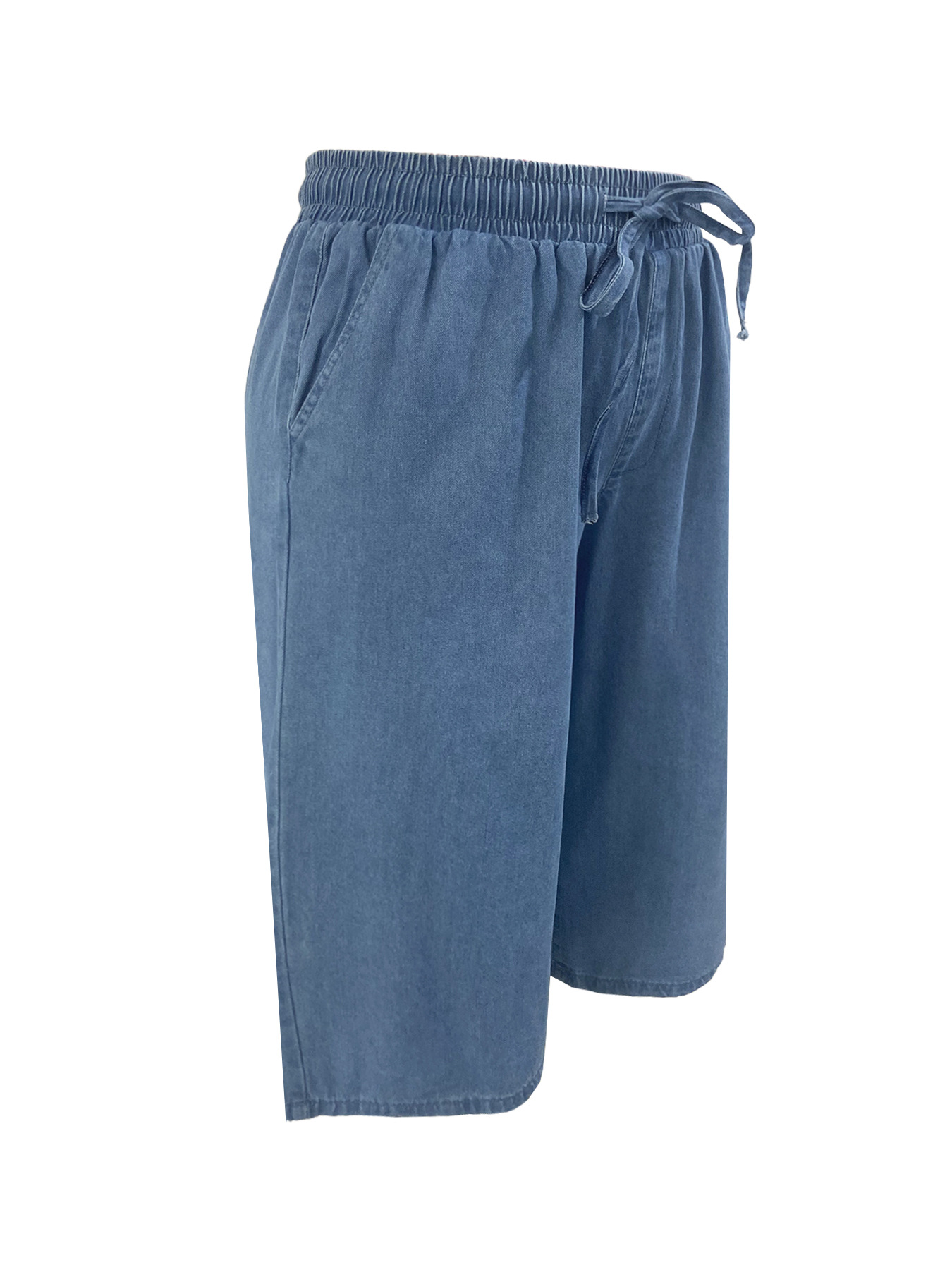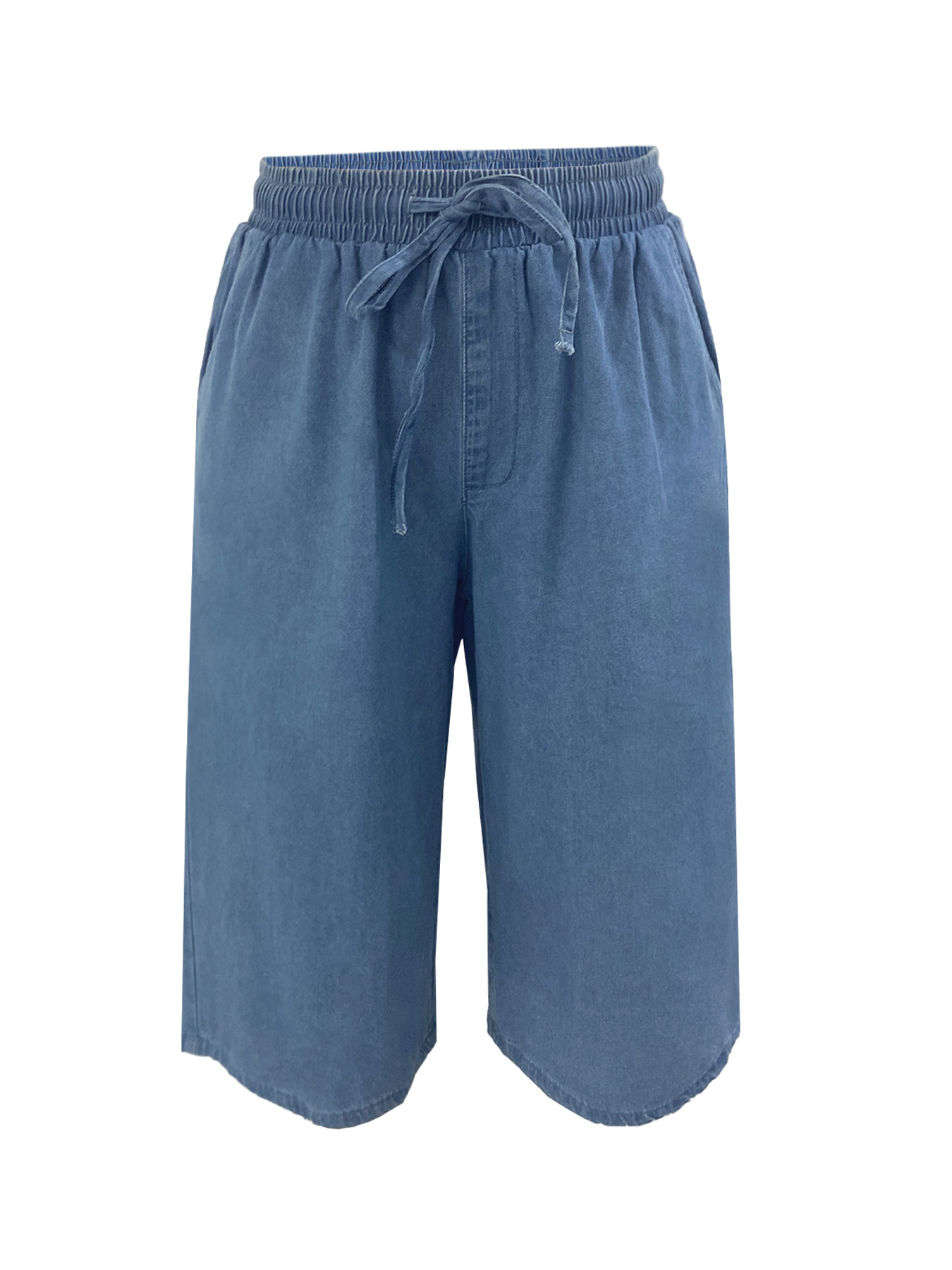 여름 여성을 위한 유럽과 미국의 매장에서 가장 잘 팔리는 텐셀 데님 반바지 새로운 스타일 캐주얼 5부 루즈 대형 외부 착용 와이드 레그스토어 가기
