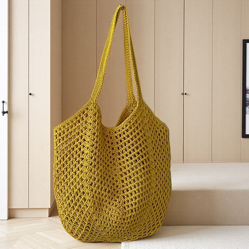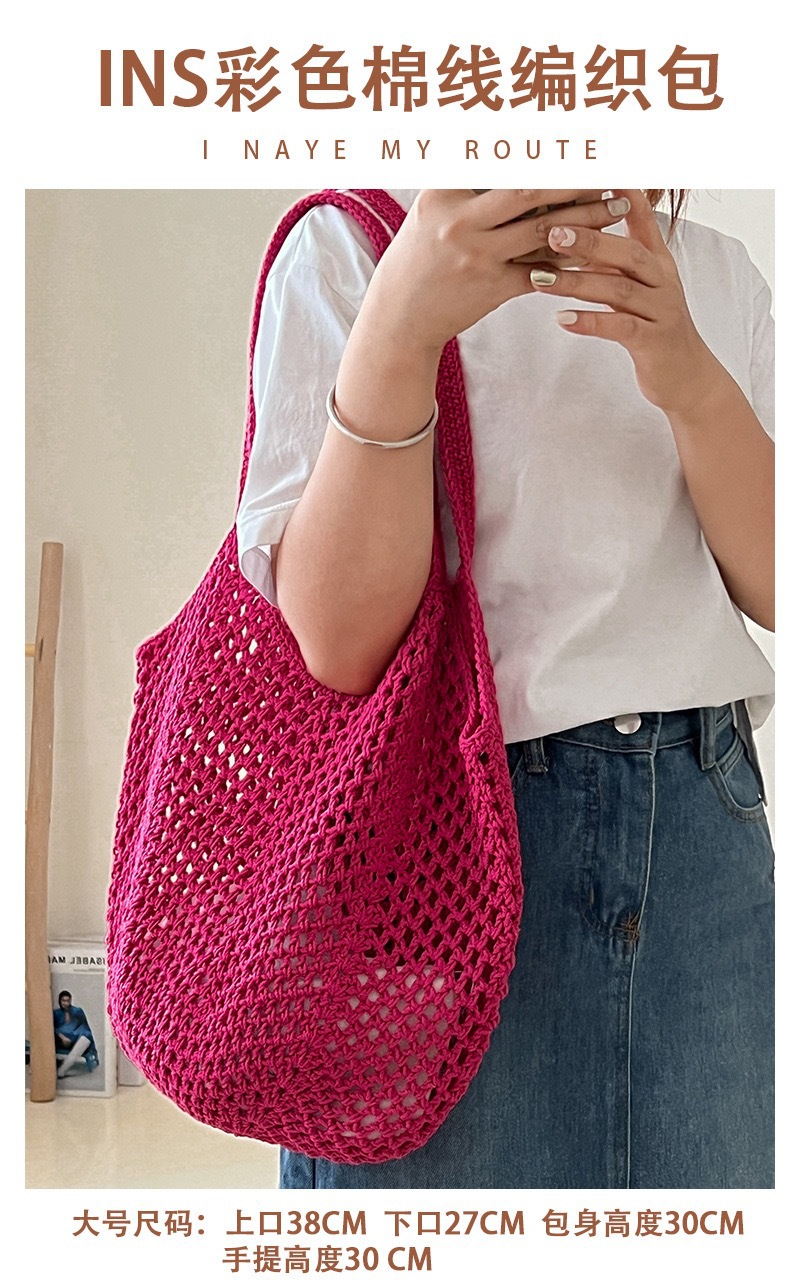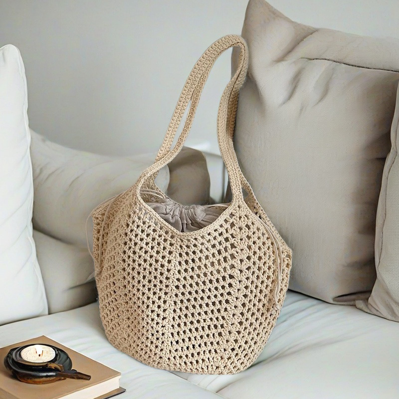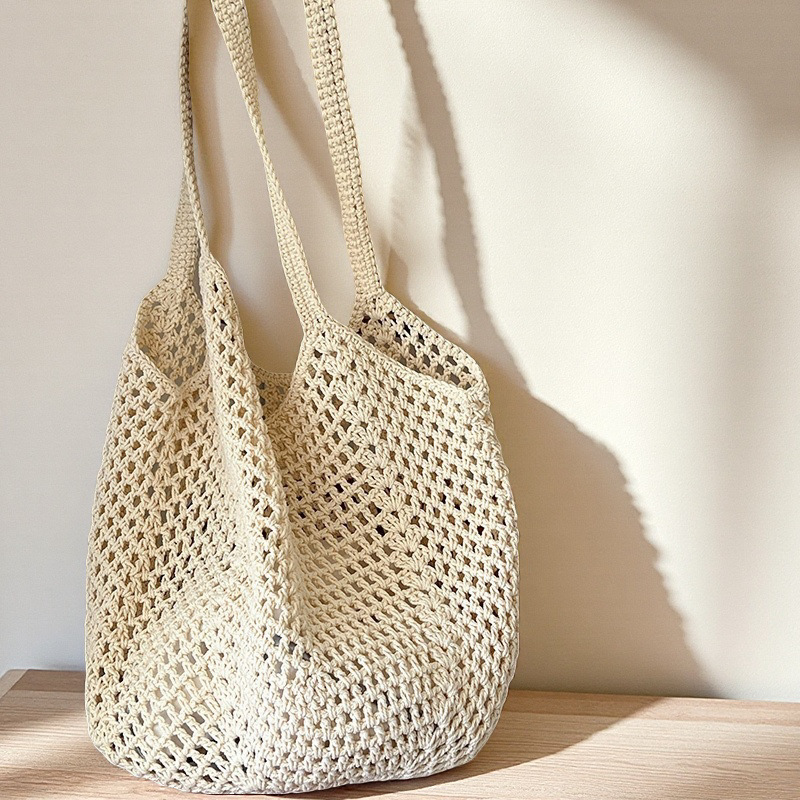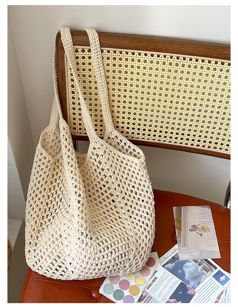 캐주얼 대용량 면직물 가방, 새로운 중공 밀짚 가방, 게으른 스타일 숄더백, 휴가 해변 가방, 여성용 가방스토어 가기