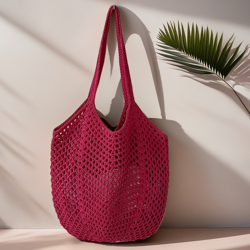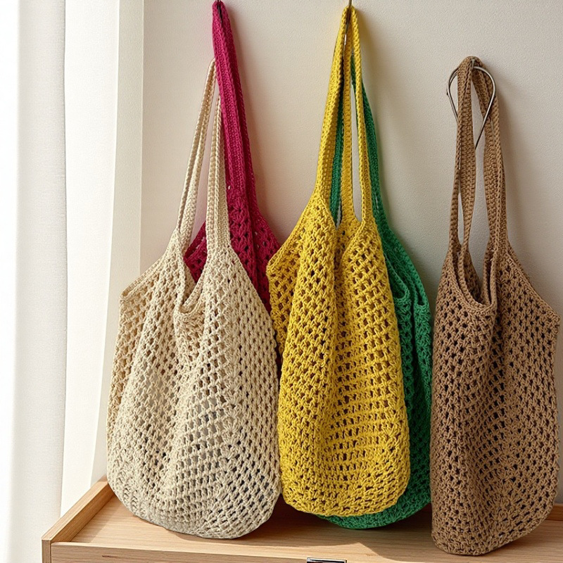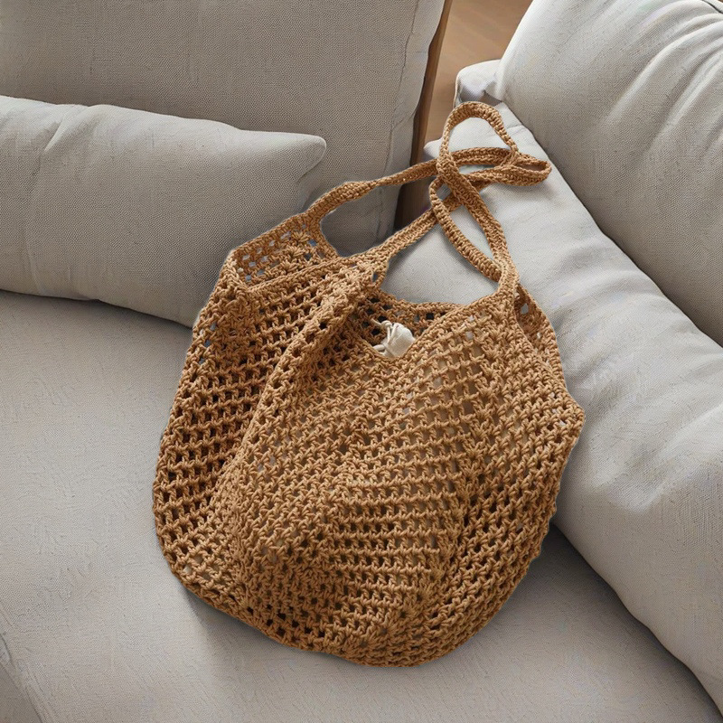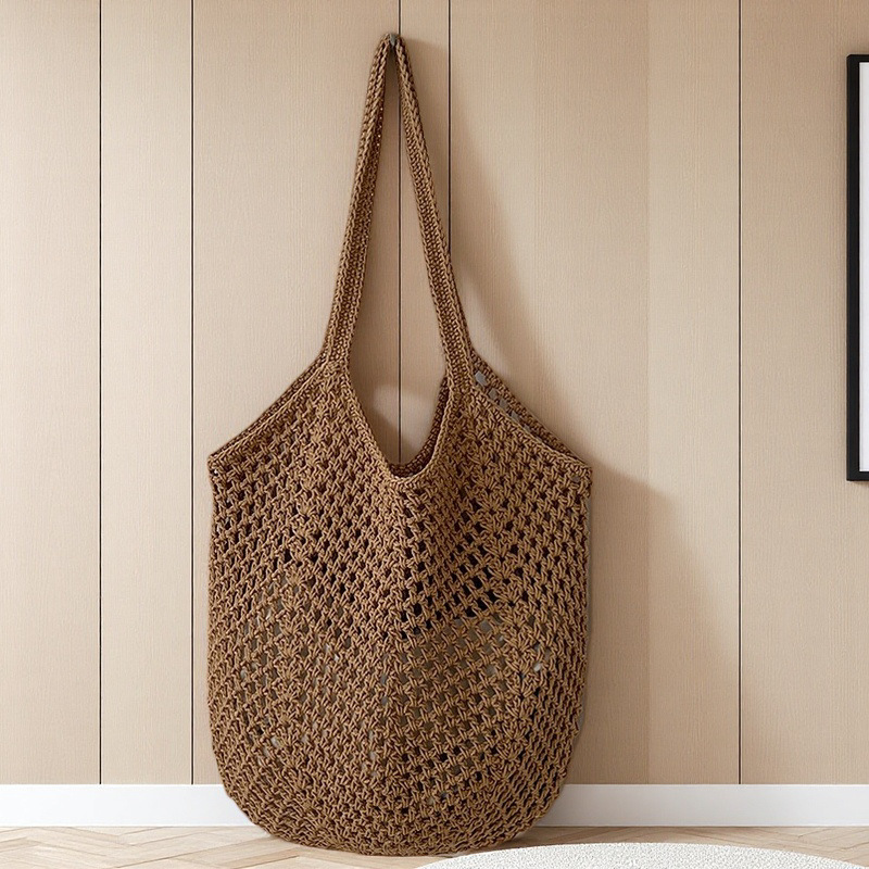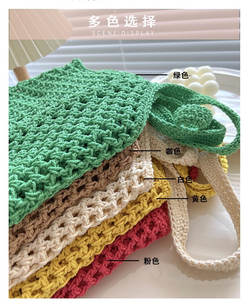 캐주얼 대용량 면직물 가방, 새로운 중공 밀짚 가방, 게으른 스타일 숄더백, 휴가 해변 가방, 여성용 가방스토어 가기