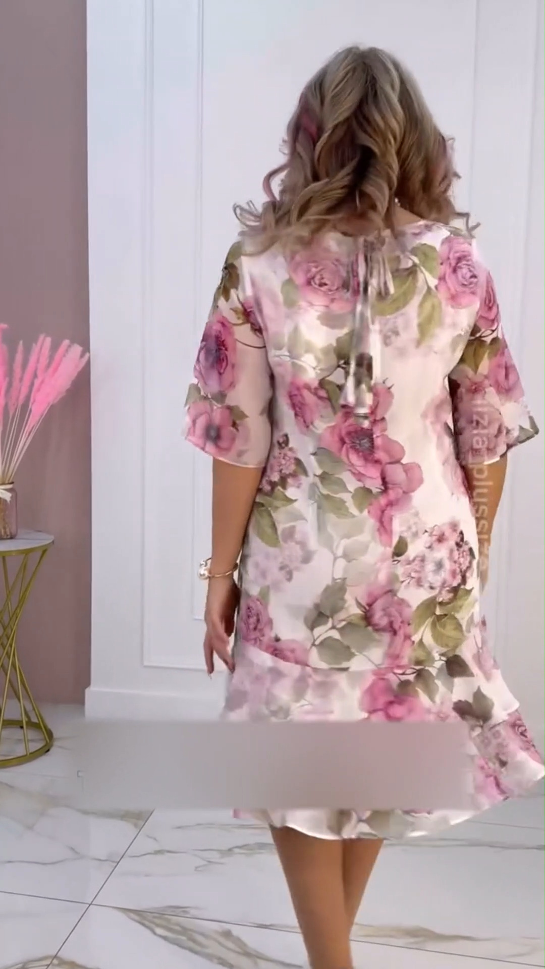 아마존 크로스보더 여름 여성 스커트 루즈한 플라워 패턴 캐주얼 라운드 넥 반팔 드레스 핫 스타일스토어 가기