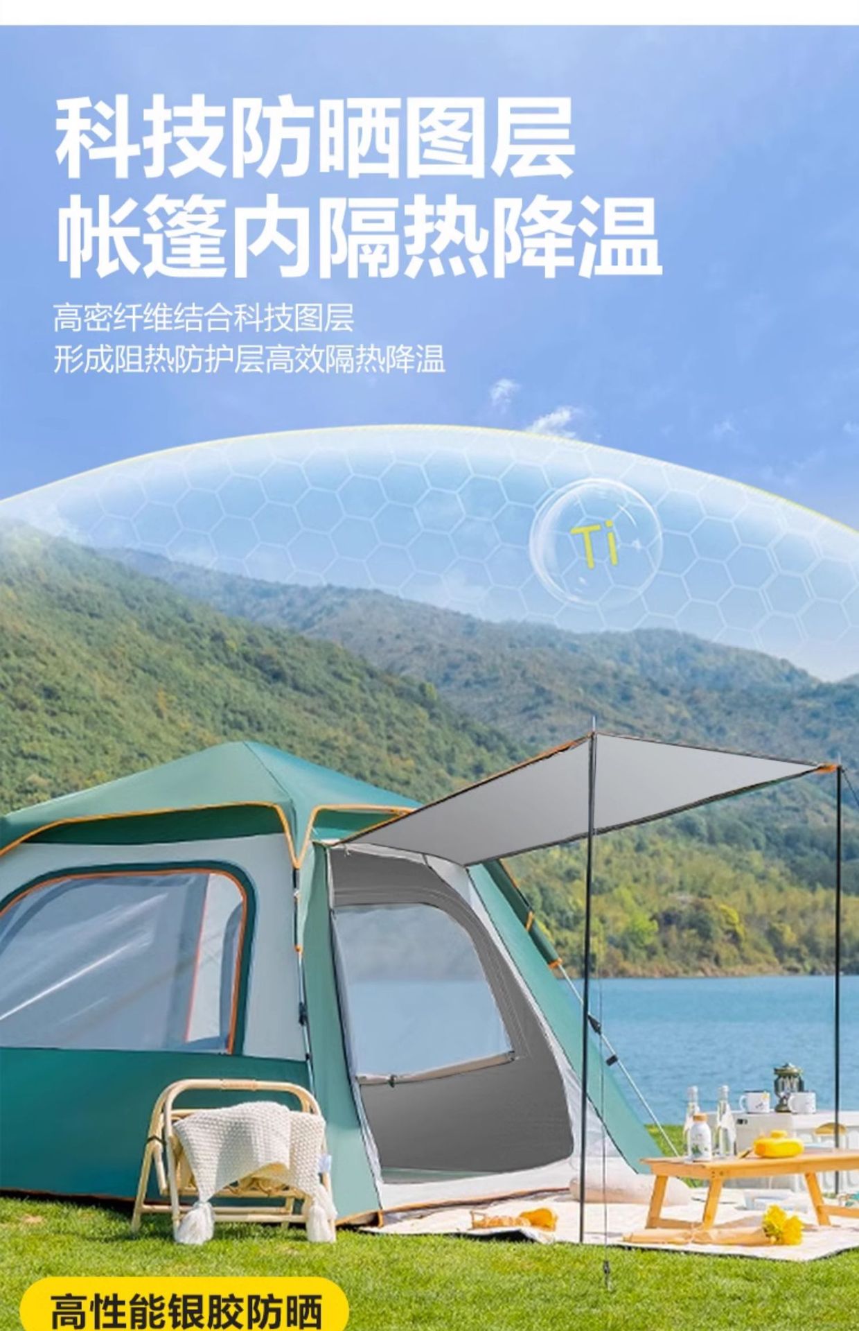 • 짙은 녹색 은색 접착제 자외선 차단 텐트