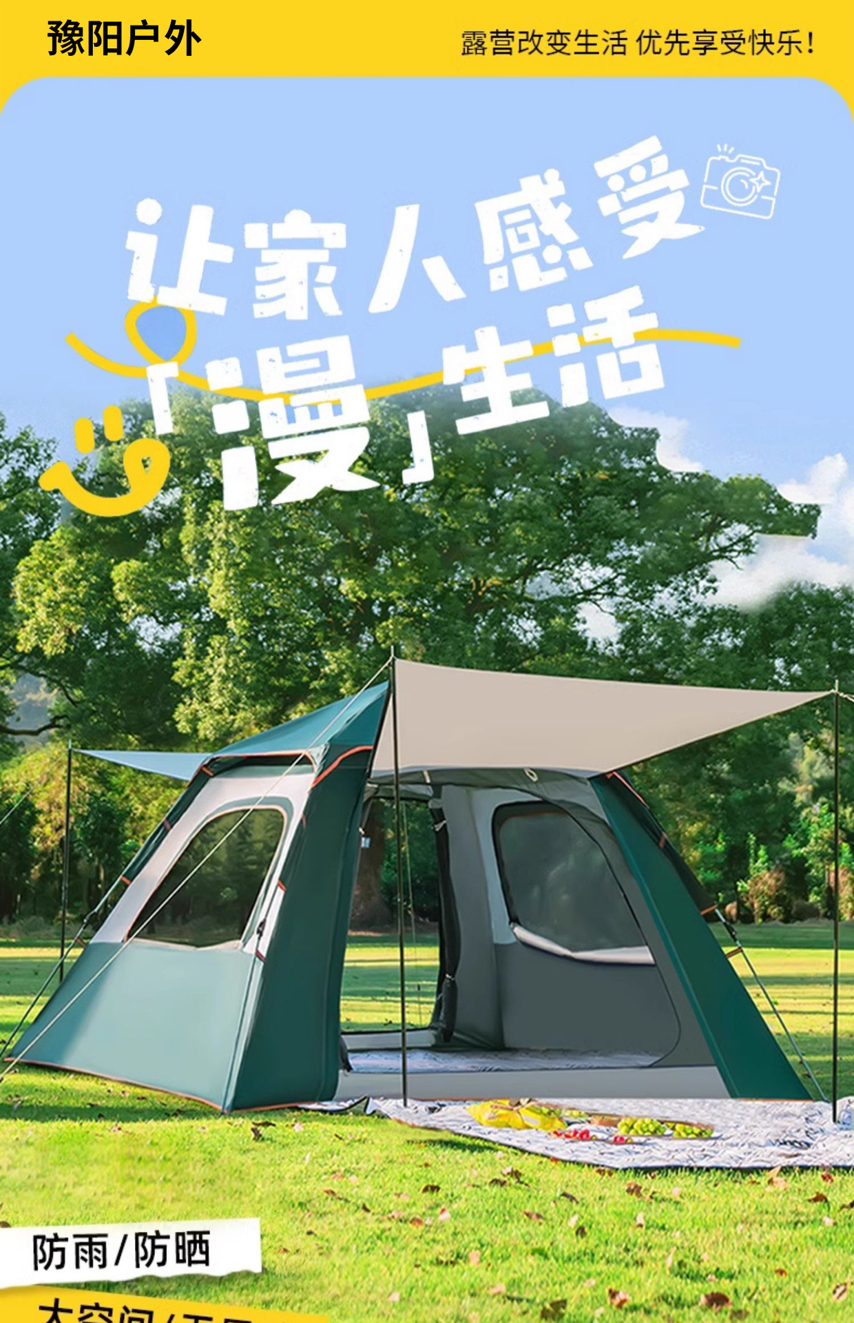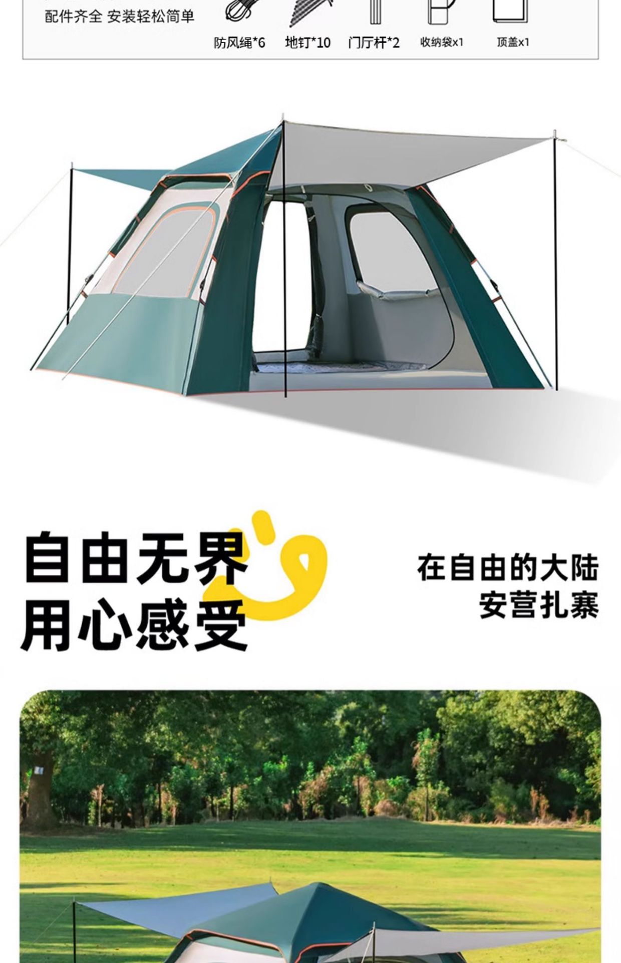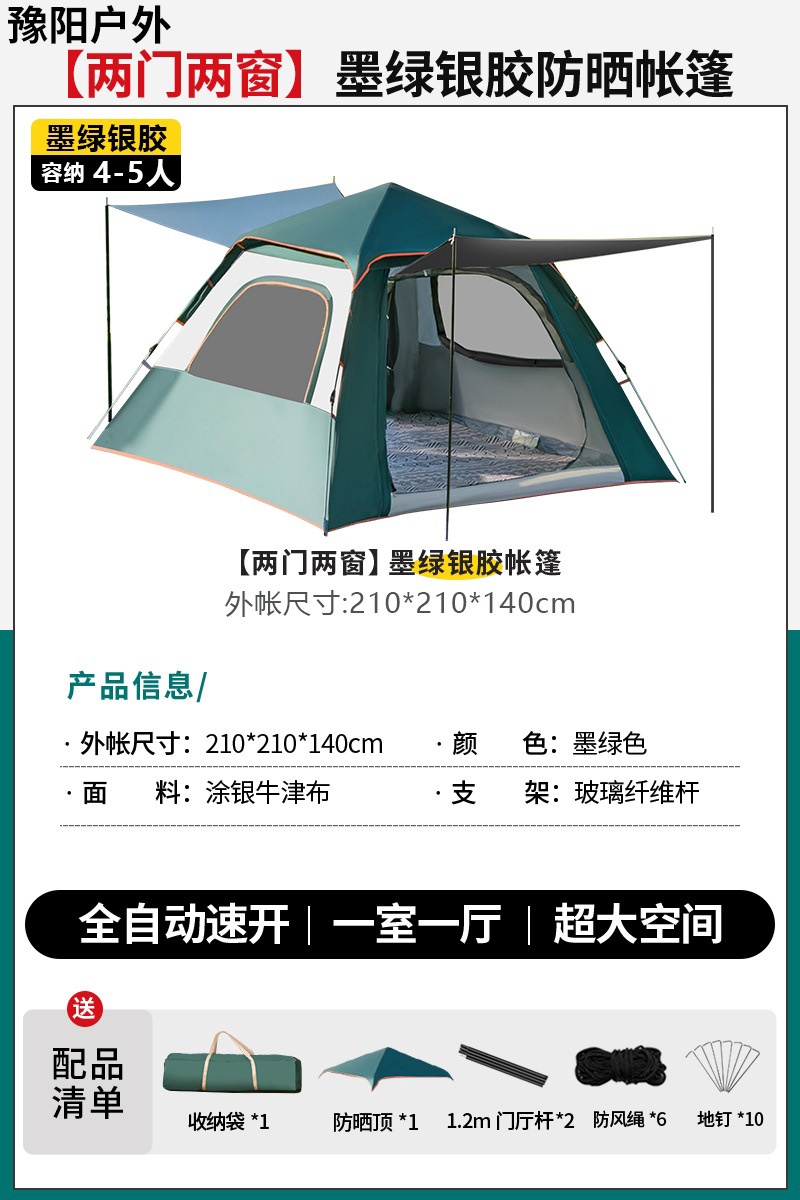 텐트 야외 휴대용 캠핑 하룻밤 방비 선 스크린 두꺼운 자동 빠른 개방 캠핑 전체 세트 야외 장비스토어 가기