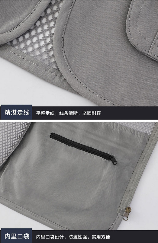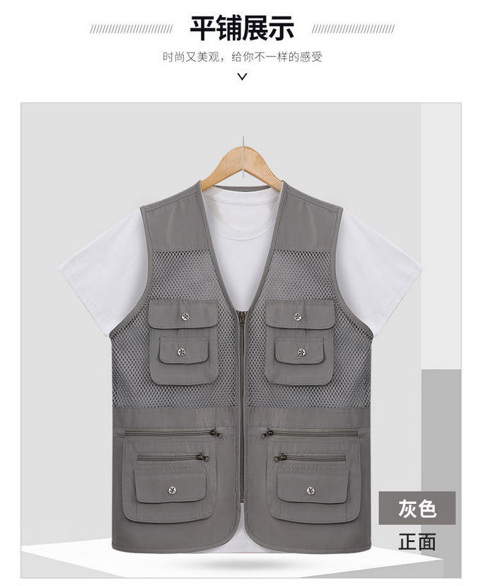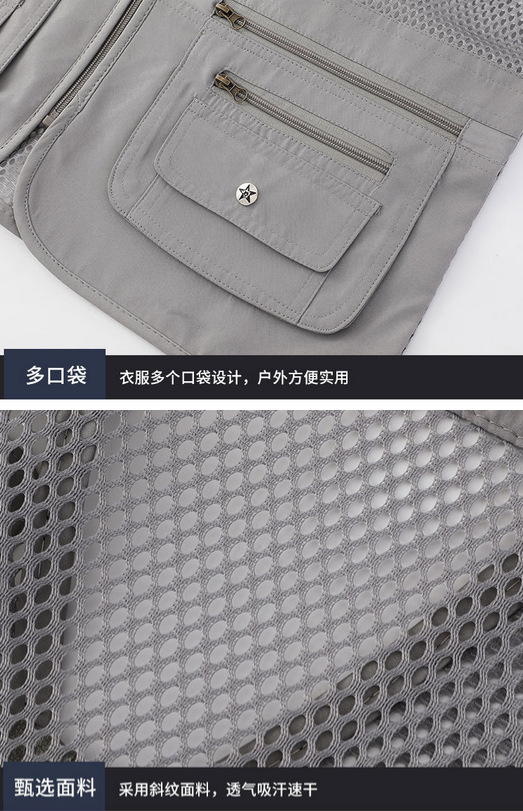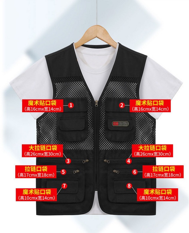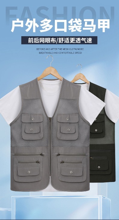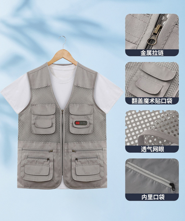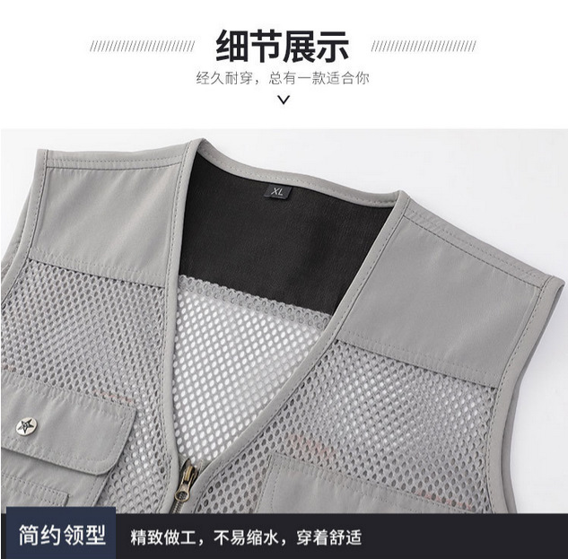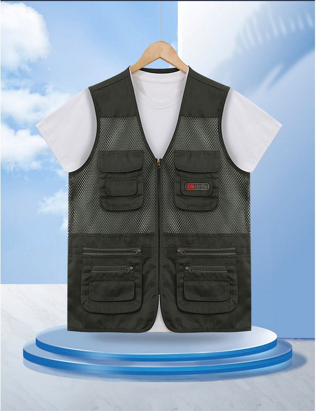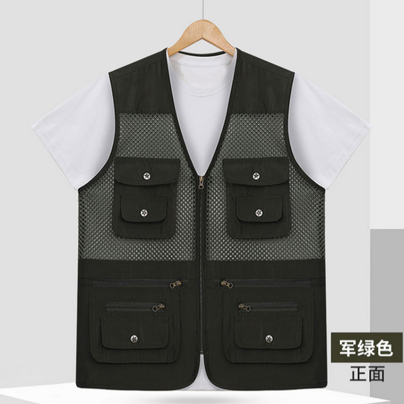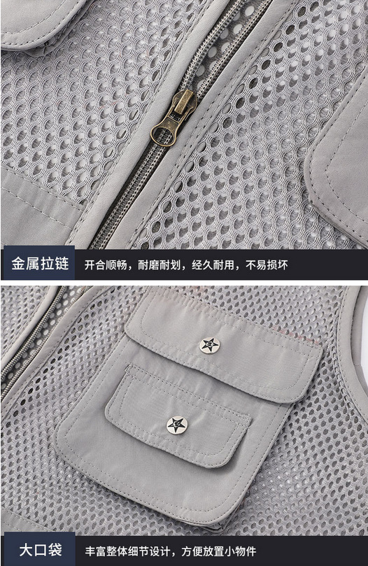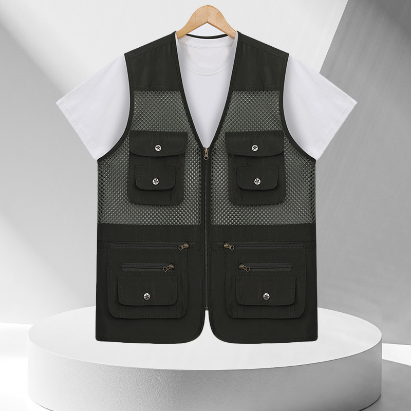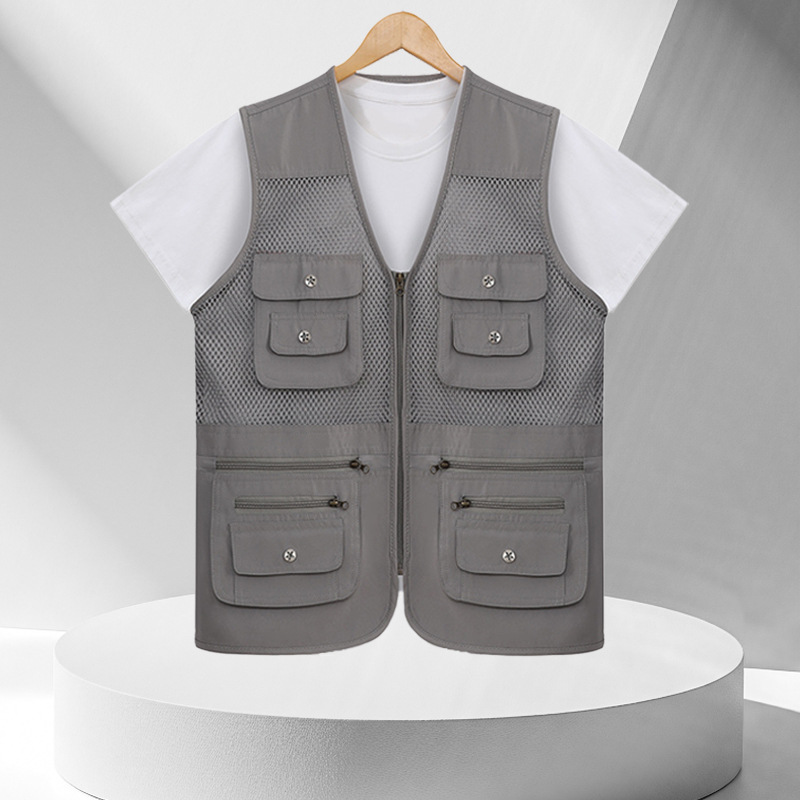 중년 및 노인 남성 캐주얼 야외 멀티 포켓 디자인 작업복 사진 조끼 메쉬 원단 낚시 및 등산 조끼