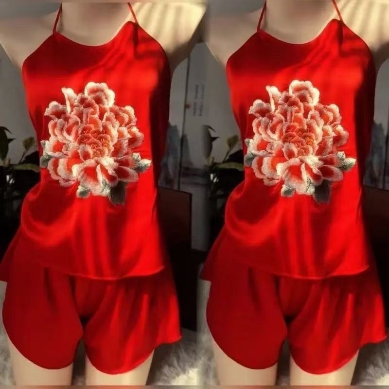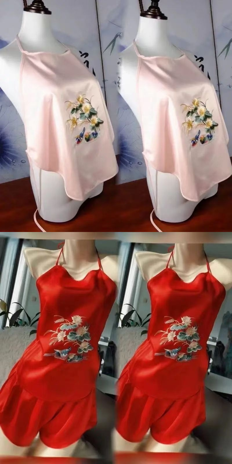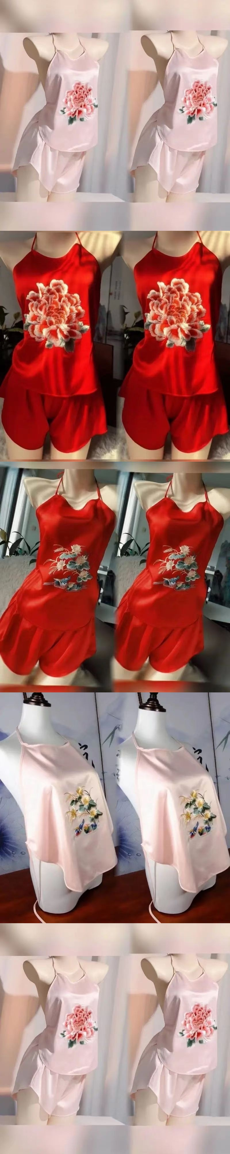 자수 수 자수 배꼽 스트랩 세트 복고풍 중국 성인 실크 얼음 실크 수 놓은 골동품 섹시한 속옷 서스펜더 잠옷