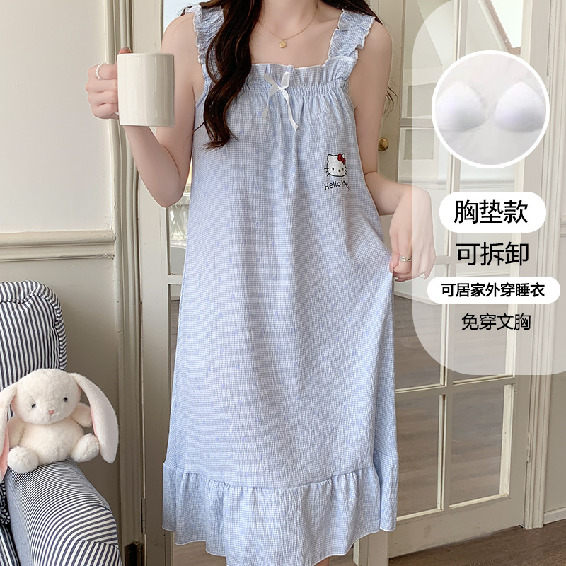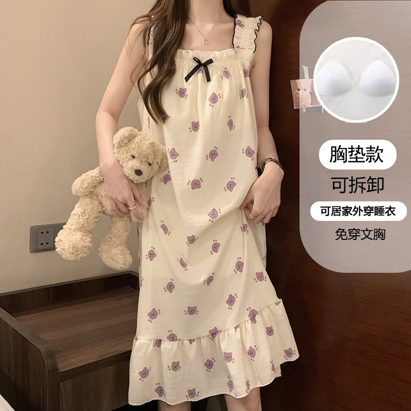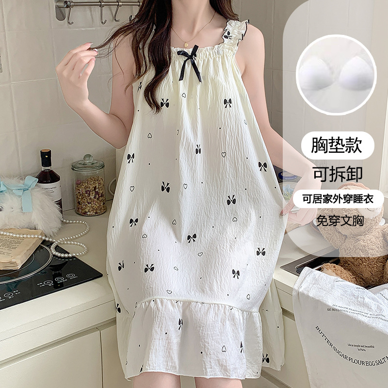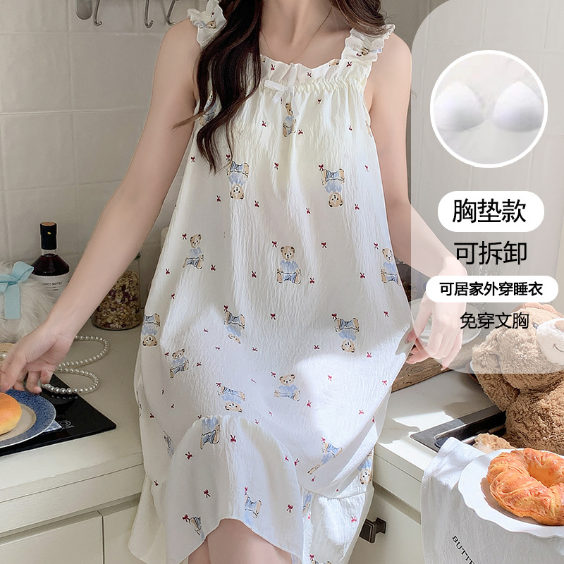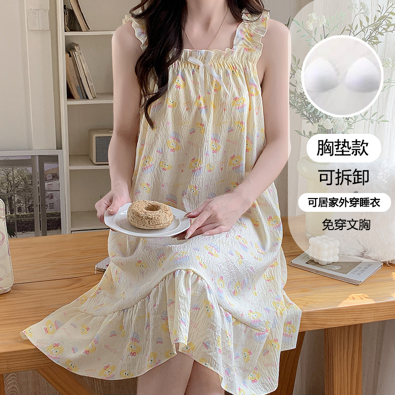 여성용 잠옷 여름 서스펜더 새로운 스타일 공주 스타일 가벼운 럭셔리 순수한 욕망 달콤한 레이스 가슴 패드 포함 간단한 가정복 106스토어 가기