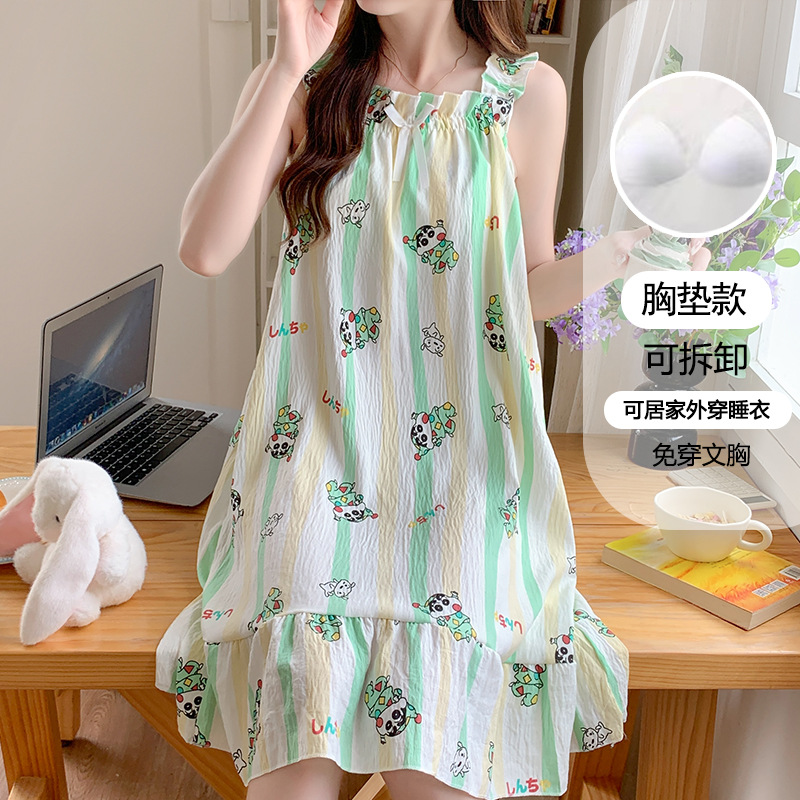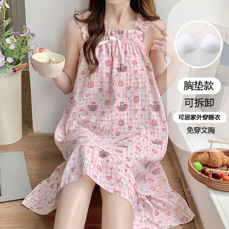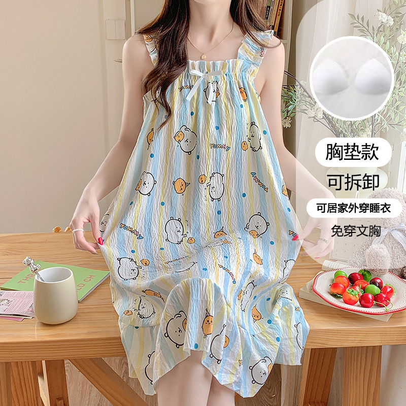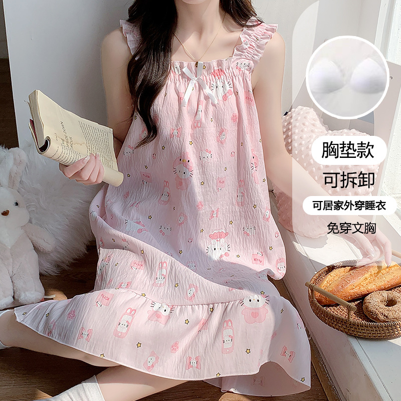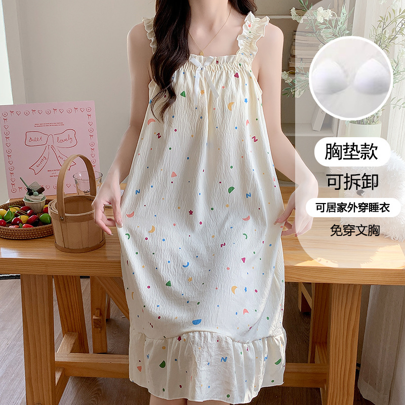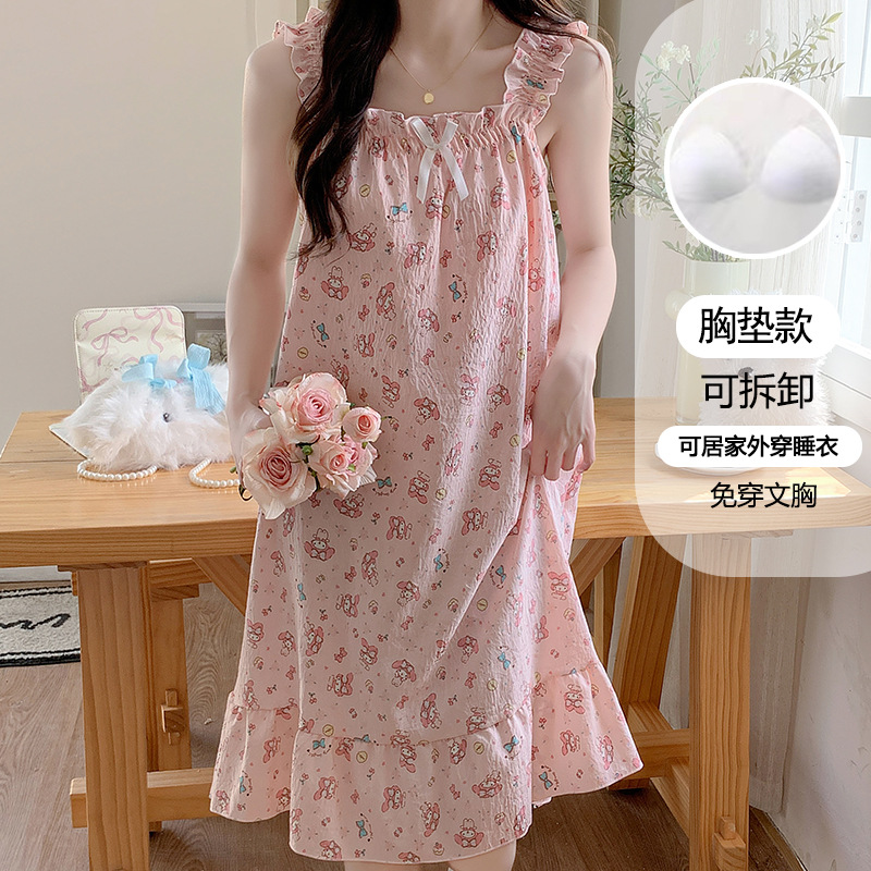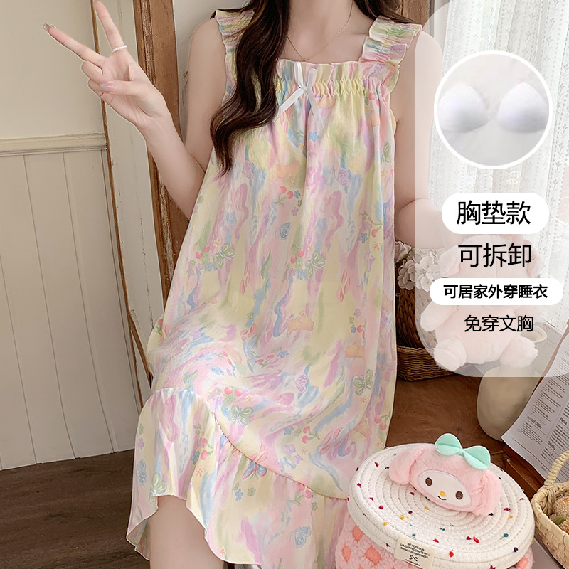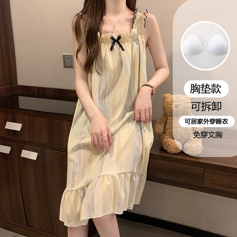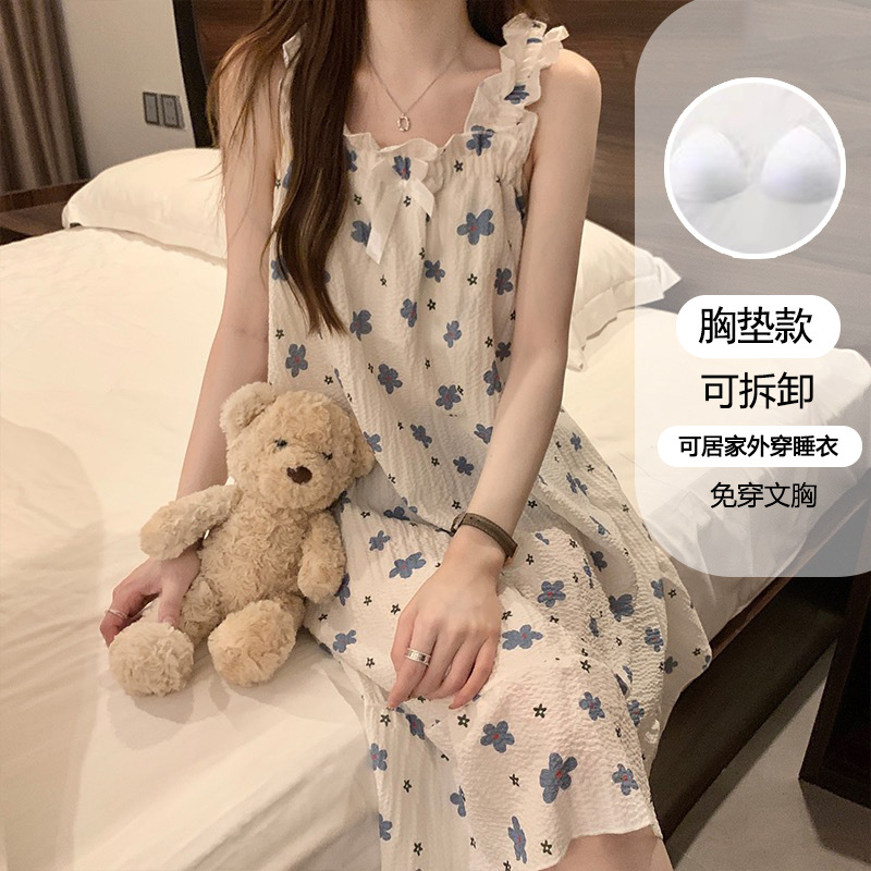 여성용 잠옷 여름 서스펜더 새로운 스타일 공주 스타일 가벼운 럭셔리 순수한 욕망 달콤한 레이스 가슴 패드 포함 간단한 가정복 106