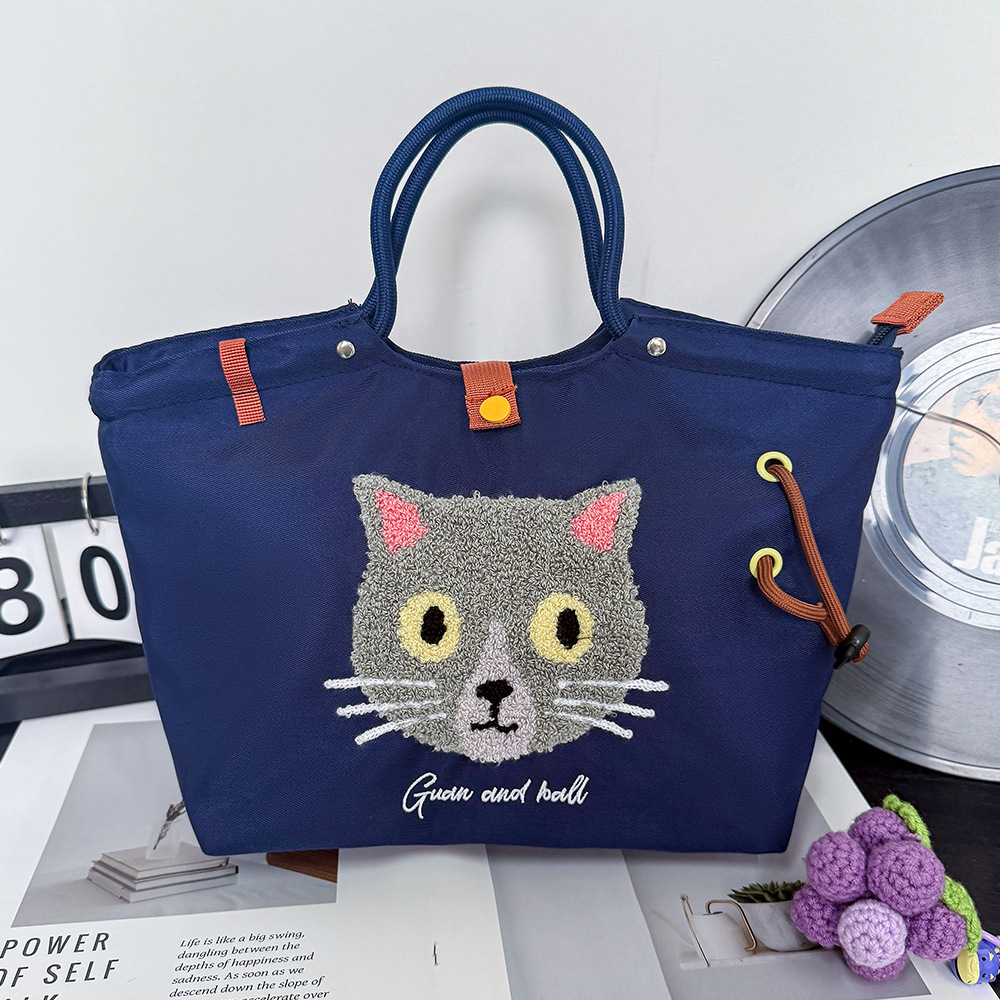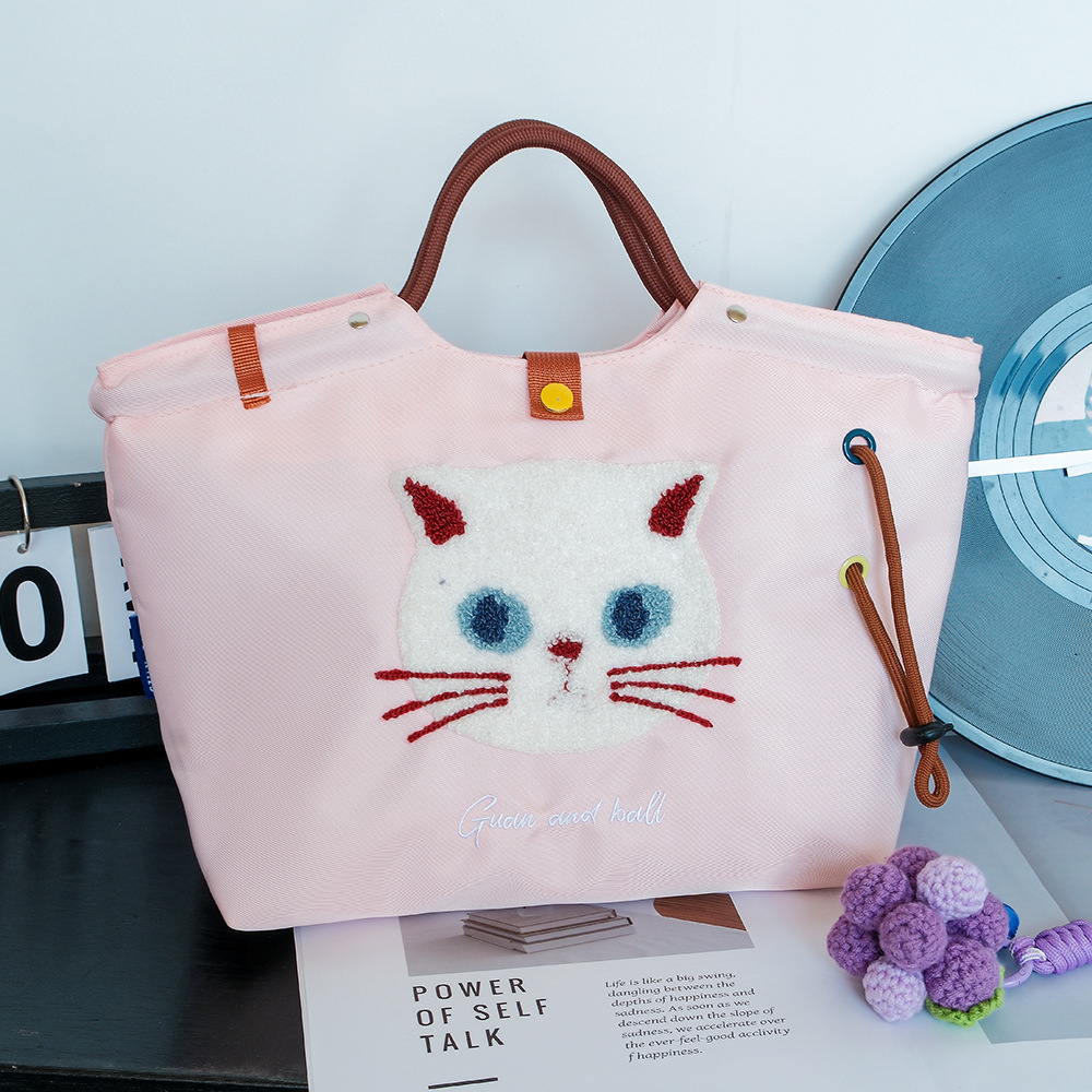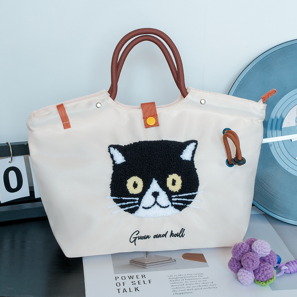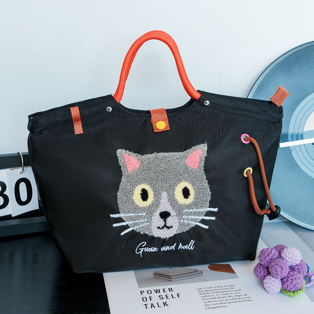 일본식 캐주얼 외출 및 통근 다용도 핸드백, 귀엽고 귀여운 봉제 고양이 대용량 휴대용 나일론 가방스토어 가기