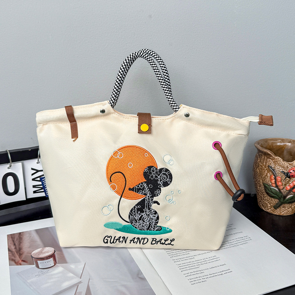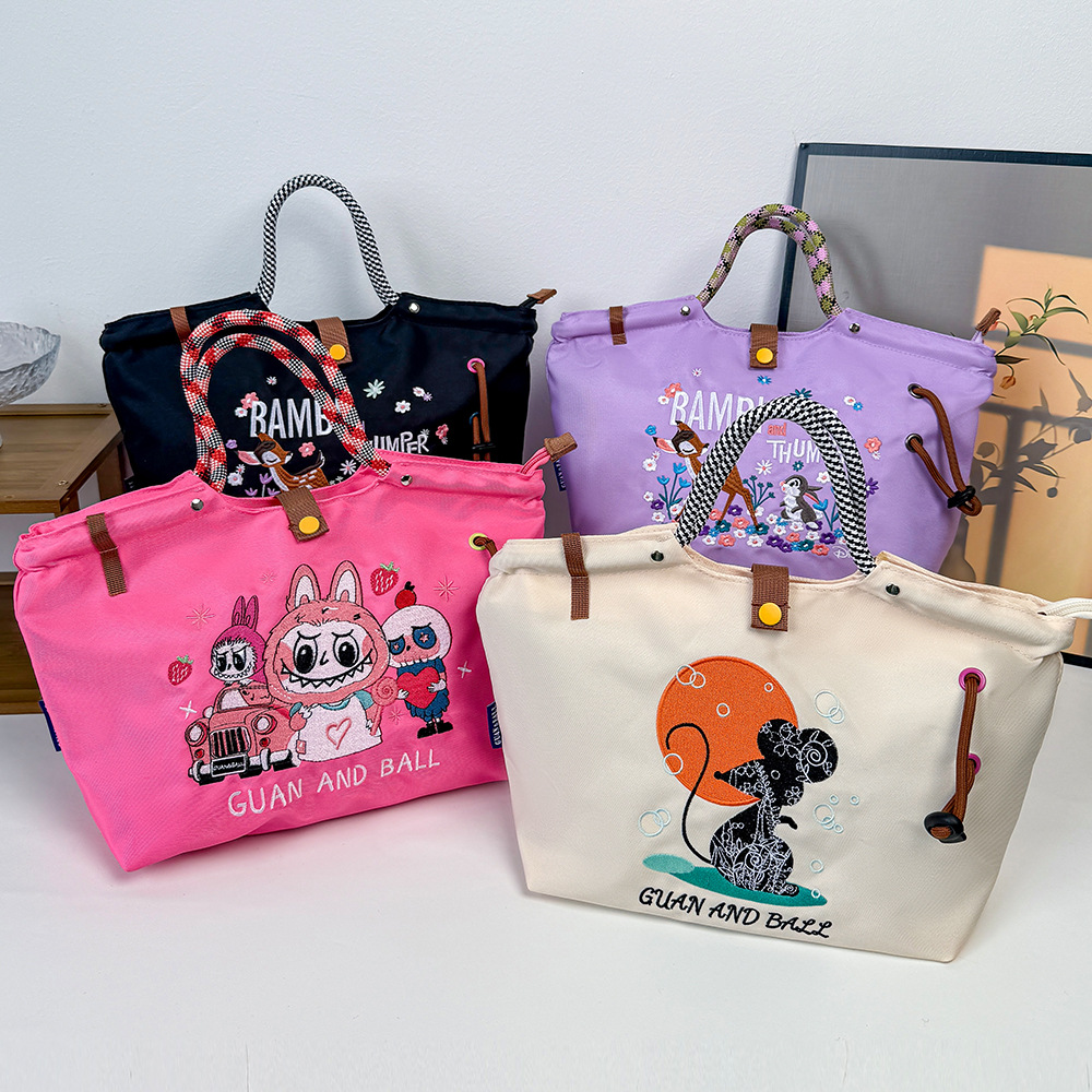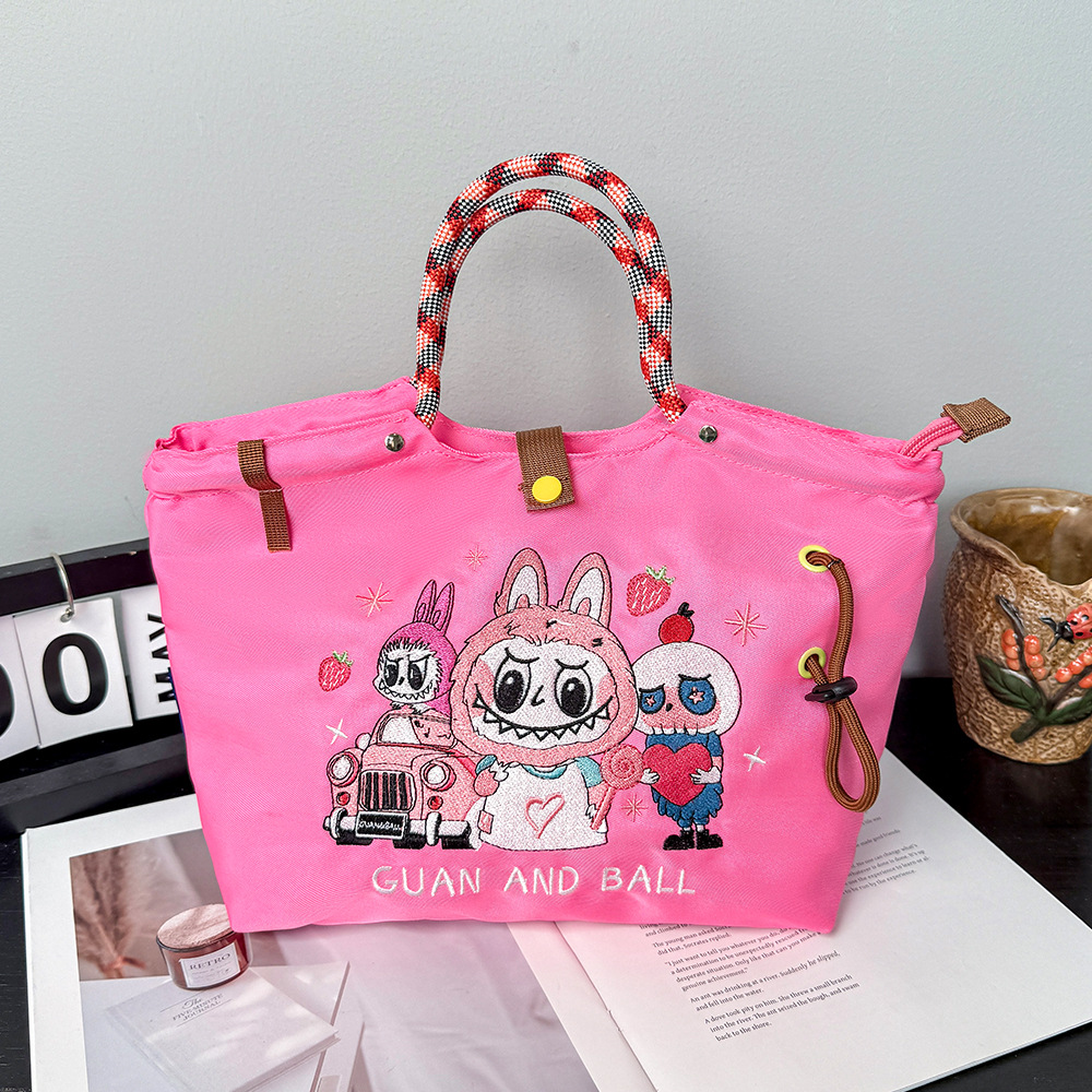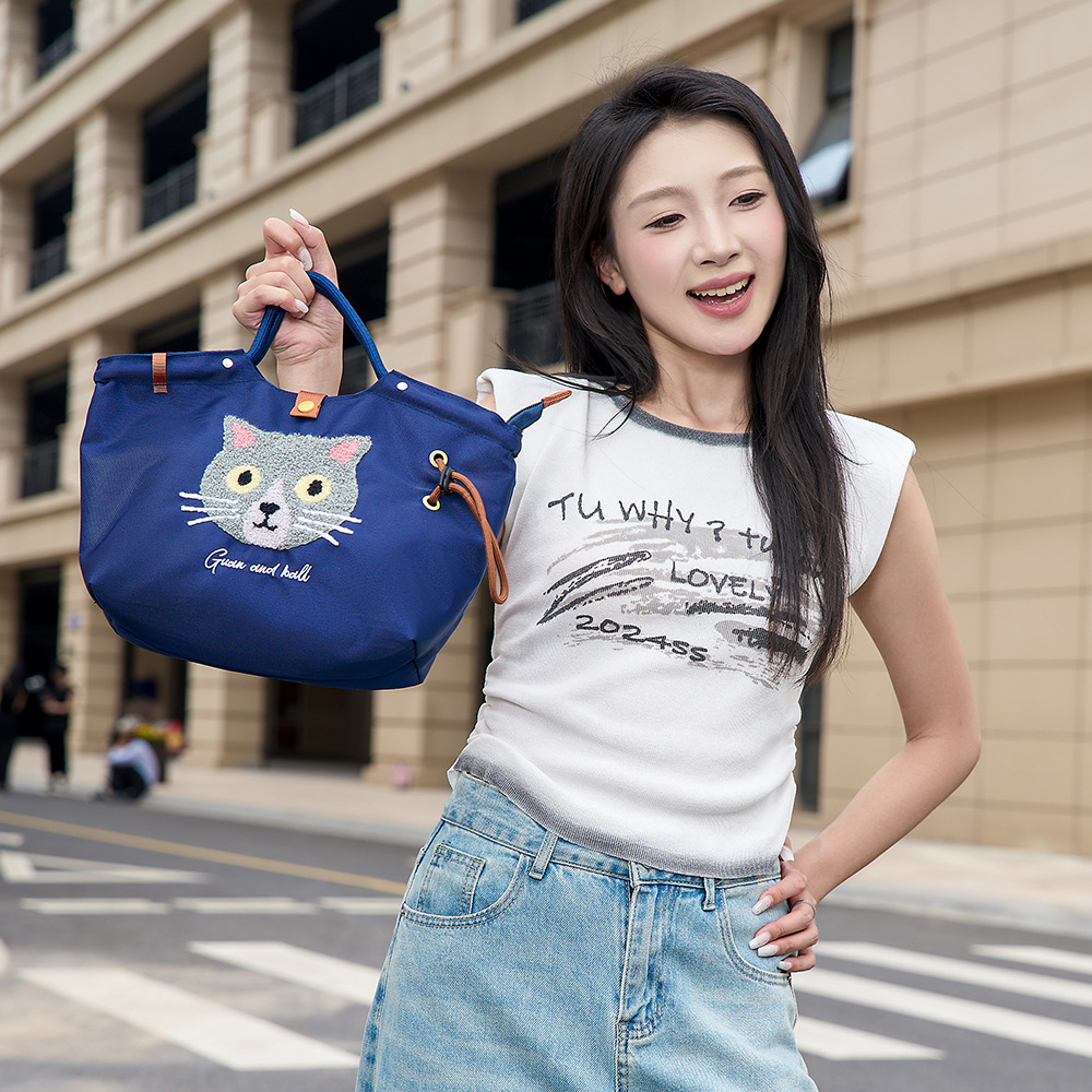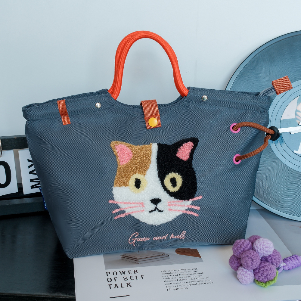 일본식 캐주얼 외출 및 통근 다용도 핸드백, 귀엽고 귀여운 봉제 고양이 대용량 휴대용 나일론 가방스토어 가기
