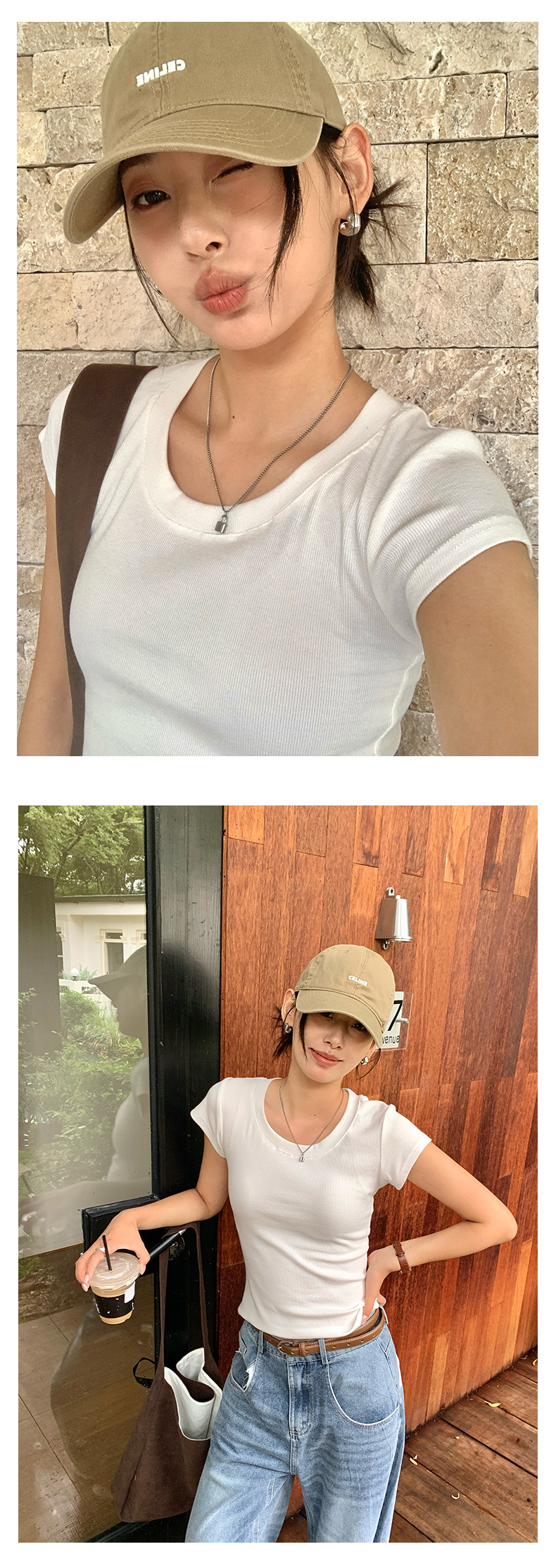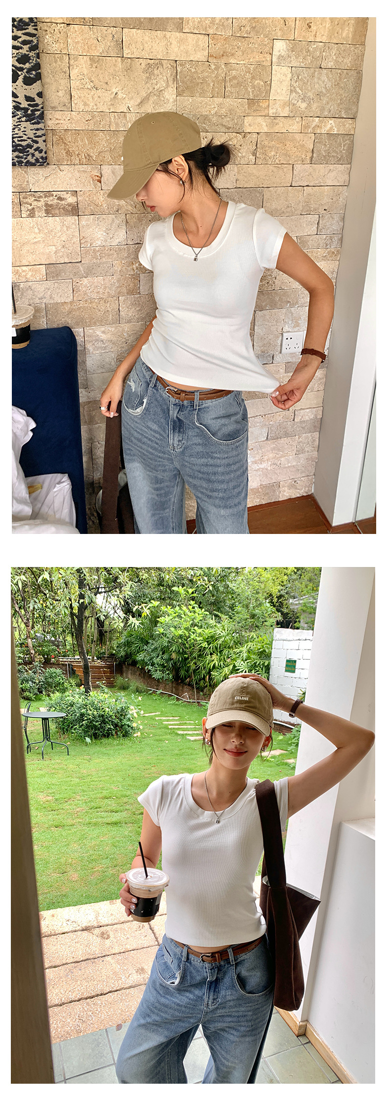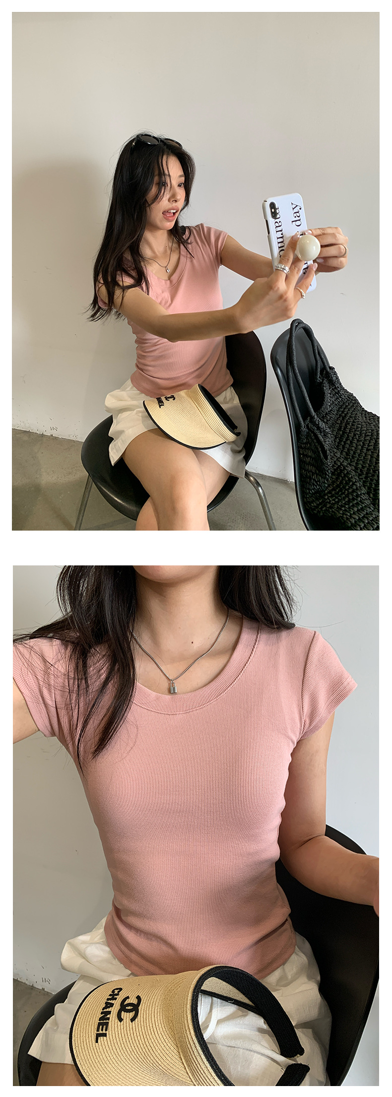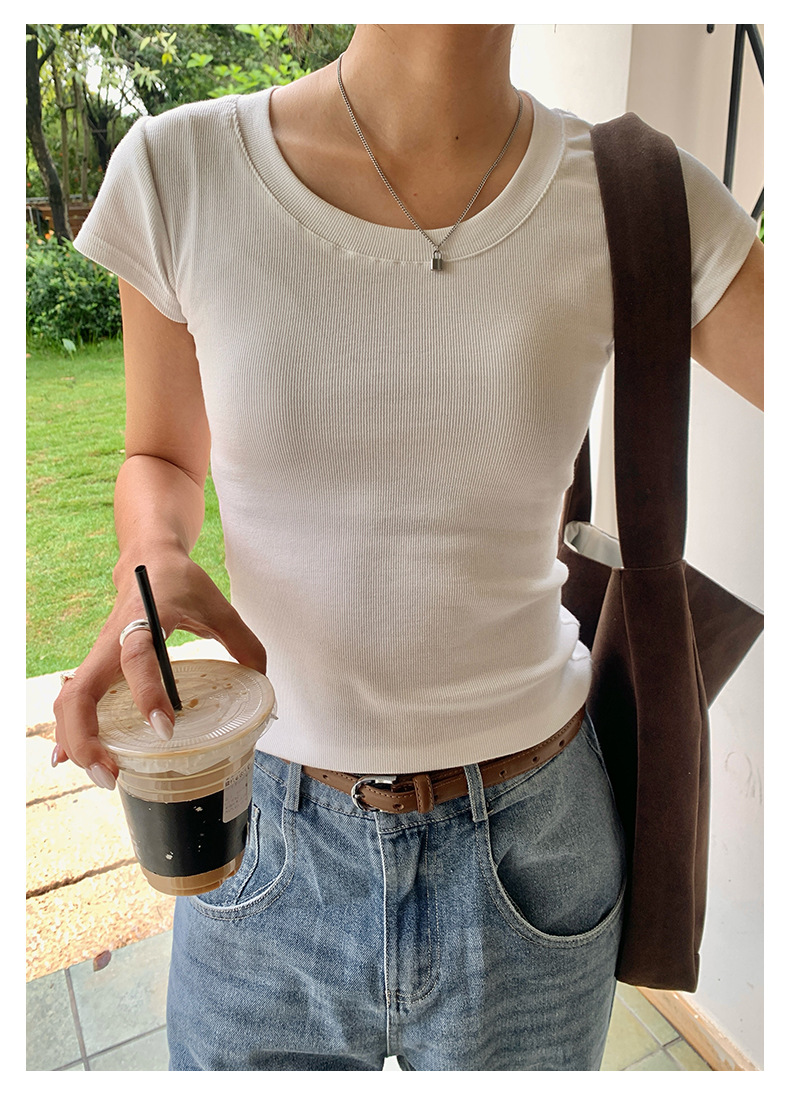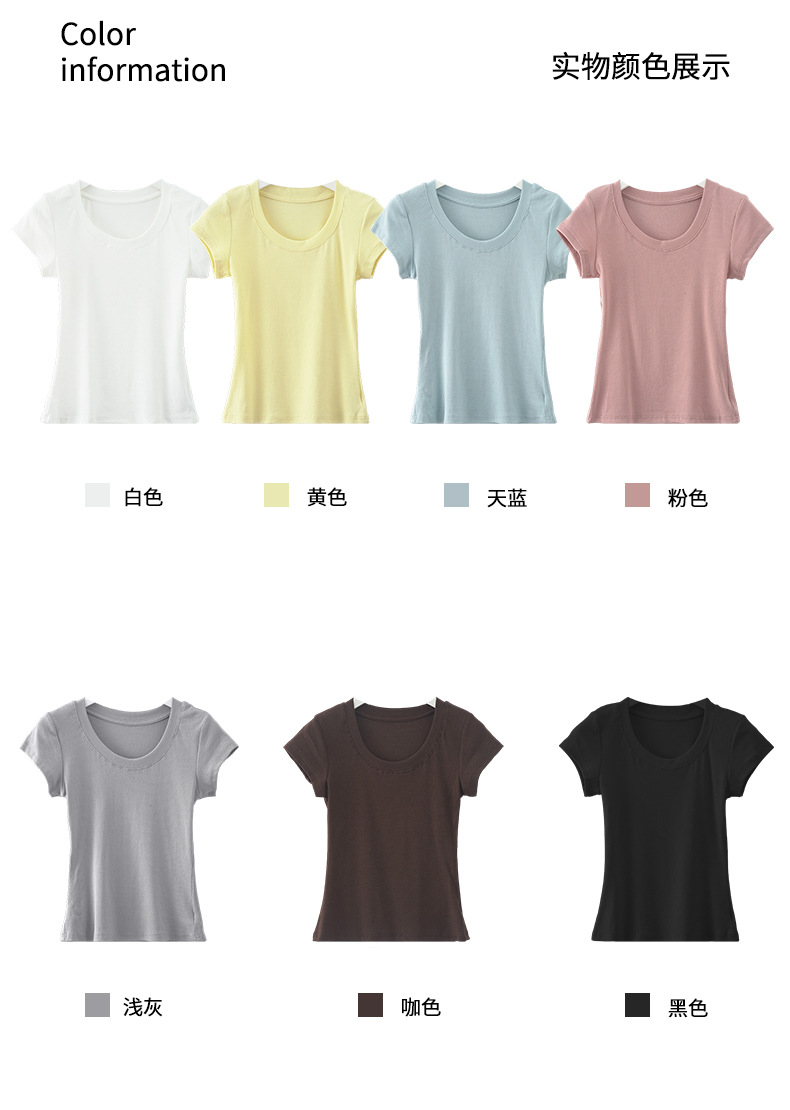 Huang Zheng 2025 새로운 허리 파인 알몸 티셔츠 짧은 소매 모든 경기 디자인 센스베이스 셔츠 U 넥 슬림 핏 탑 520496스토어 가기