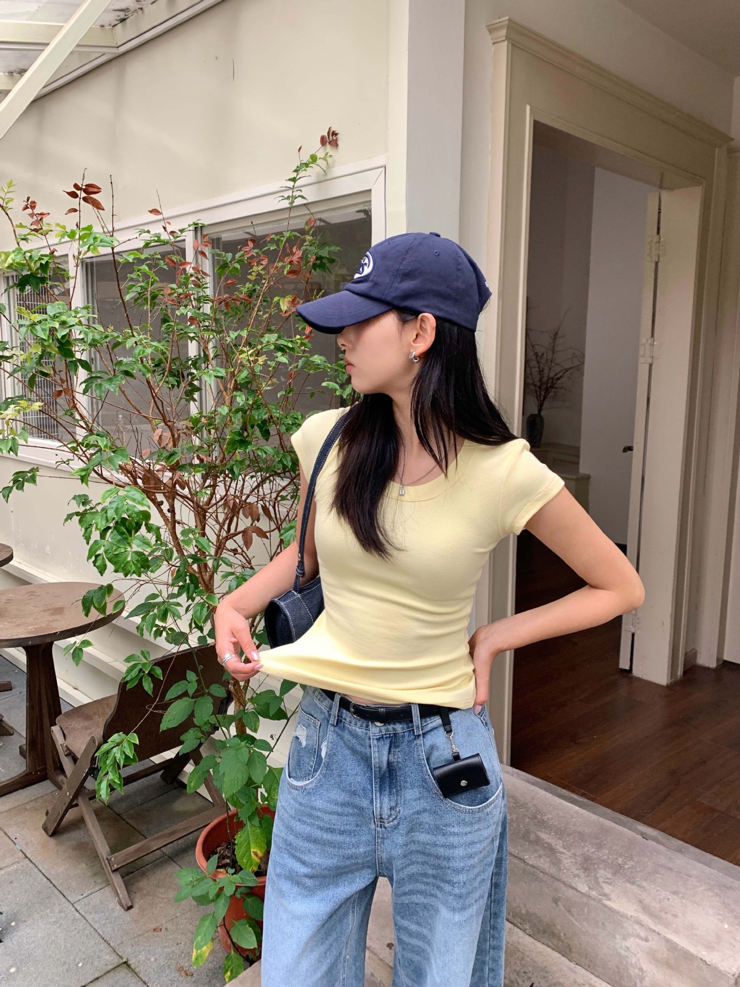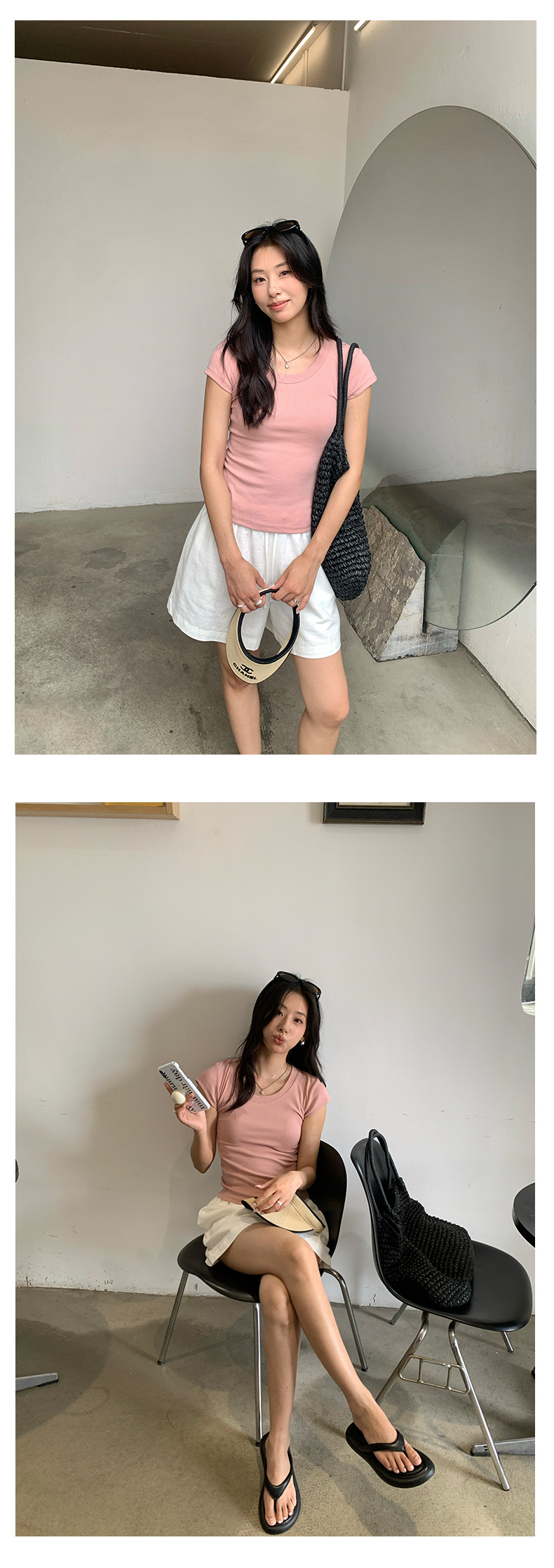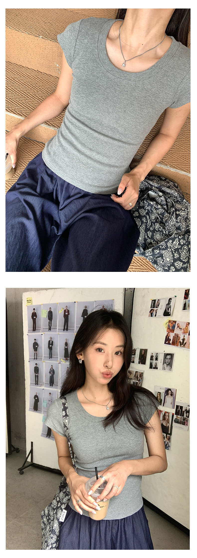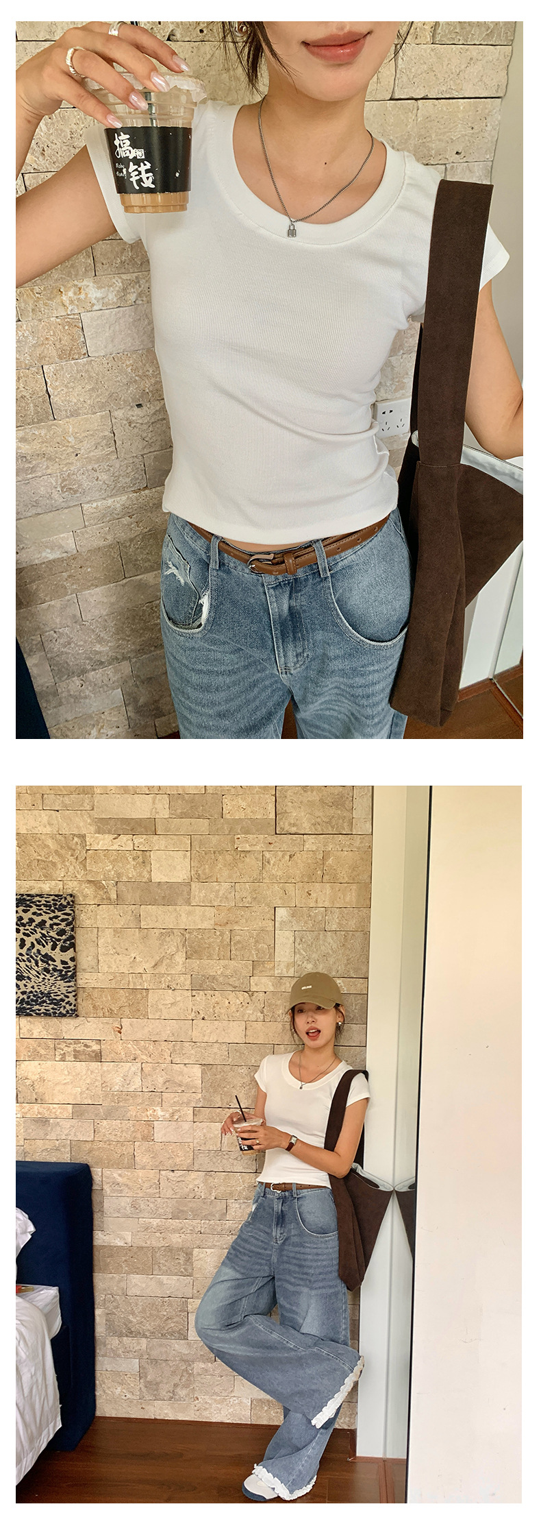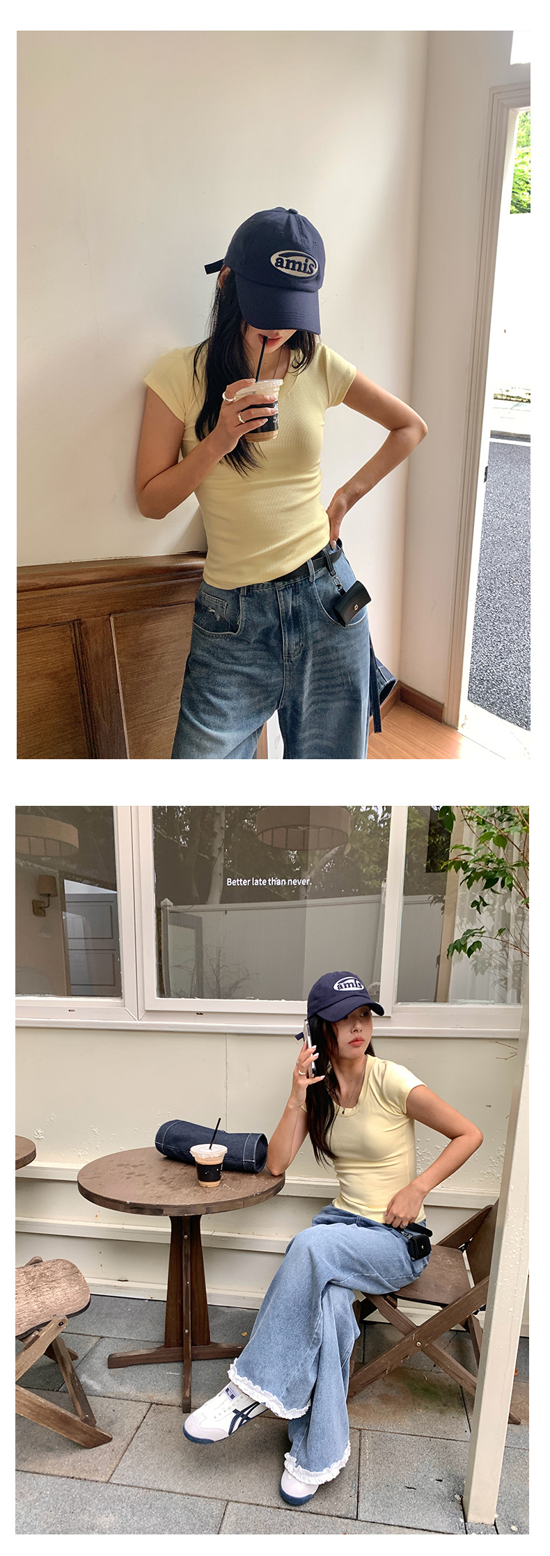 Huang Zheng 2025 새로운 허리 파인 알몸 티셔츠 짧은 소매 모든 경기 디자인 센스베이스 셔츠 U 넥 슬림 핏 탑 520496스토어 가기