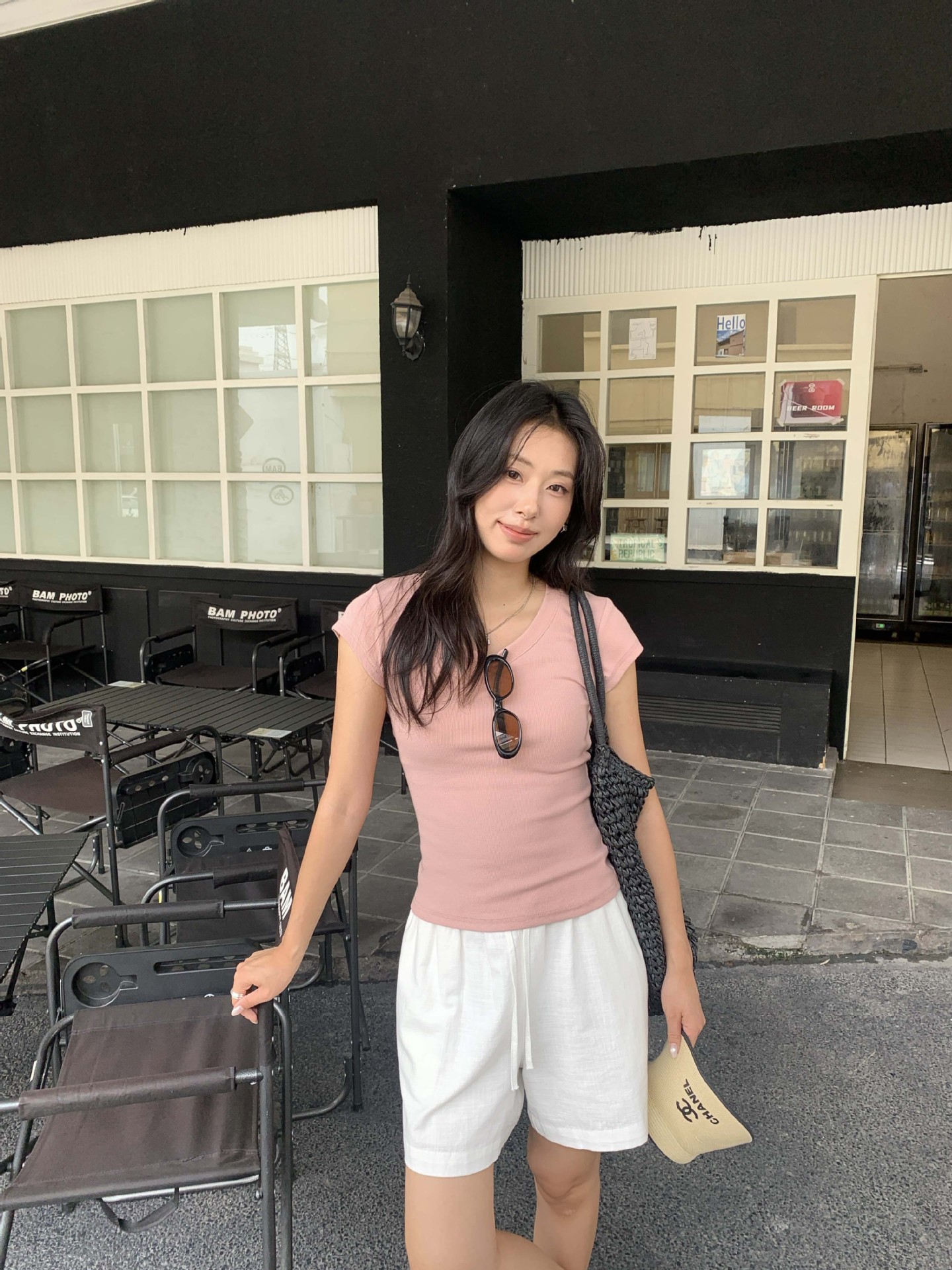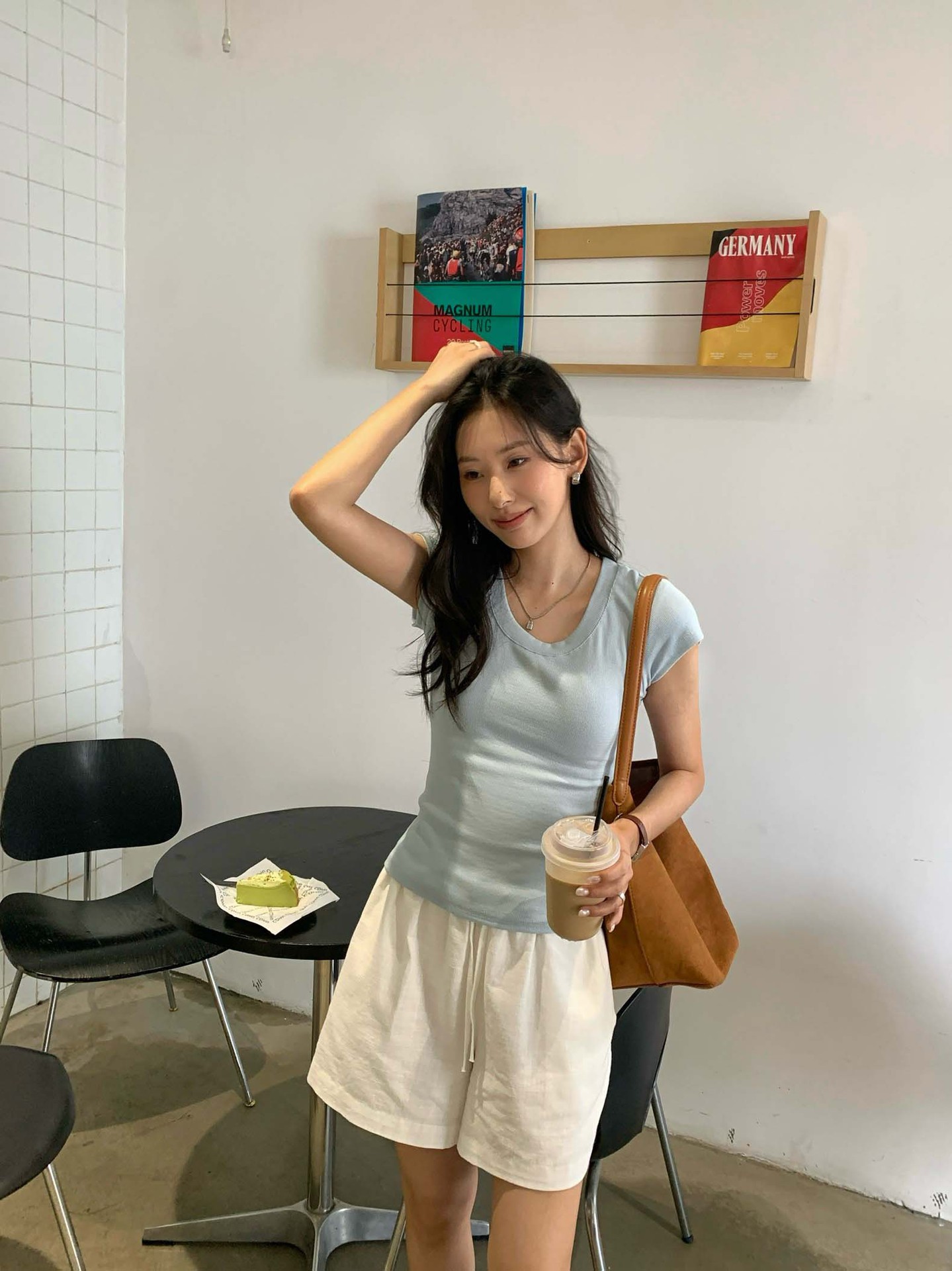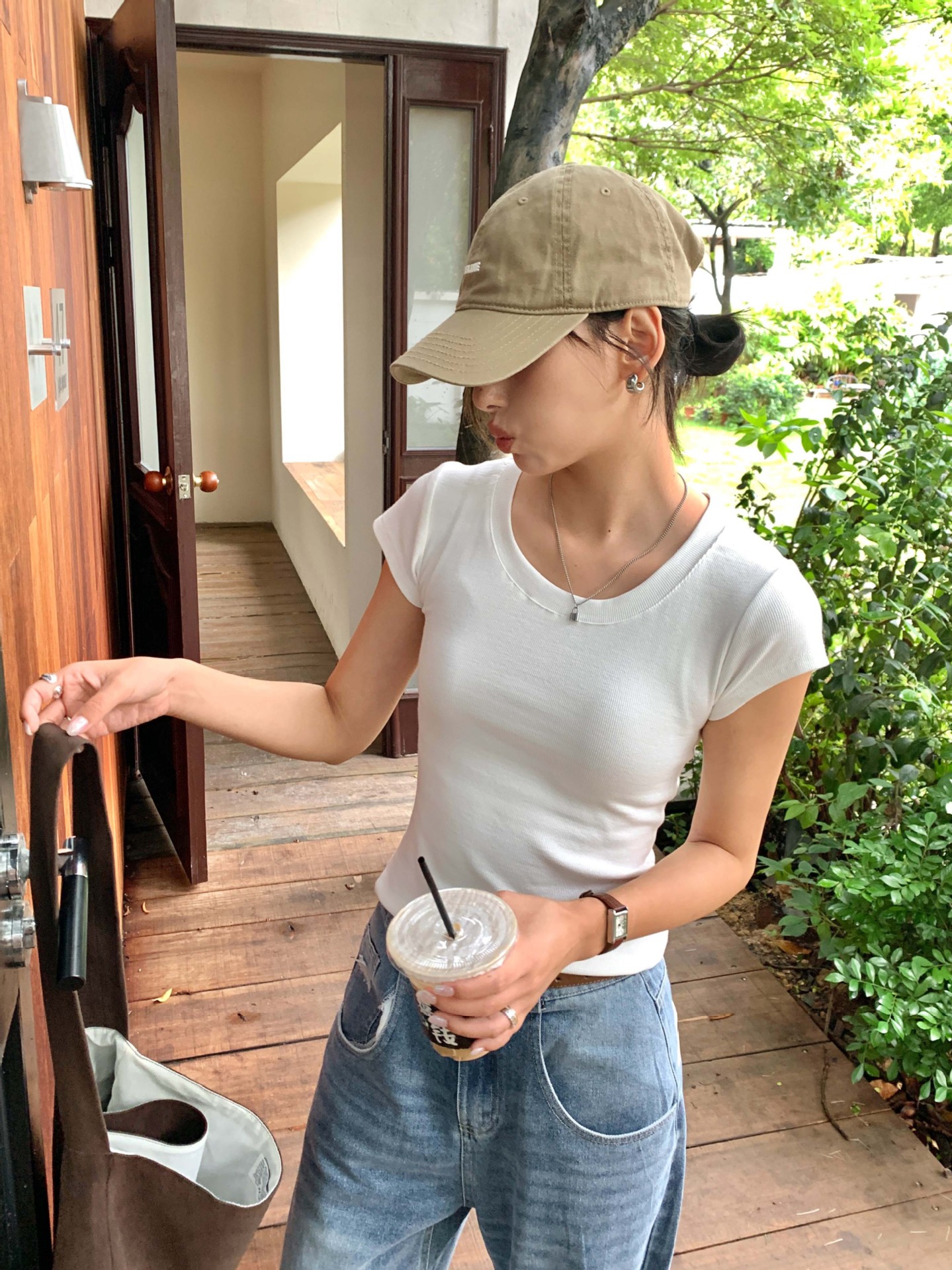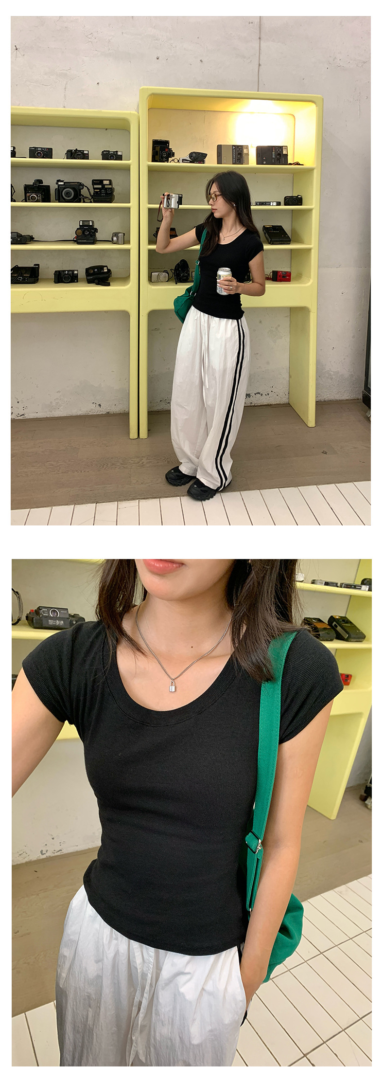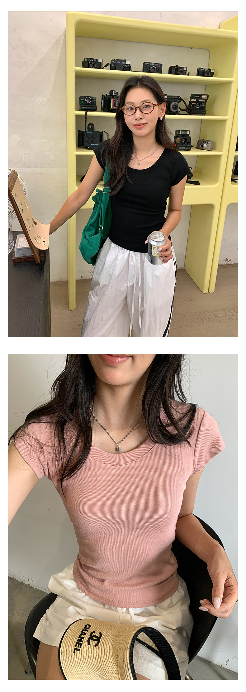 Huang Zheng 2025 새로운 허리 파인 알몸 티셔츠 짧은 소매 모든 경기 디자인 센스베이스 셔츠 U 넥 슬림 핏 탑 520496스토어 가기
