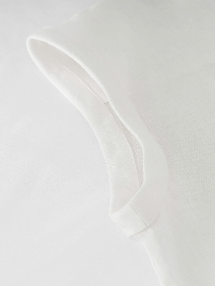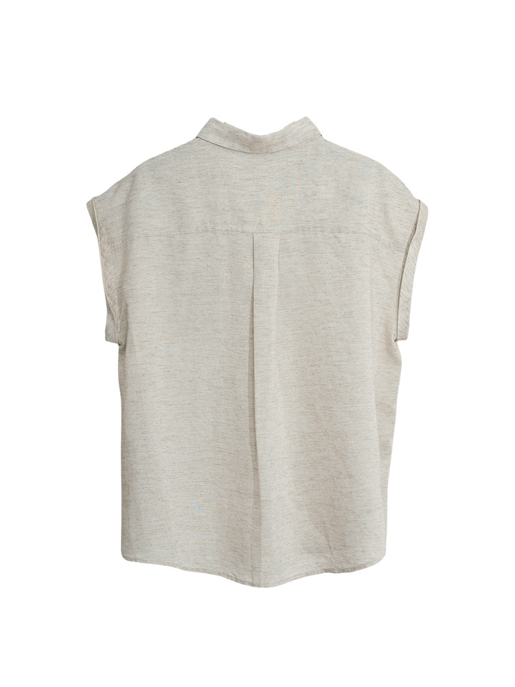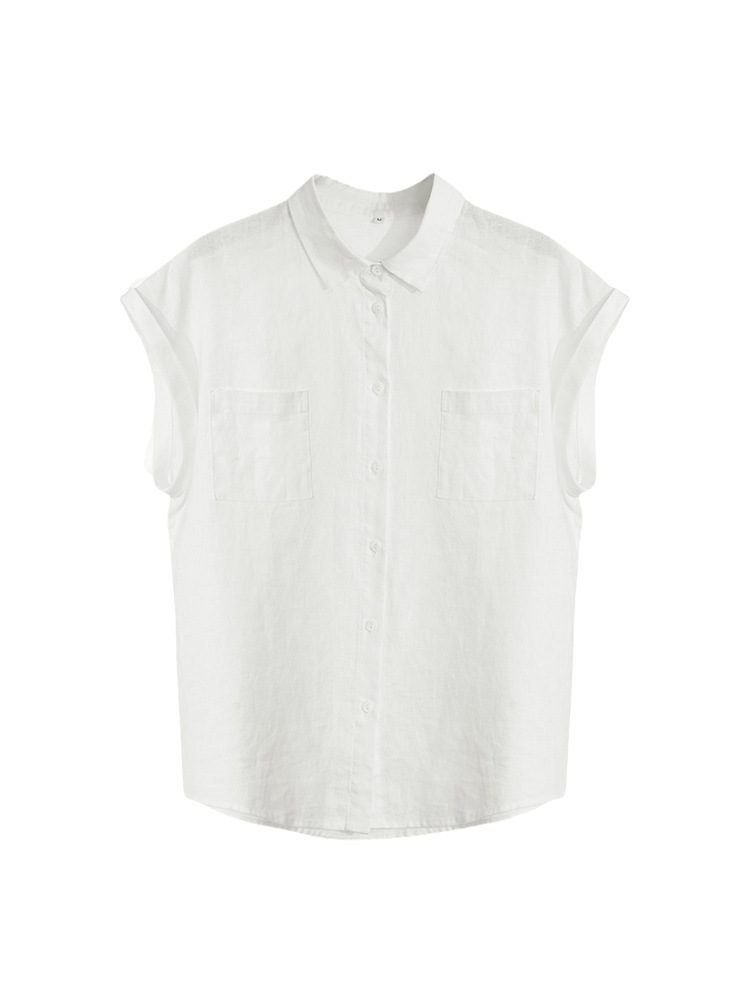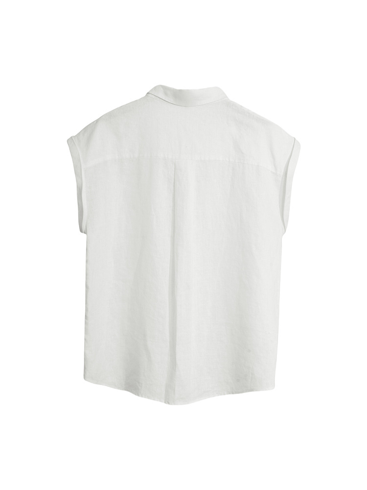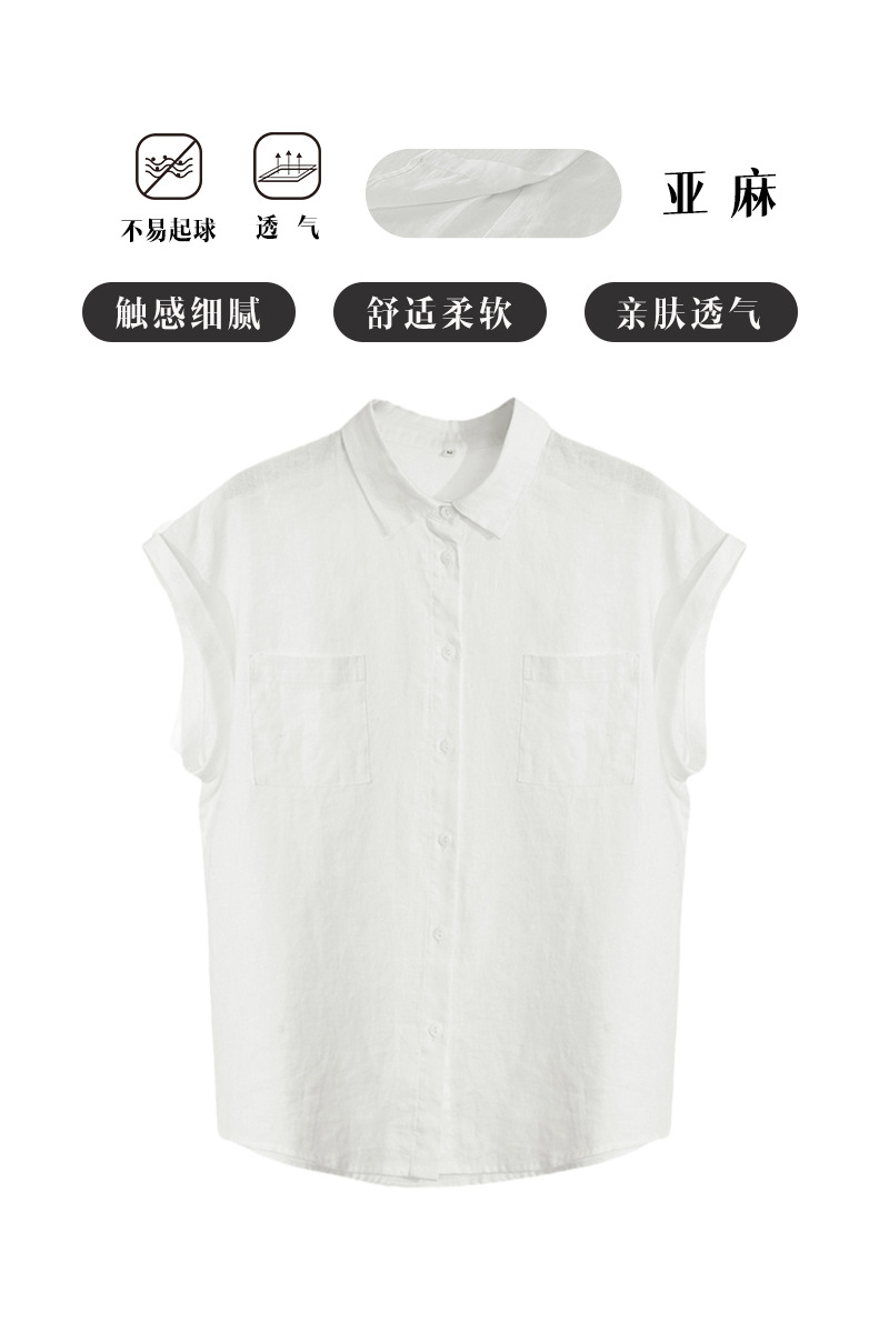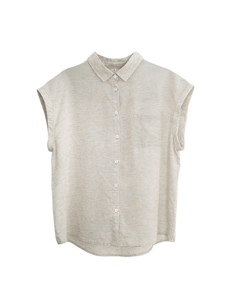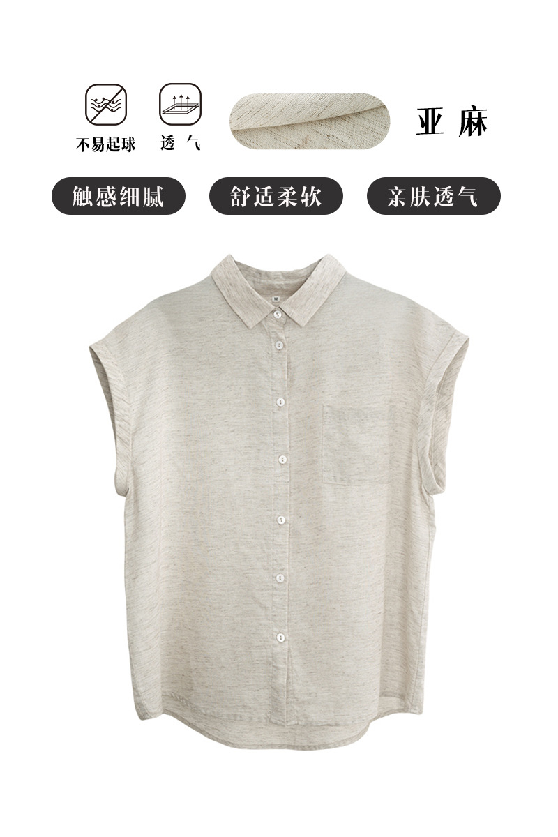 여성을 위한 하이엔드 린넨 민소매 셔츠, 여름 디자인, 가벼운 럭셔리, 틈새 플라잉 슬리브, 예술적 복고풍 루즈 라펠 셔츠스토어 가기