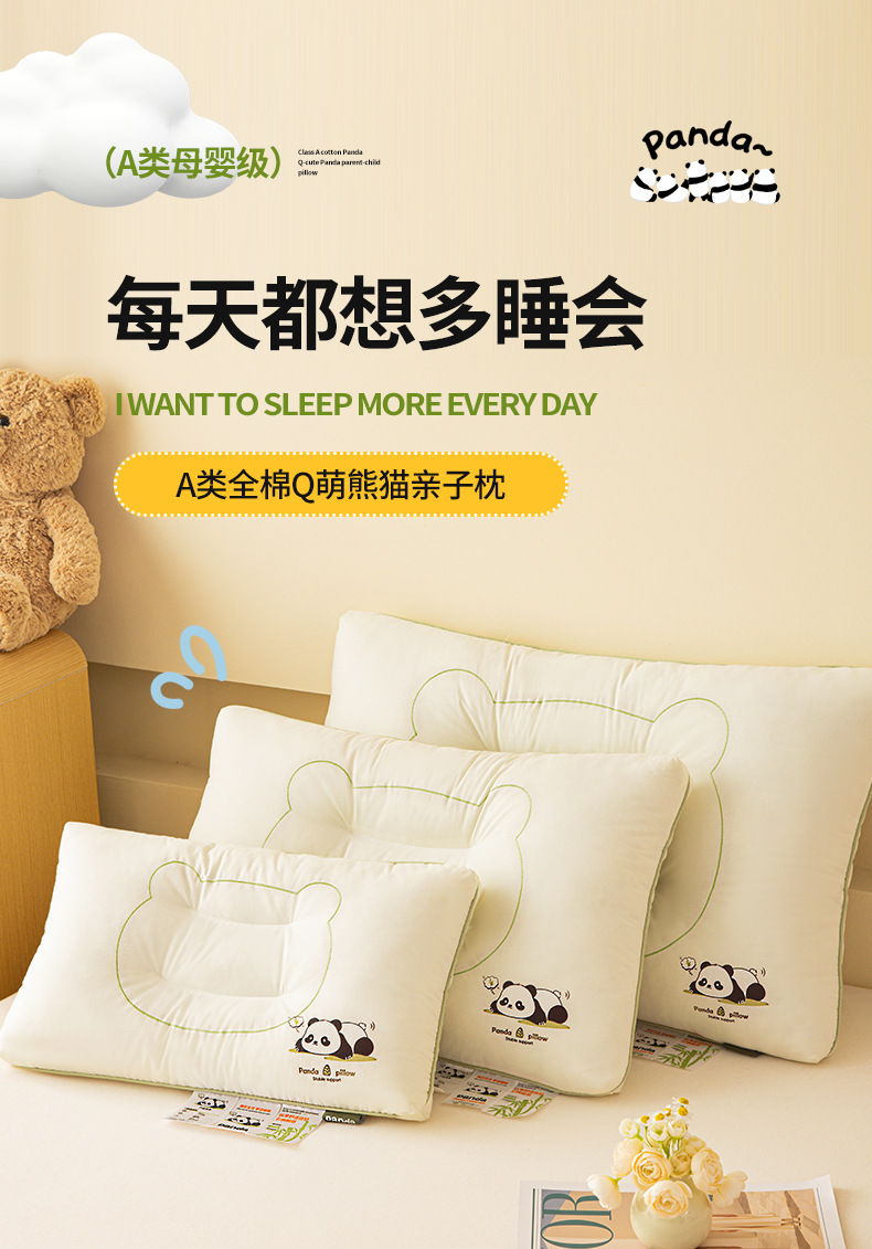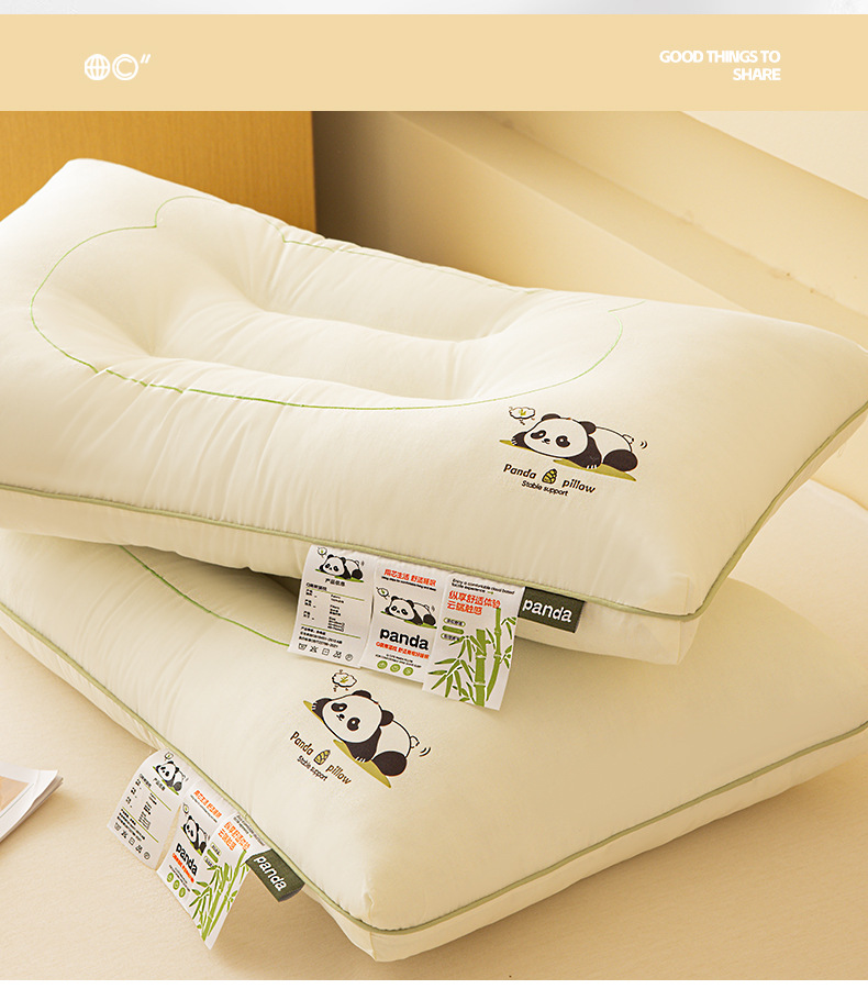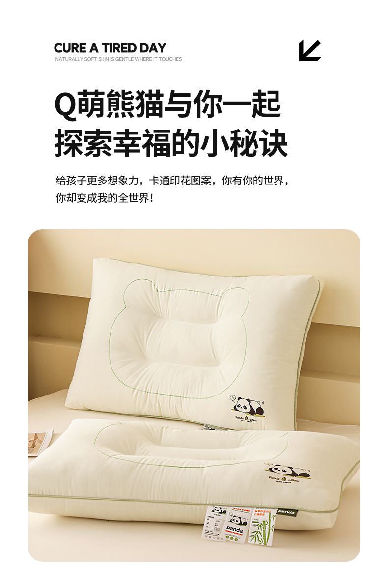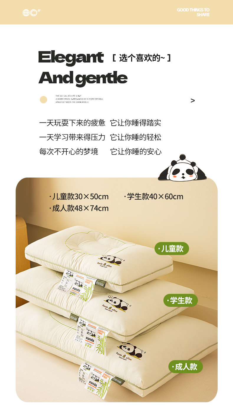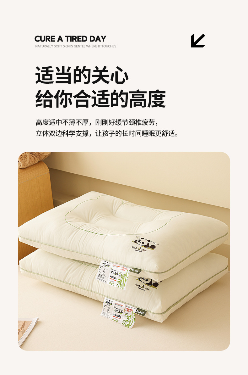 2025 신형 A급 순면 팬더 부모-자녀 목베개 코어, 어린이 및 학생용 베개, 성인용 수면 베개, 진드기 방지 측면 수면 베개스토어 가기