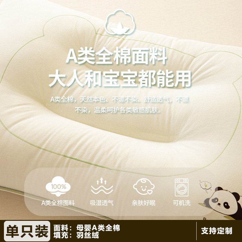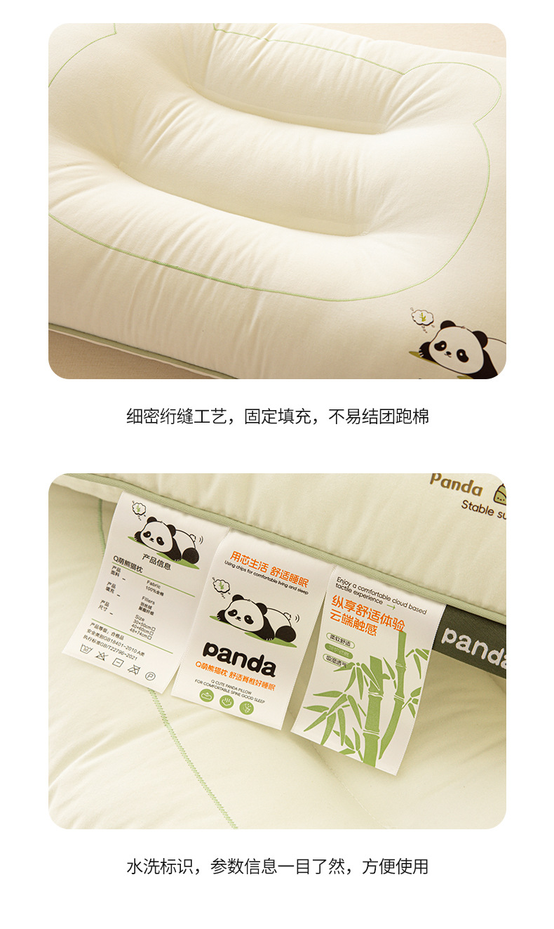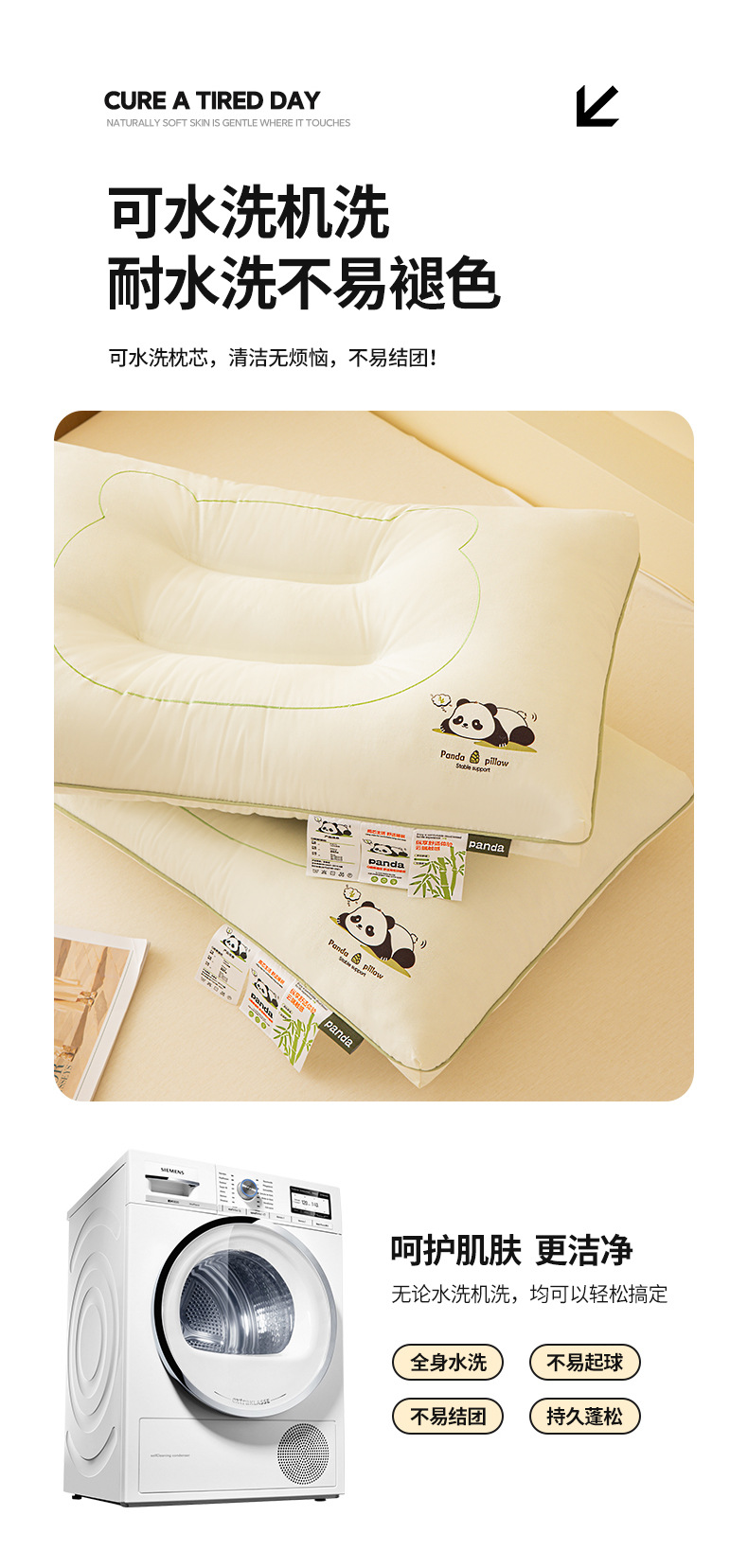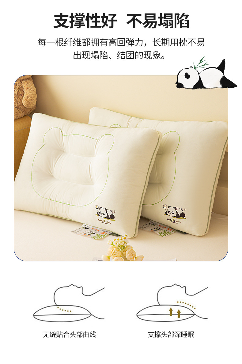 2025 신형 A급 순면 팬더 부모-자녀 목베개 코어, 어린이 및 학생용 베개, 성인용 수면 베개, 진드기 방지 측면 수면 베개스토어 가기