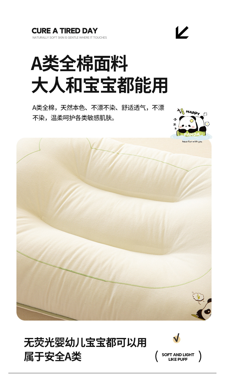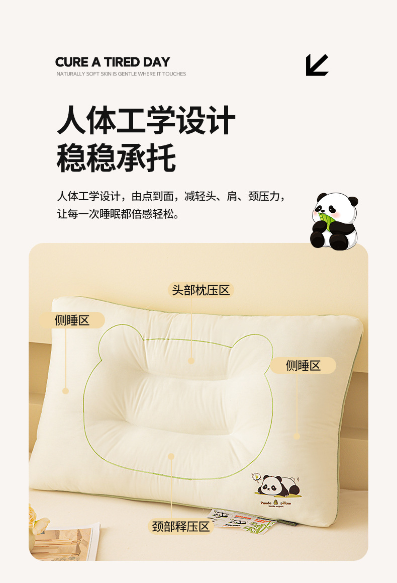 2025 신형 A급 순면 팬더 부모-자녀 목베개 코어, 어린이 및 학생용 베개, 성인용 수면 베개, 진드기 방지 측면 수면 베개