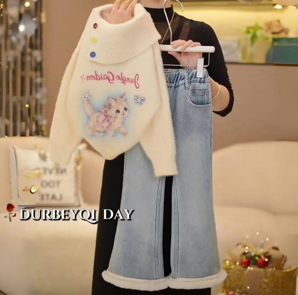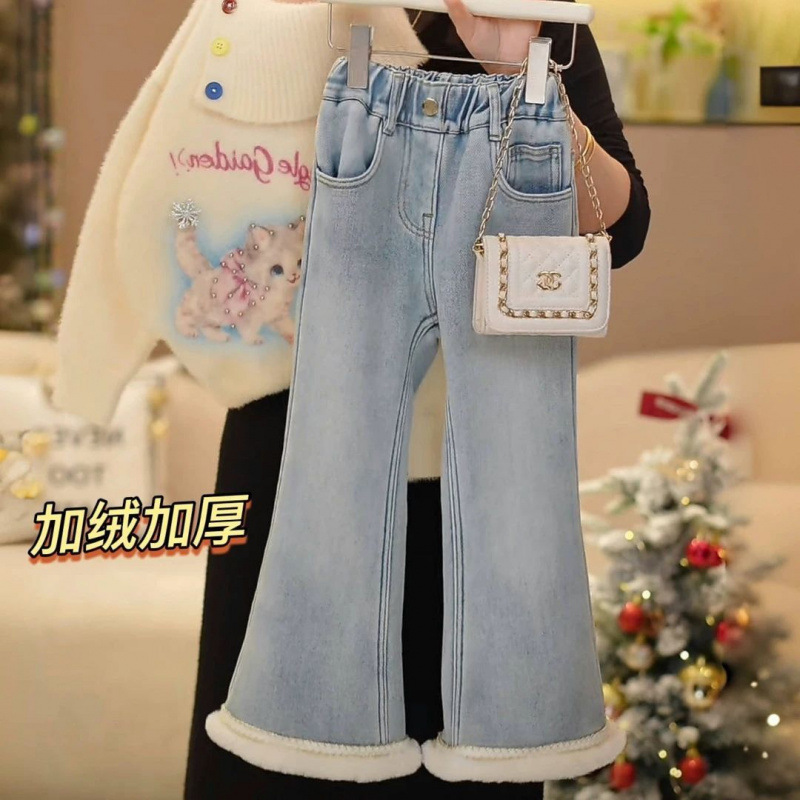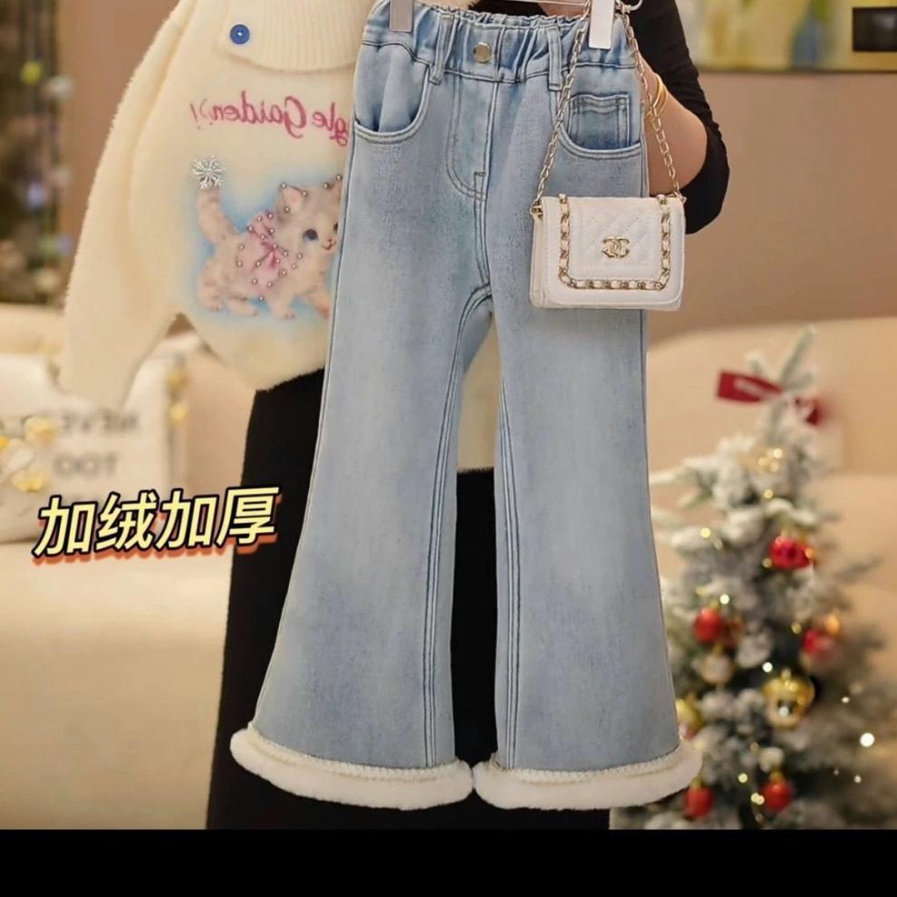 2025 여자 플레어 벨벳 청바지 겨울 새로운 한국 스타일 캐주얼 벨벳 탄성 허리 청바지스토어 가기